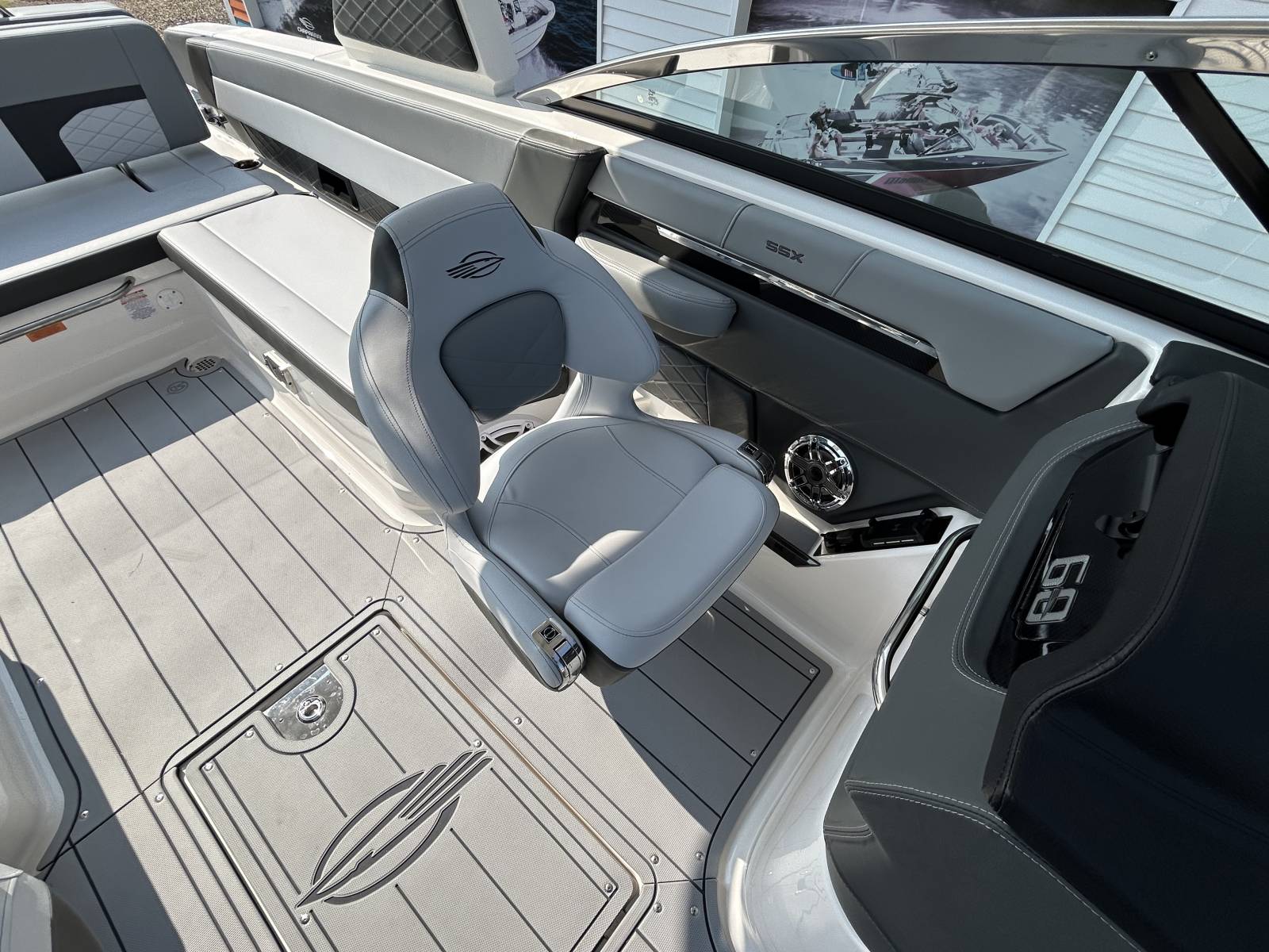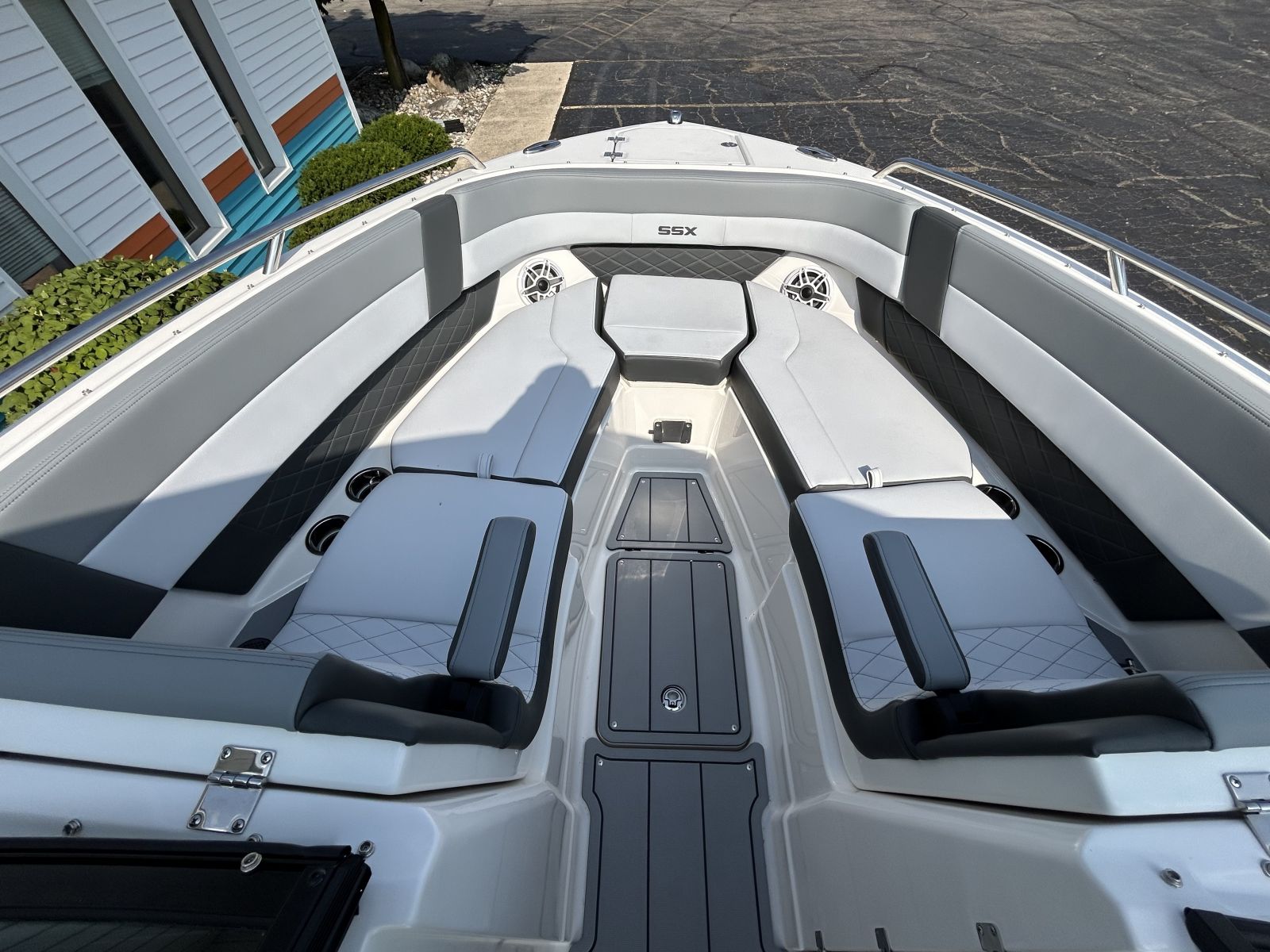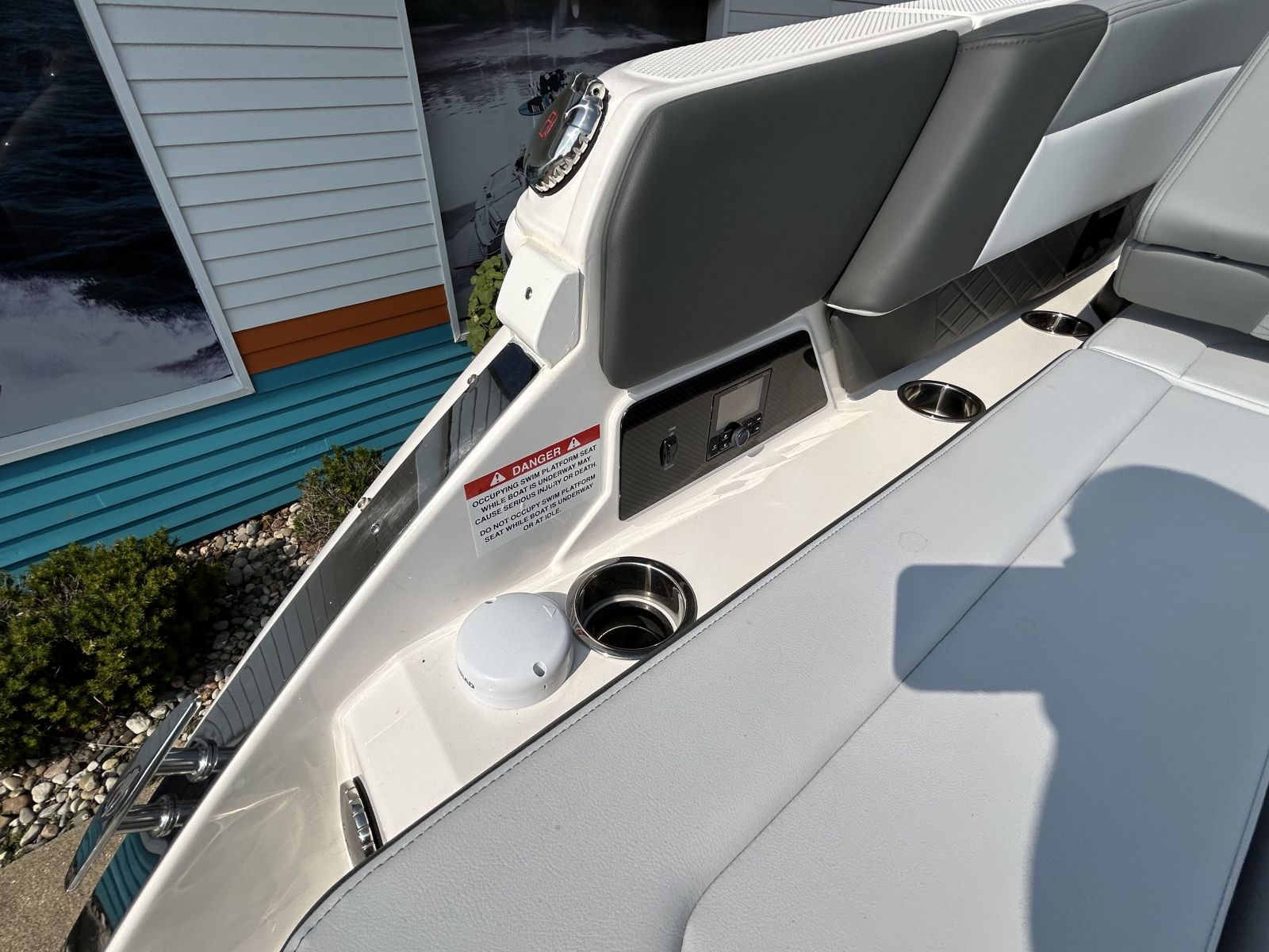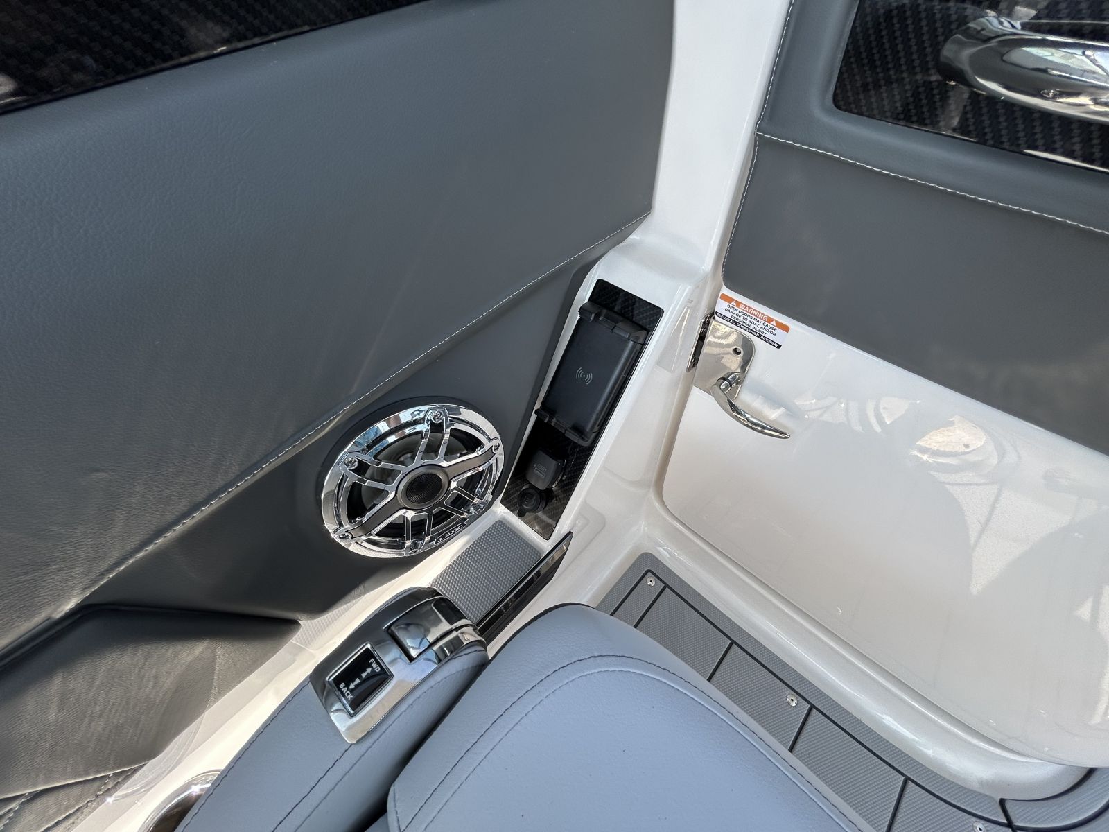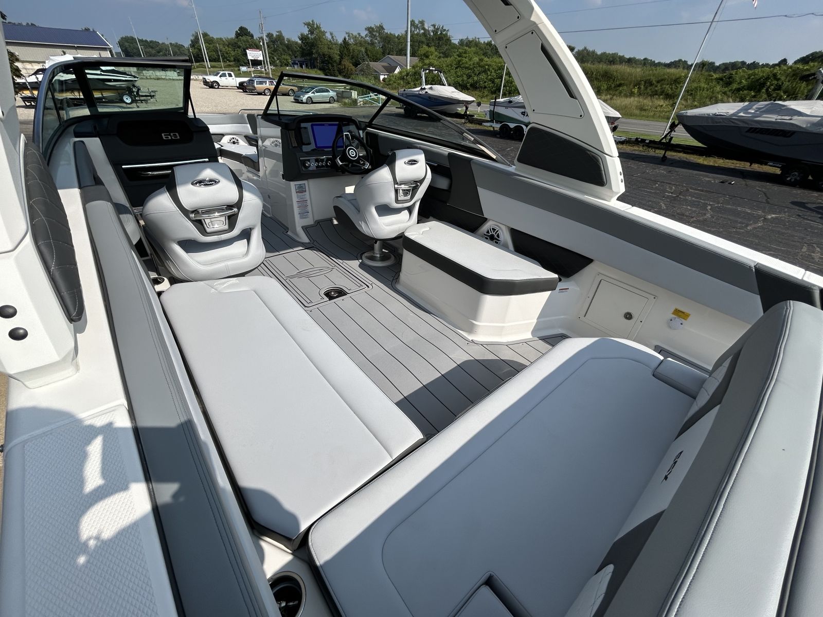 delivers a first-class experience from bow to stern.Notable Options Include: Mercury 8.2L HO 430HP EngineDigital Throttle & Shift (DTS)Bravo 3 OutdriveHTX Folding Hardtop TowerLunar InteriorJL Audio Sound System UpgradeRGB Light PackageSnap-In Sea Deck FlooringElectric Head with Pump-OutSki TowLenco Trim TabsDual Battery ChargerWindlass with AnchorUnderwater LightsTeak Inlay TableBow & Cockpit Cover Additional Details: