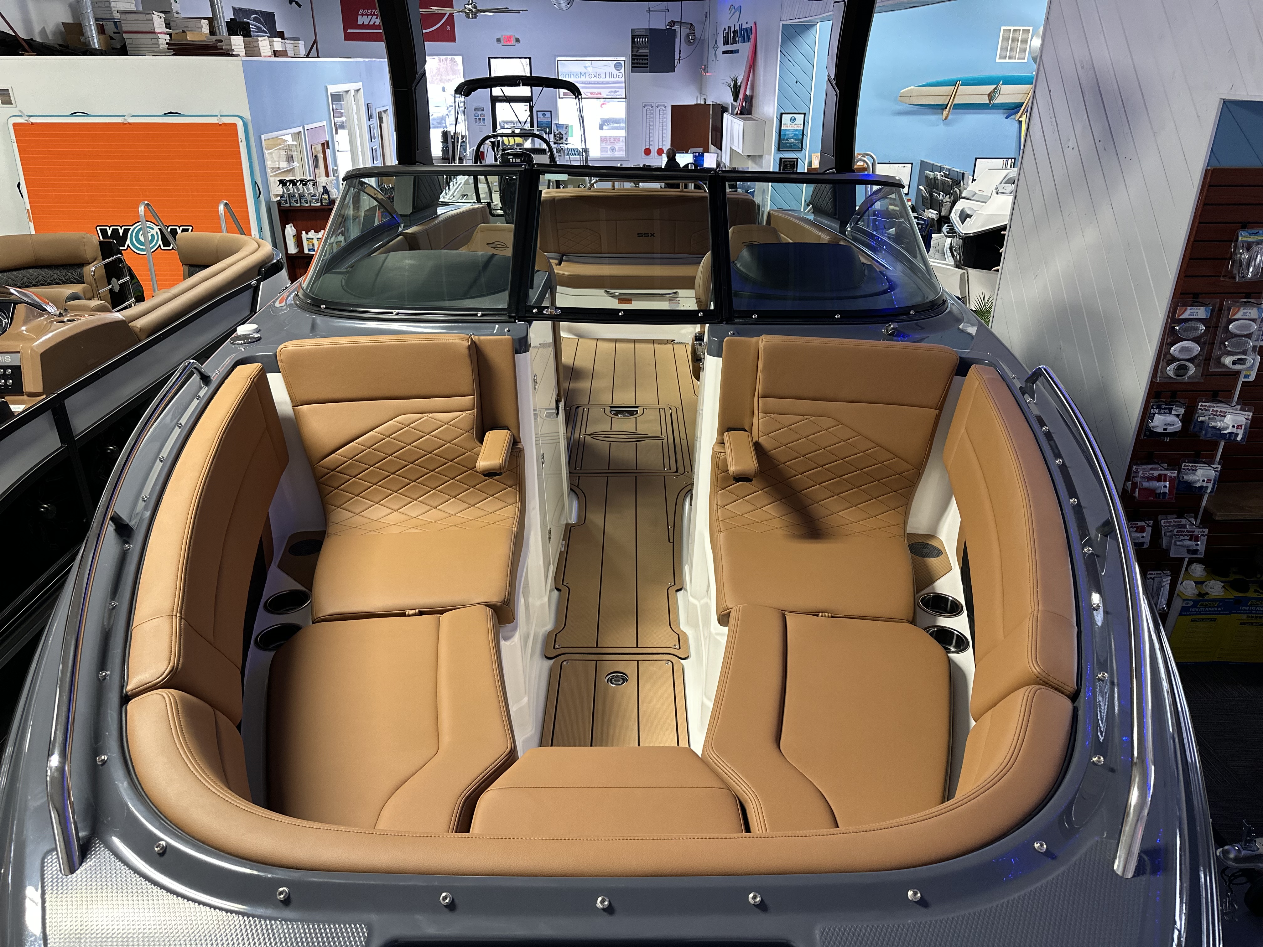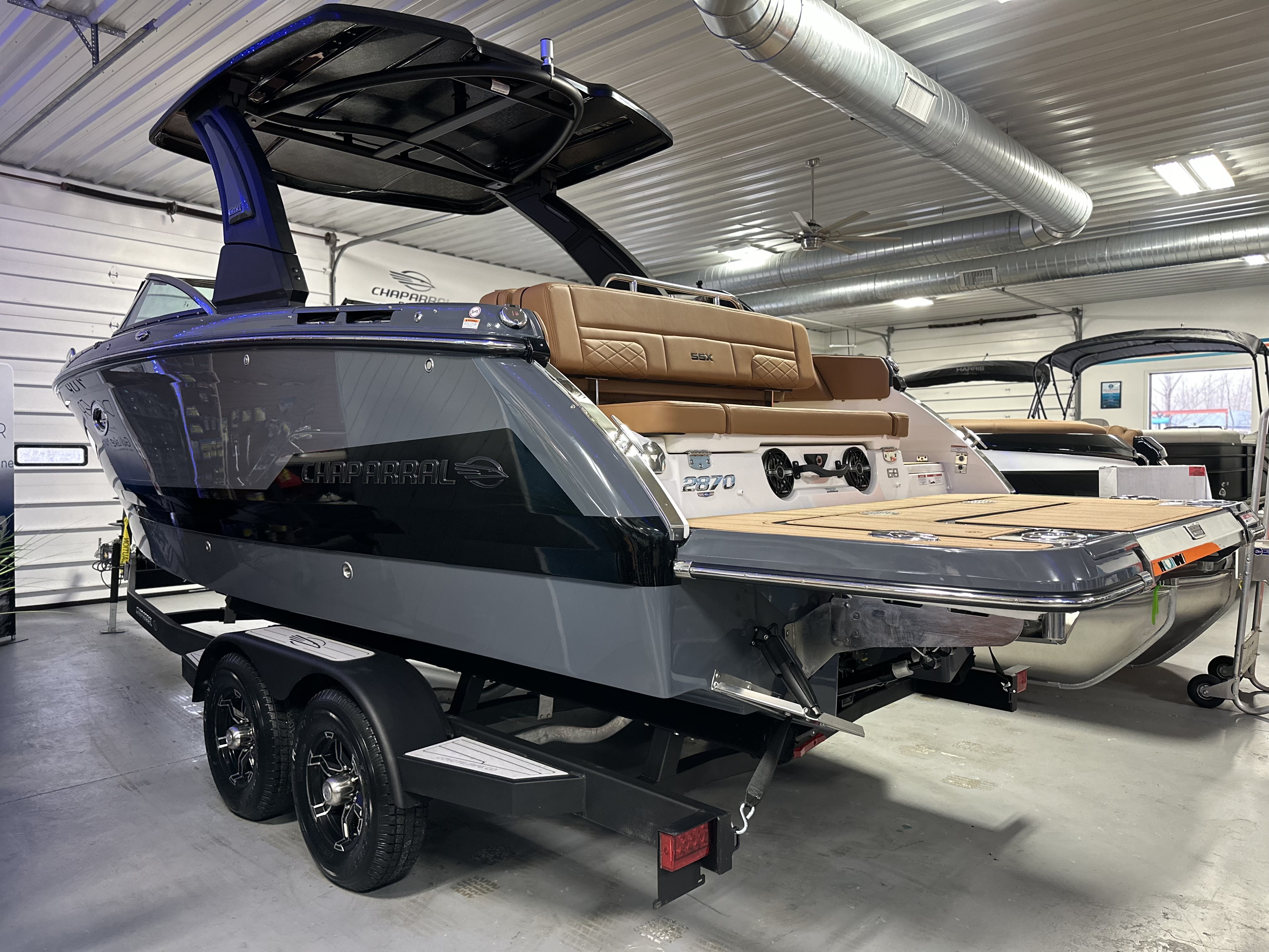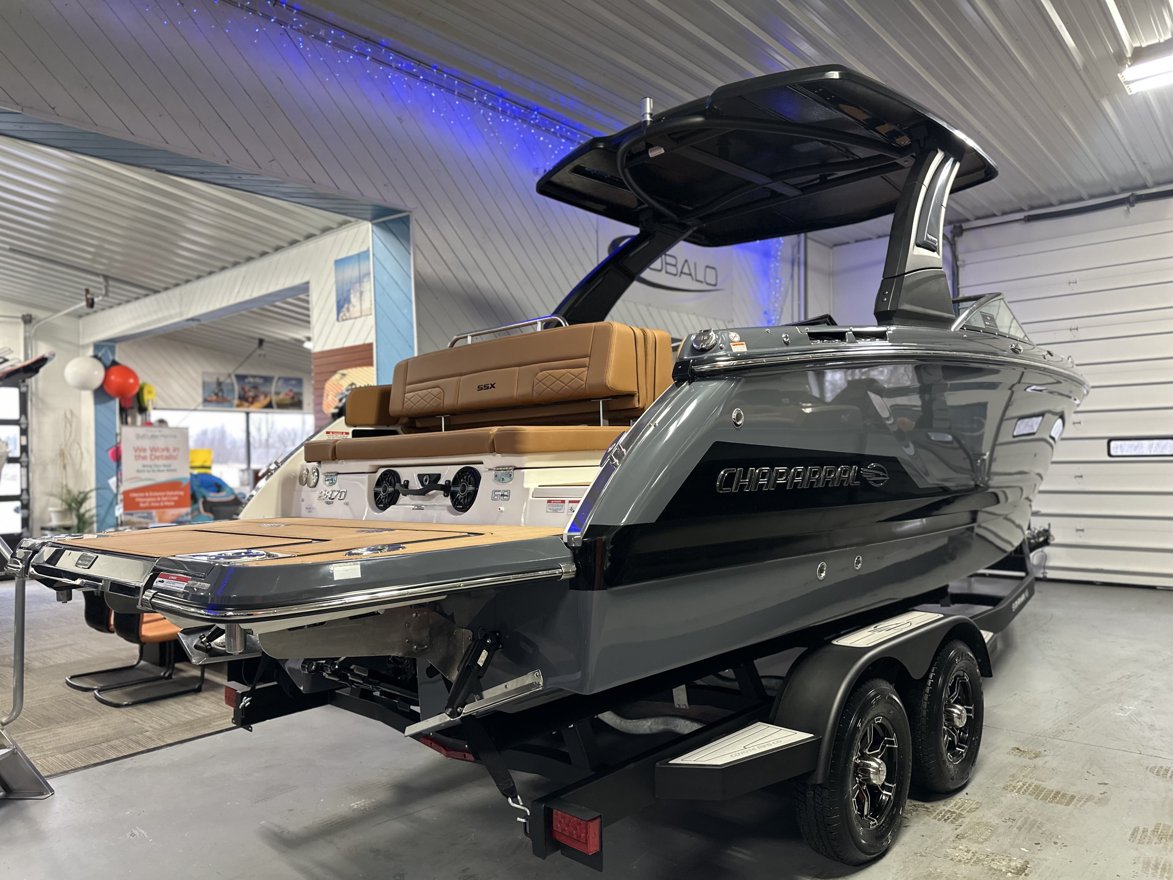 2025 Chaparral 2870 SSX – Ultimate Performance and Luxury on the Water The 2025 Chaparral 2870 SSX is a premium luxury bowrider designed to deliver unforgettable experiences on the water. Powered by the Mercury 8.2L DTS Bravo 3X 380 HP Catalyst engine, this boat combines performance and elegance with standout features like the Infinity Power Step Swim Platform, HTX Folding Hardtop Tower, and Simrad NSS12 EVO3S Chartplotter/Fishfinder. With a striking Stealth Gray hull design, upgraded Cayenne interior, and cutting-edge technology, the 2870 SSX offers unmatched comfort, style, and versatility for every adventure. Notable Options Include:Mercury 8.2L DTS Bravo 3X 380 HP Catalyst EngineStealth Gray Gelcoat with Painted Metallic Apex Hull GraphicHTX Folding Hardtop Tower – Black with Stealth Gray InsertPremium Cayenne Cockpit Interior with Snap-In SeaDek FlooringSimrad NSS12 EVO3S Chartplotter/Fishfinder with Engine Data and Audio ControlsJL Audio Sound System Upgrade with RGB Light PackageEnclosed Electric Head with Vanity Cabinet and SinkWindlass with Polished Stainless Steel Anchor and 250' Rope + 15' ChainExtended V-Plane Hull with Kevlar Reinforcement for Smooth HandlingSki Tow and HTX Hardtop Sport Rack – Black Powder CoatedDual Battery Setup with Crossover SwitchDual Color LED Underwater LightsTandem Axle Trailer with Aluminum Wheels and Bow Ladder Additional Details: The 2870 SSX is packed with features to enhance your time on the water, from the U-Shaped Aft Cockpit Seating with hinged cushions to the Wrap-Around Windshield with Stainless Steel Frame. The Lenco Pro Trim Tab System and Power Assisted Steering ensure precise handling and control, while the RGB Light Package and Water Resistant Speakers with Blue LED Lighting create a luxurious ambiance. With its enclosed electric head and extended swim platform, this boat seamlessly blends functionality with comfort. Why Choose Gull Lake Marine? With over 100 years of boating experience, Gull Lake Marine is your trusted Chaparral dealer. We provide factory-certified technicians and ensure your boat operates at peak performance. Every Chaparral purchase includes:Free Delivery within 15 milesOn-Water Orientation with our trained Delivery Captain For more details, visit GullLakeMarine.com, email us at sales@gulllakemarine.comLinksSpecshttps://www.chaparralboats.com/Chaparral-Boat.php?id=887&action=tab_specs