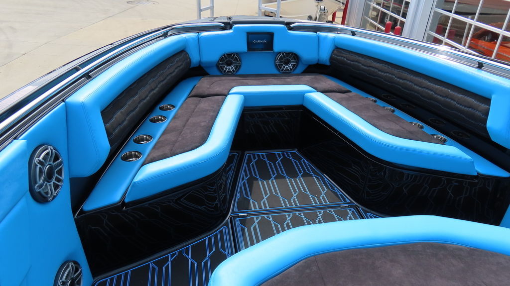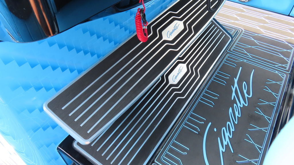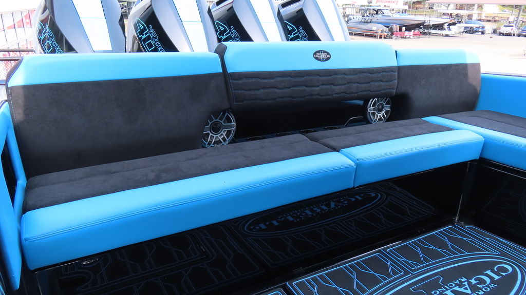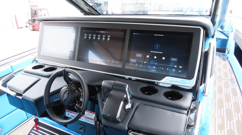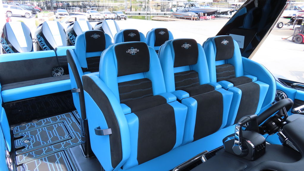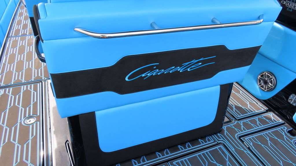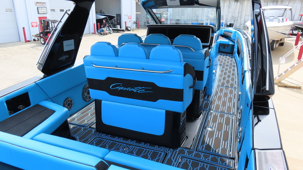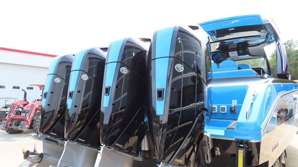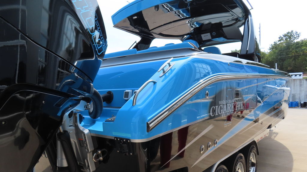 2025 Cigarette 41 Nighthawk powered by quad Mercury Racing 400R V10s. (ONLY 10 HOURS), upgraded second row of Bolsters, (3) Garmin GPS with C-Map switches, Mercury Vessel View 903, electric battery switches on dash, soft touch vinyl, HyrdaFoam Flooring, bow thruster, Rear facing seat behind bolsters, Cigarette JL Audio upgrade, power rear sunshade, Garmin convenience package, windlass anchor, dive door, port and starboard fender storage and trash receptacles, cabin sink, vacu flush head, shore power, and onboard charger, Automatic Sun shade, Aluminum Triple axle Trailer Included.