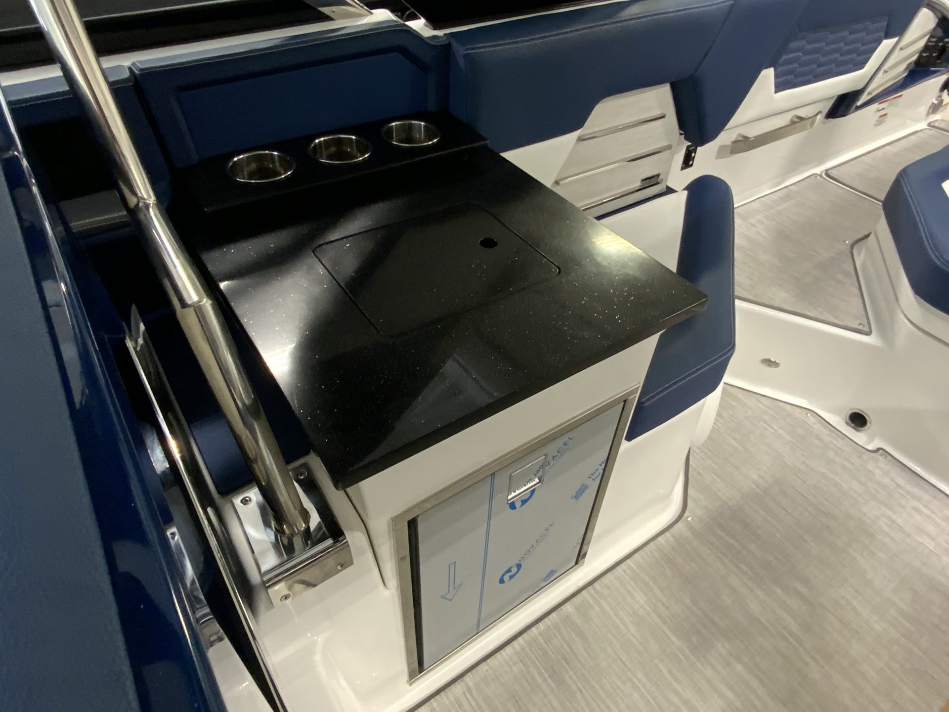 hydraulic swim platform, which lowers well below the water's
