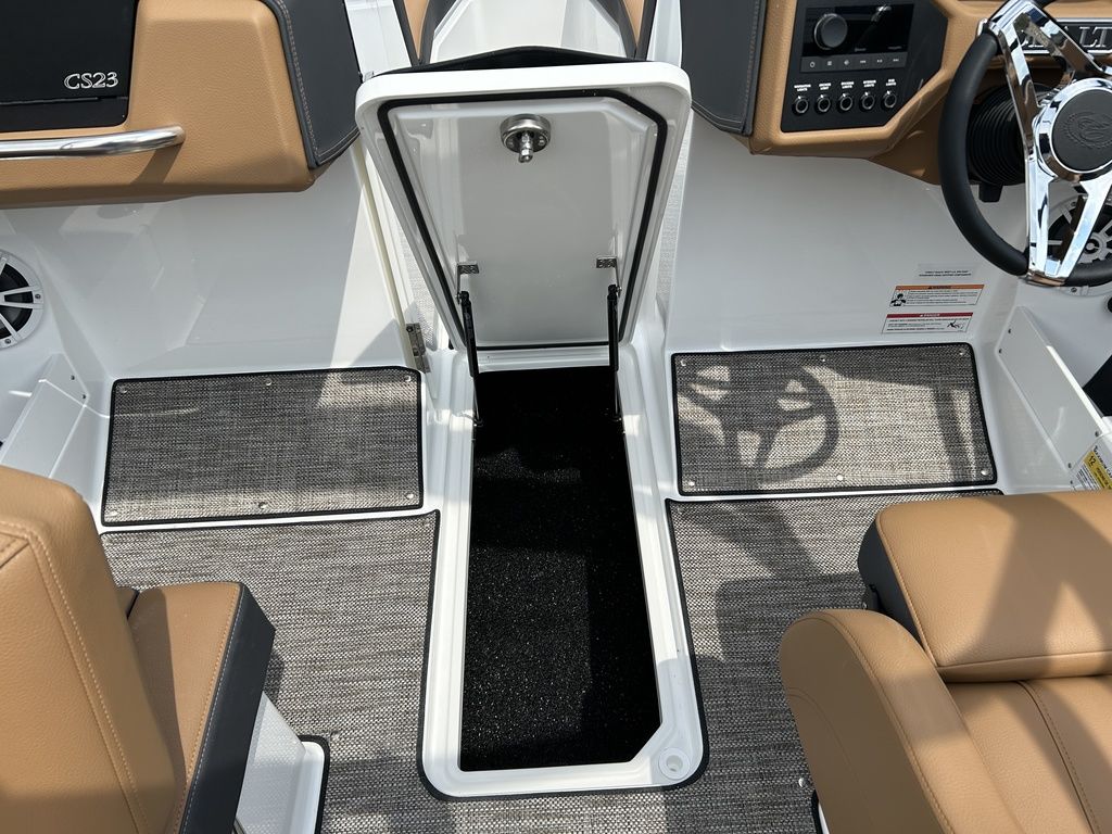 Hand-crafted to a superior standard of quality, the new CS23 is filled with upscale amenities, starting with such exterior styling points as an eye-pleasing ‘wave’ body style-line and a new Obsidian windshield frame that’s black with a hint of bright work on the side panels. A continuous rubrail and smart ‘shoe box’ deck-to-hull fitting allows for an integrated full beam width swim platform.