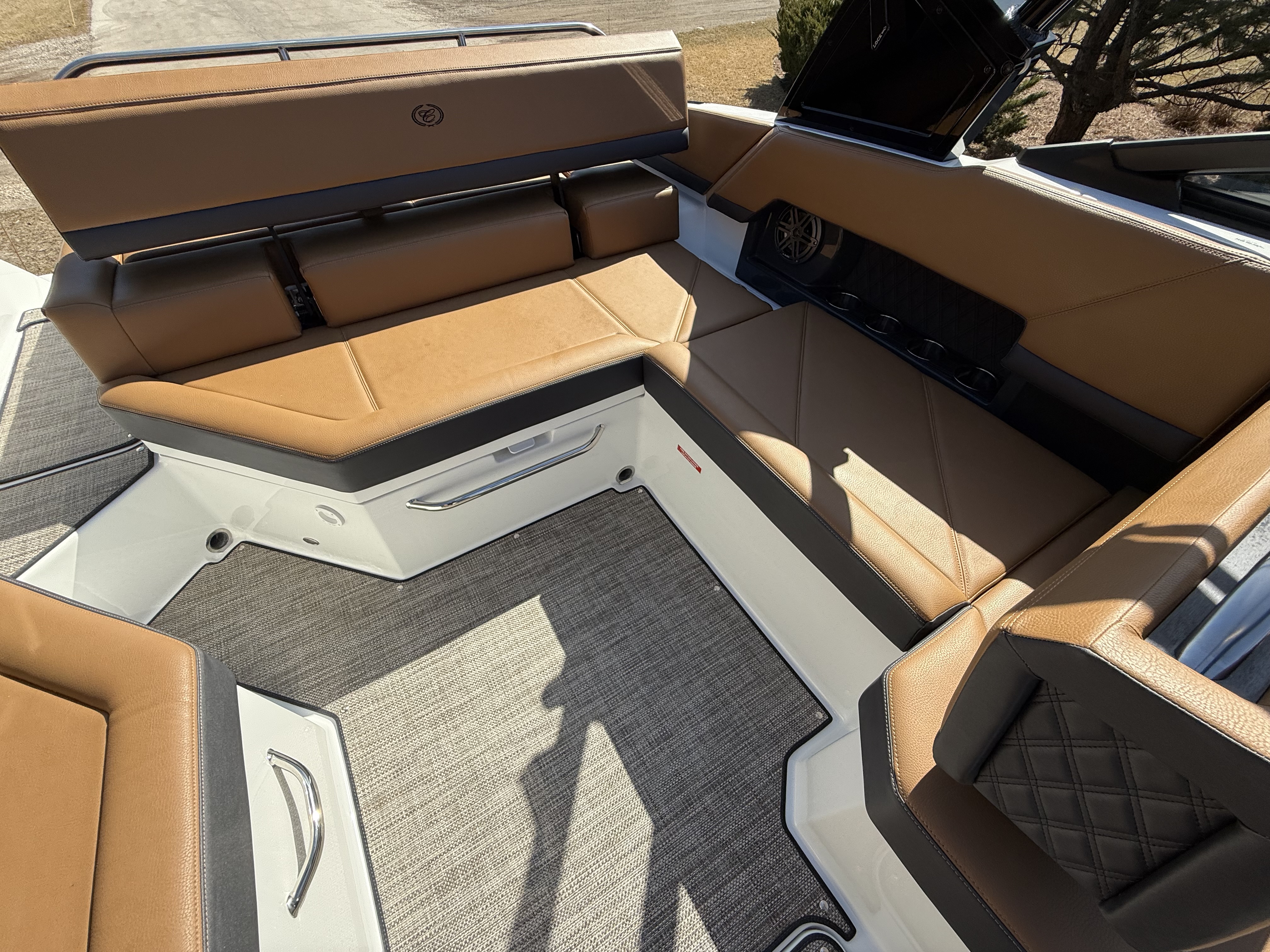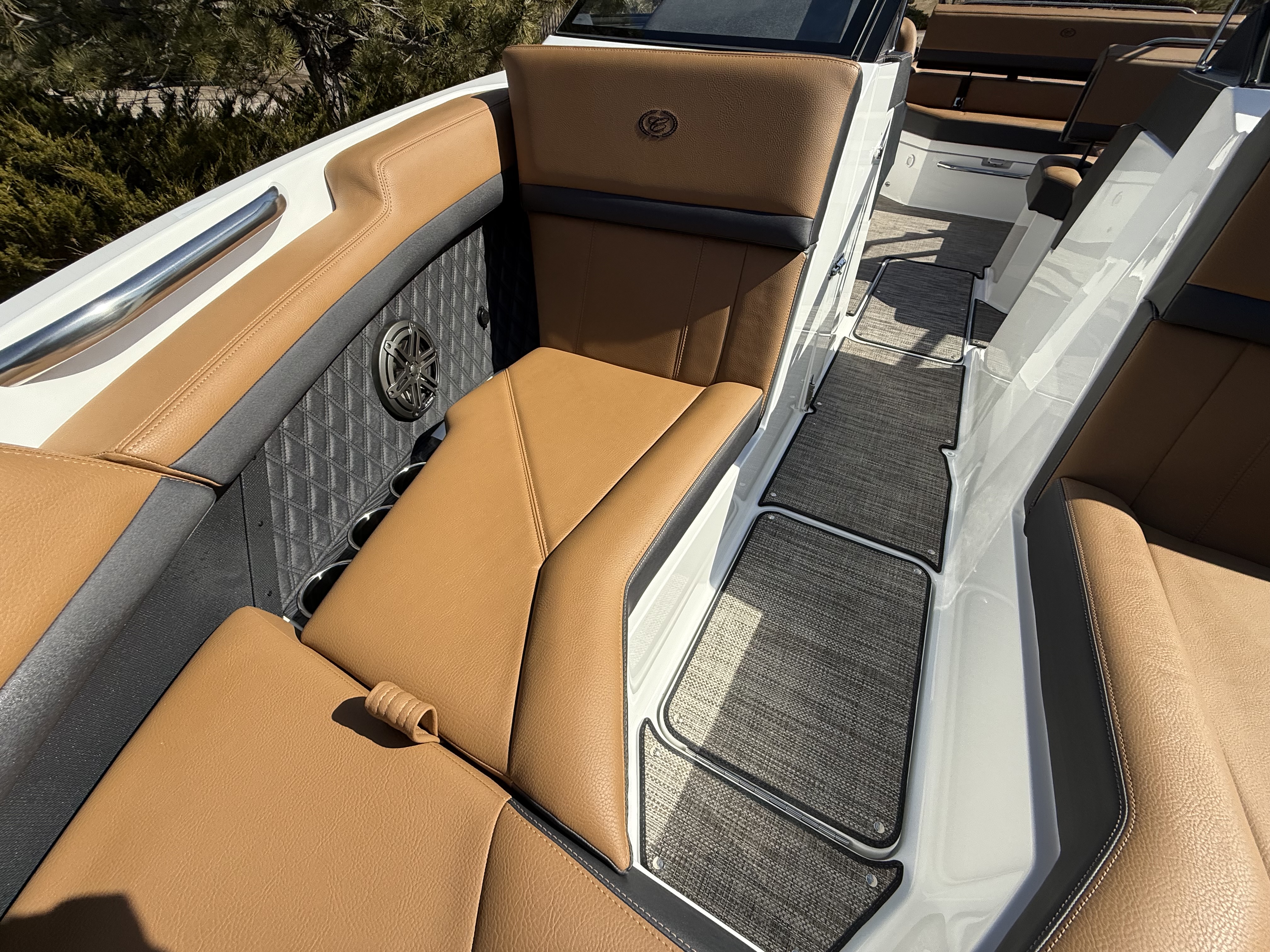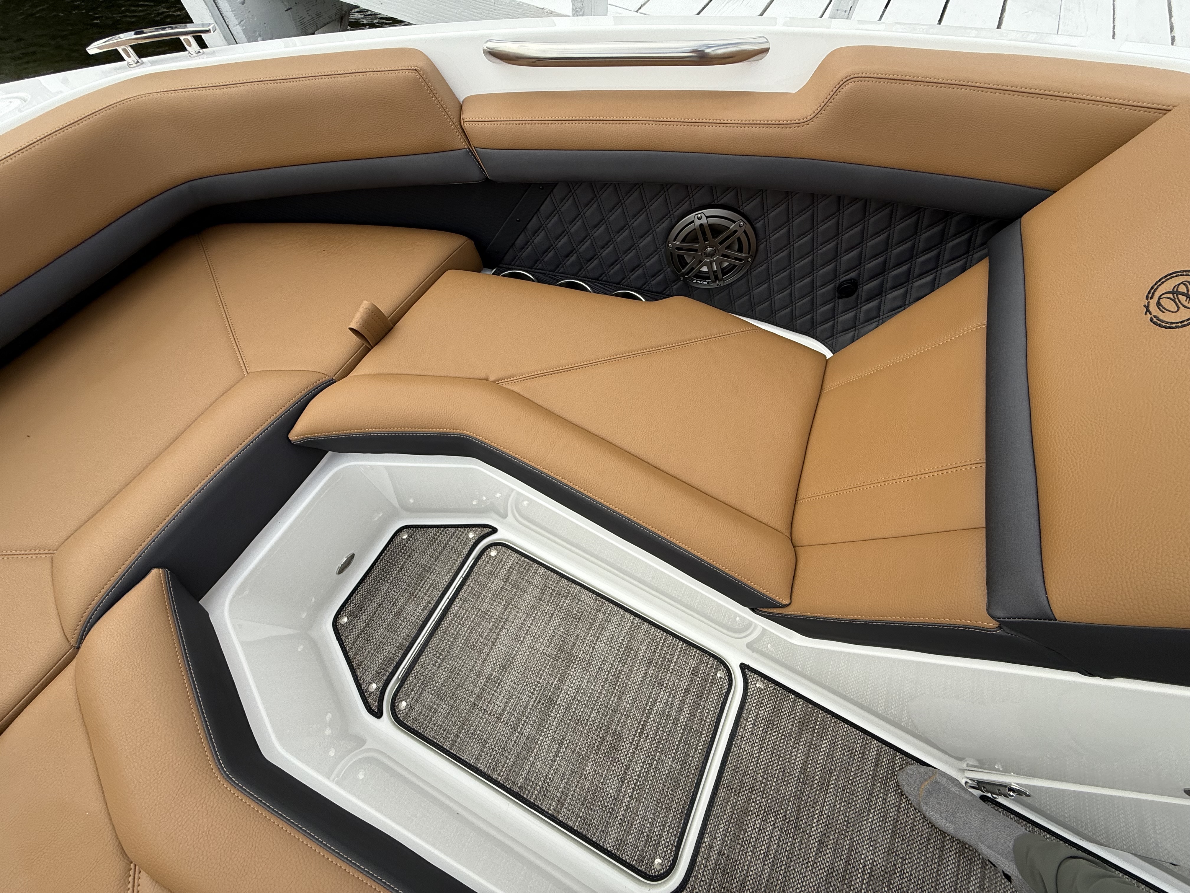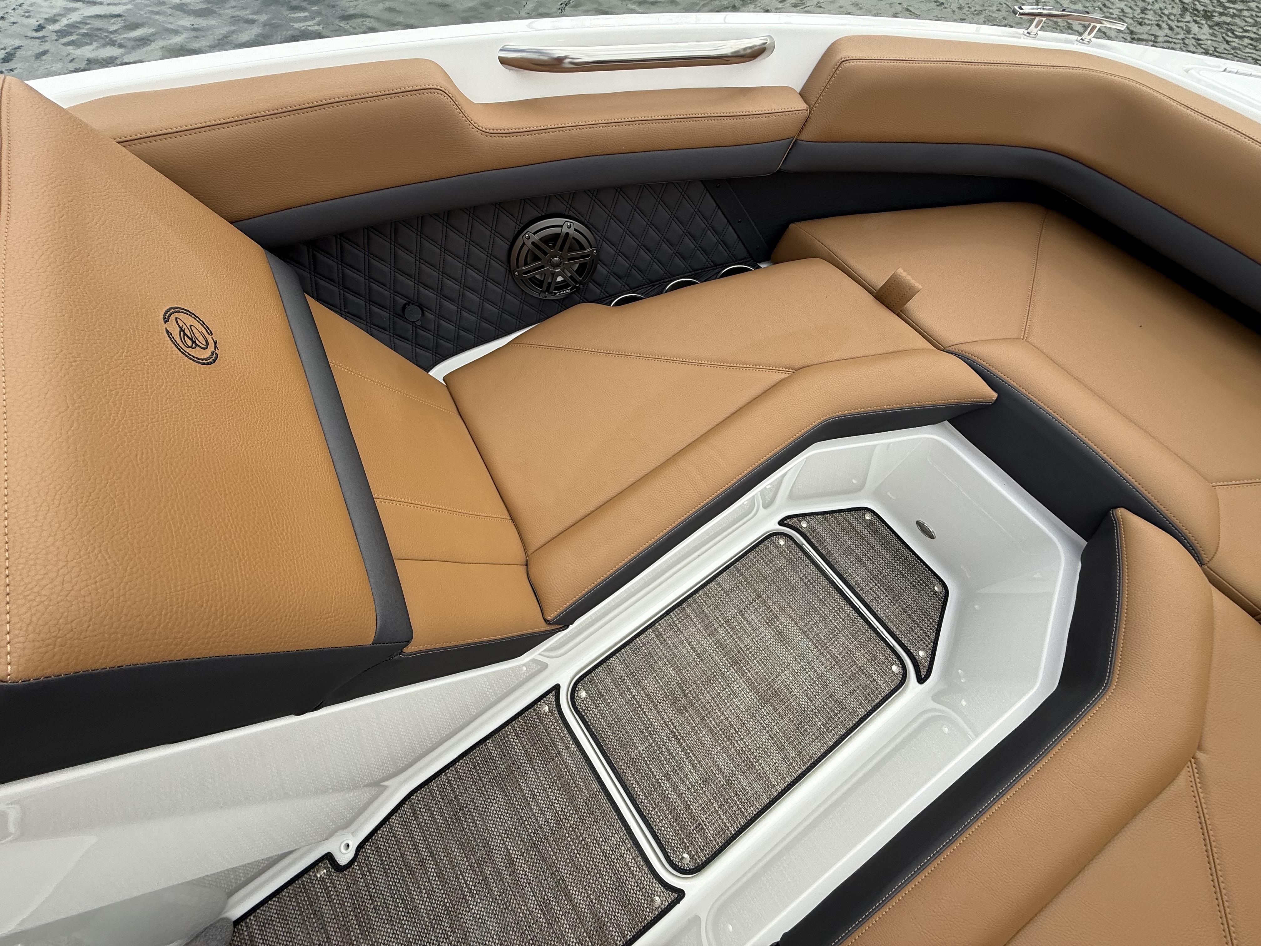 Entertainment Excellence: Enjoy superior sound with the Premium Sound System featuring transom speakers, ensuring crisp, powerful audio wherever you are onboard.