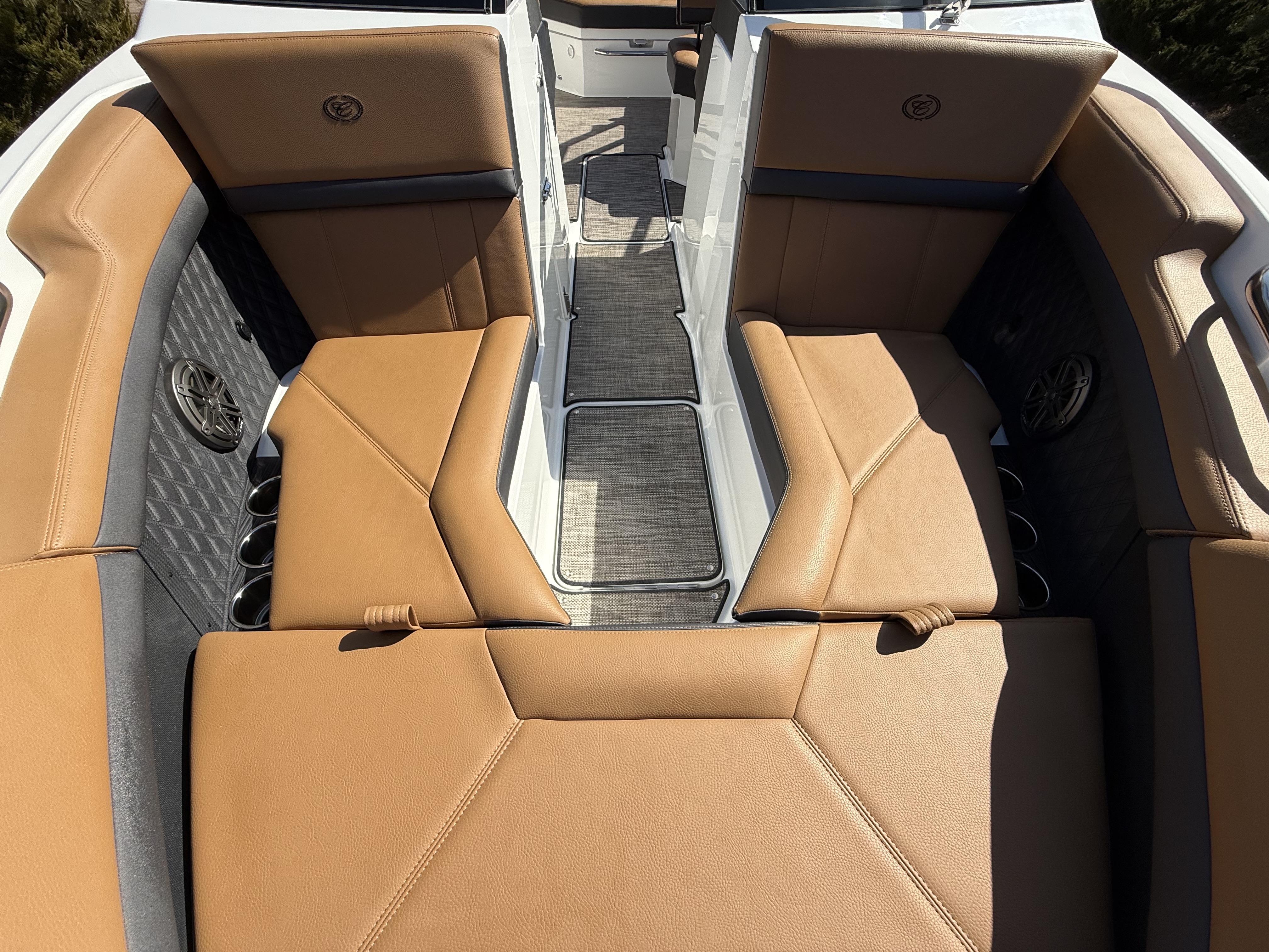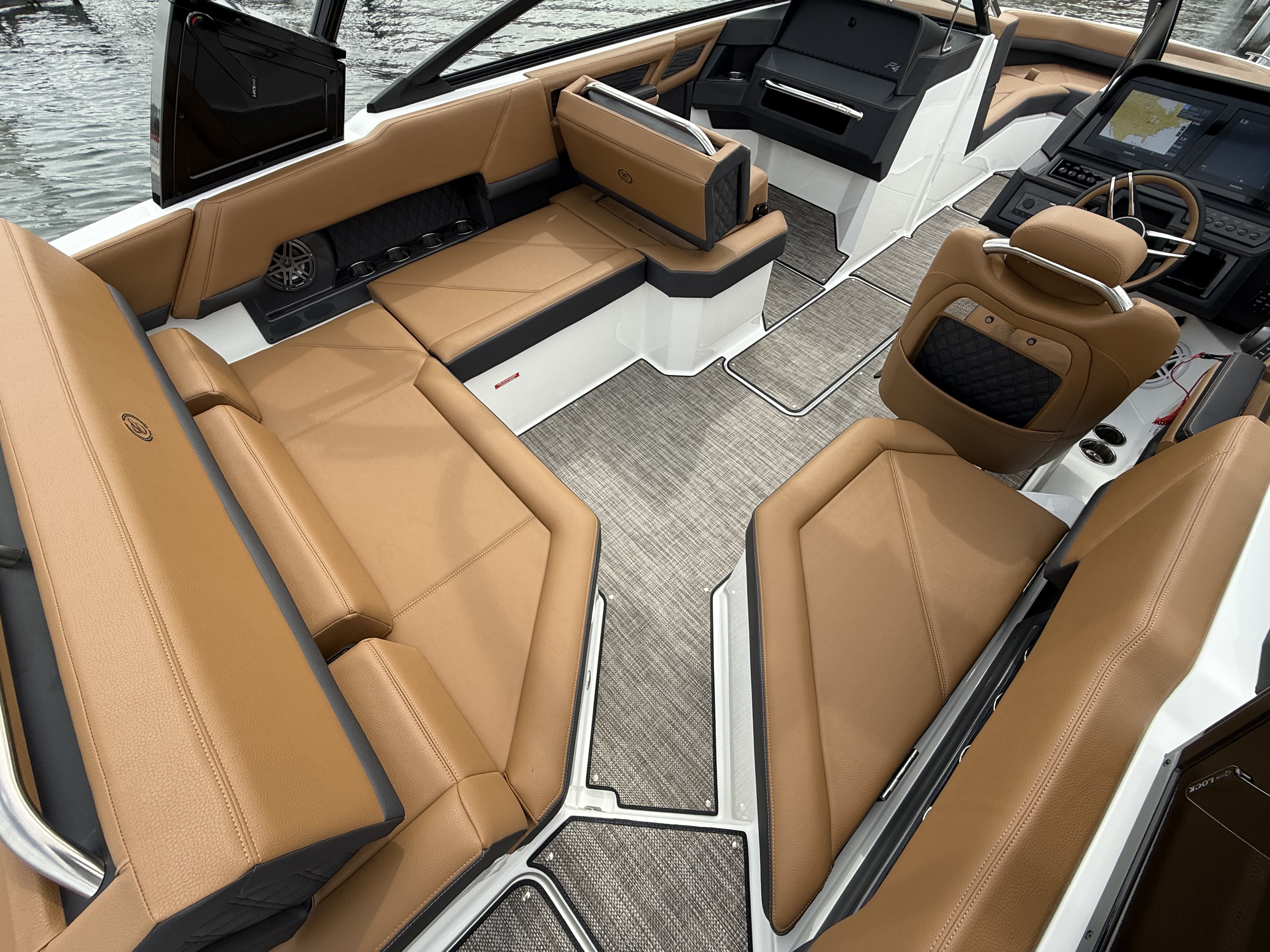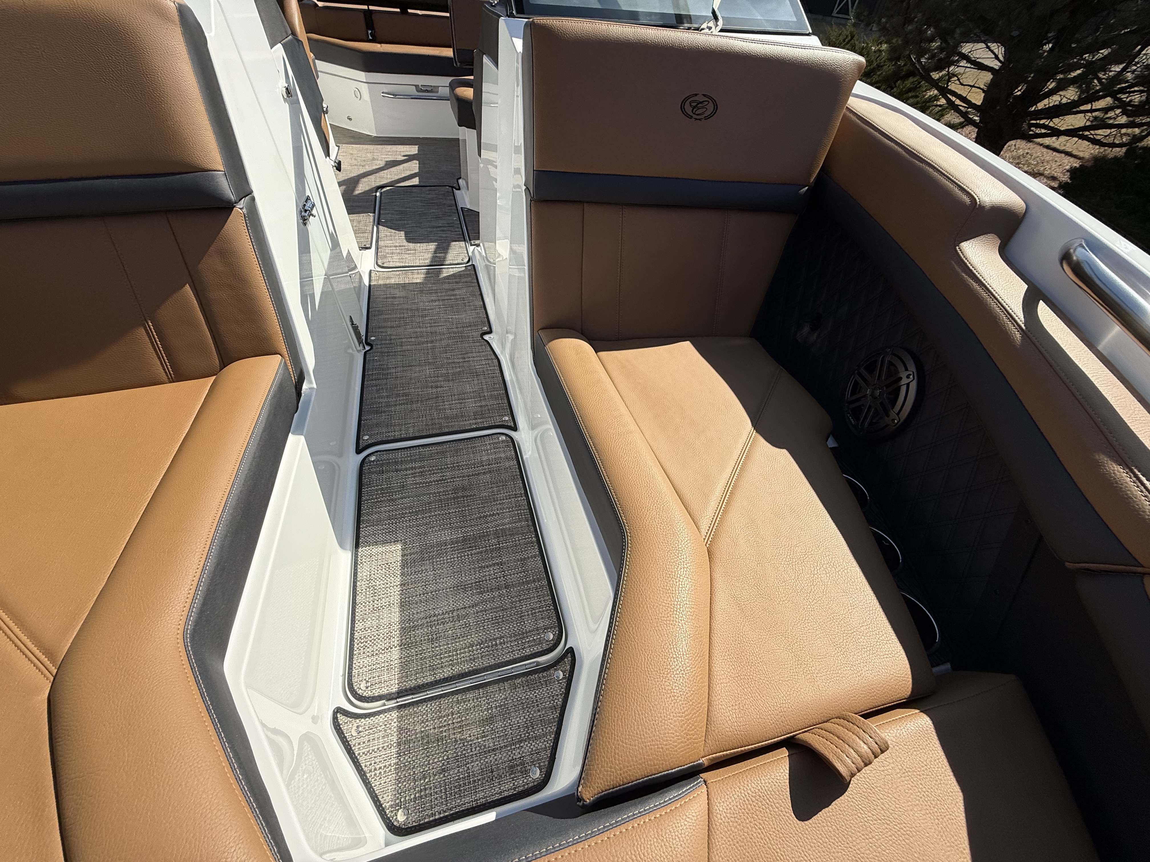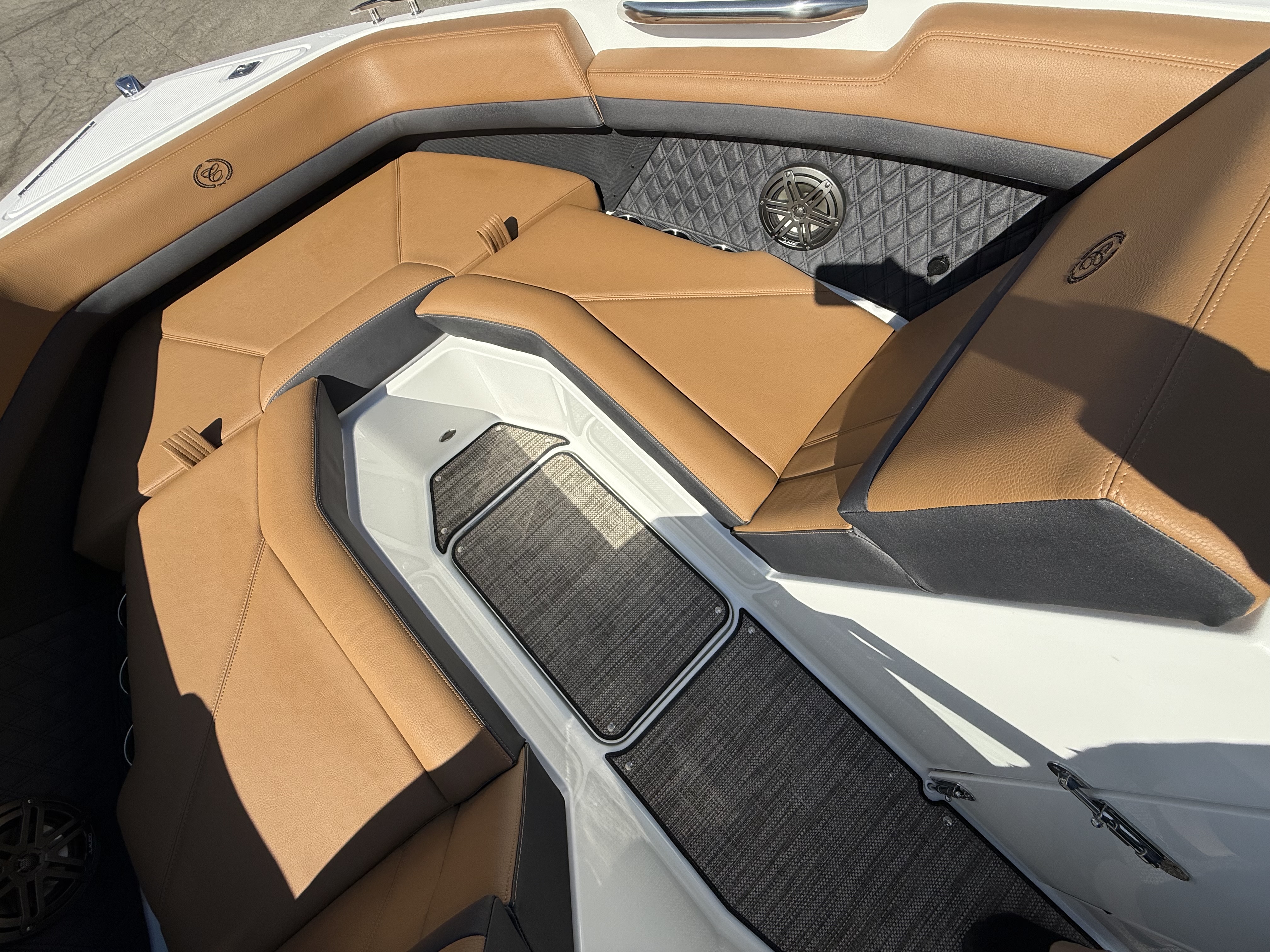 Entertainment Excellence: Enjoy superior sound with the Premium Sound System featuring transom speakers, ensuring crisp, powerful audio wherever you are onboard.