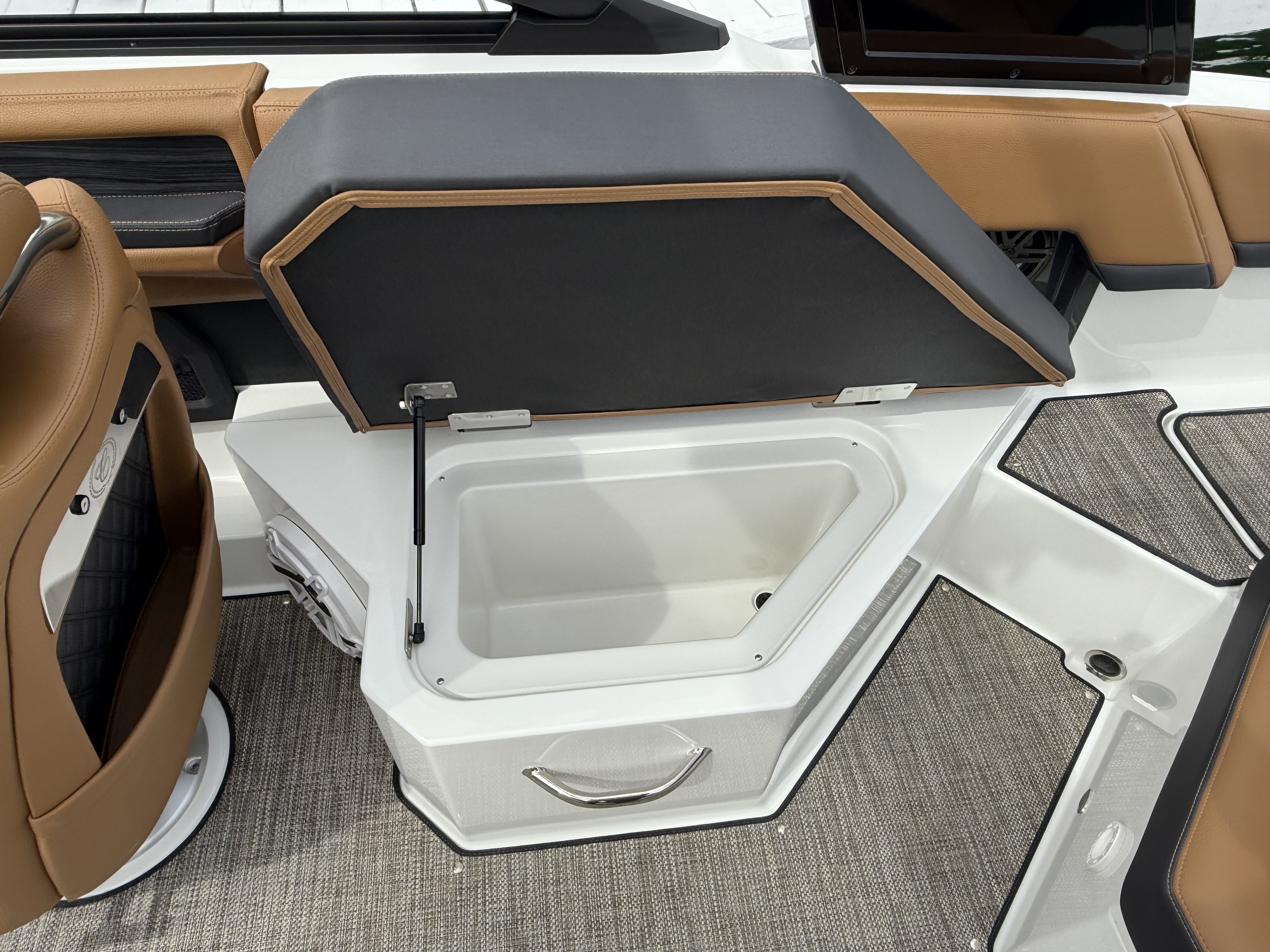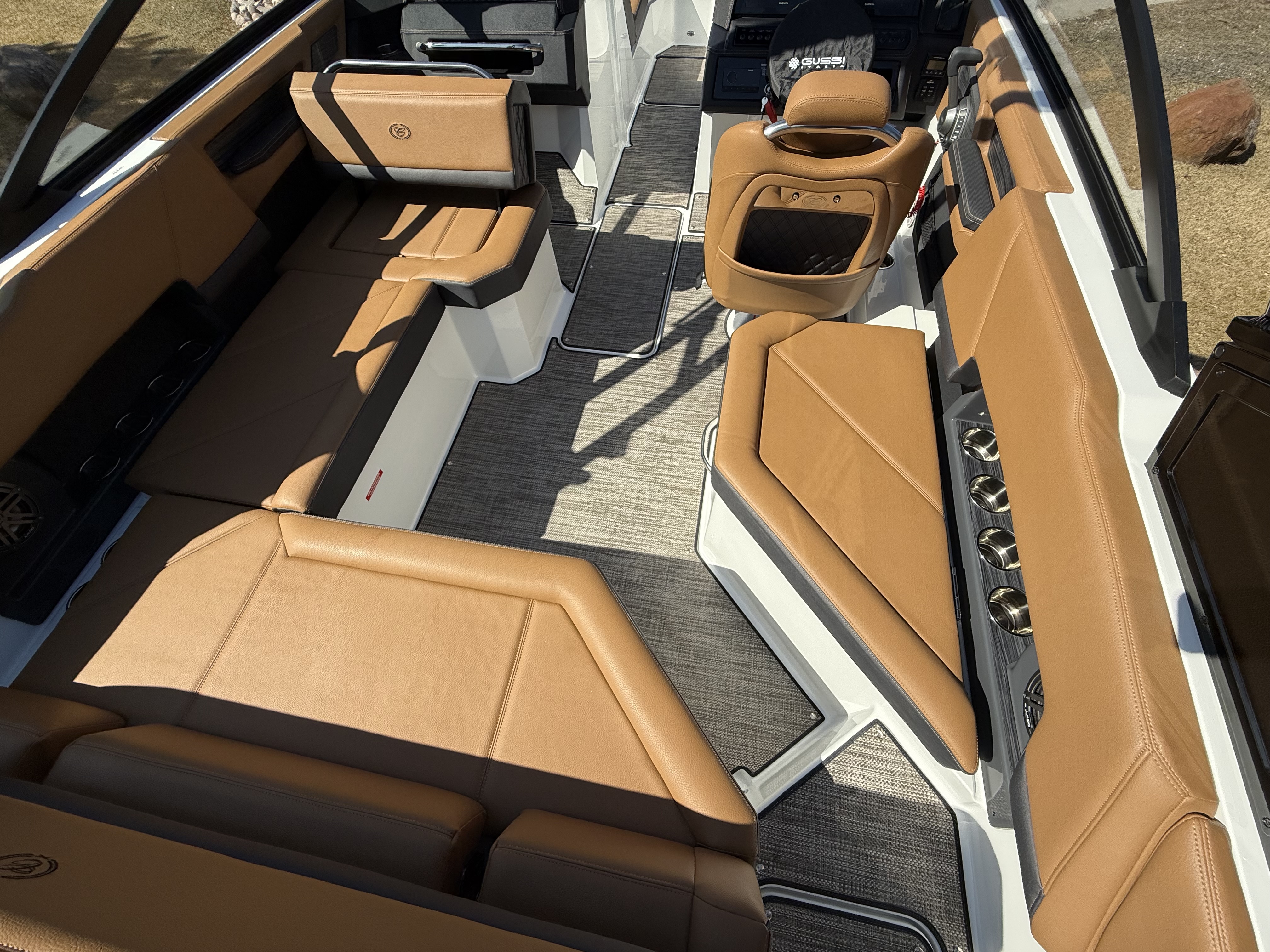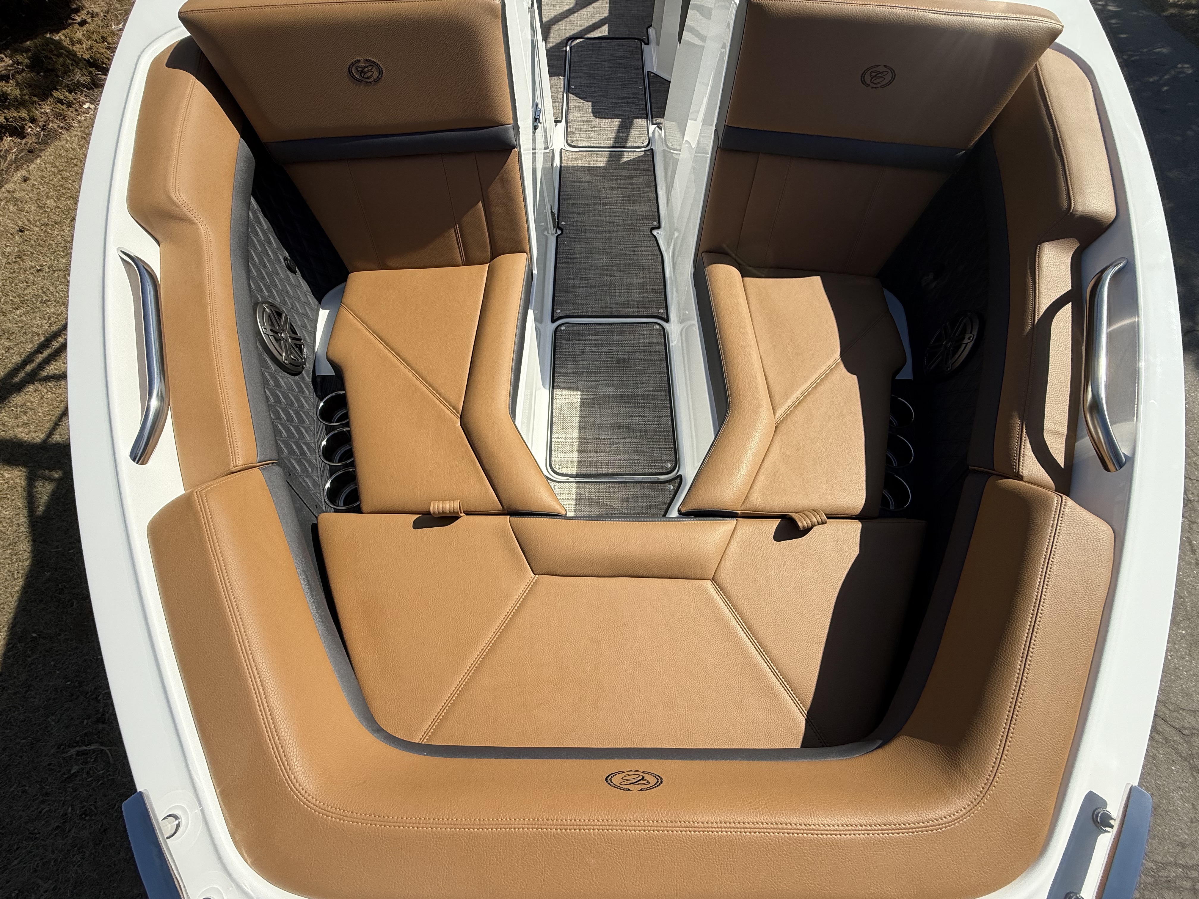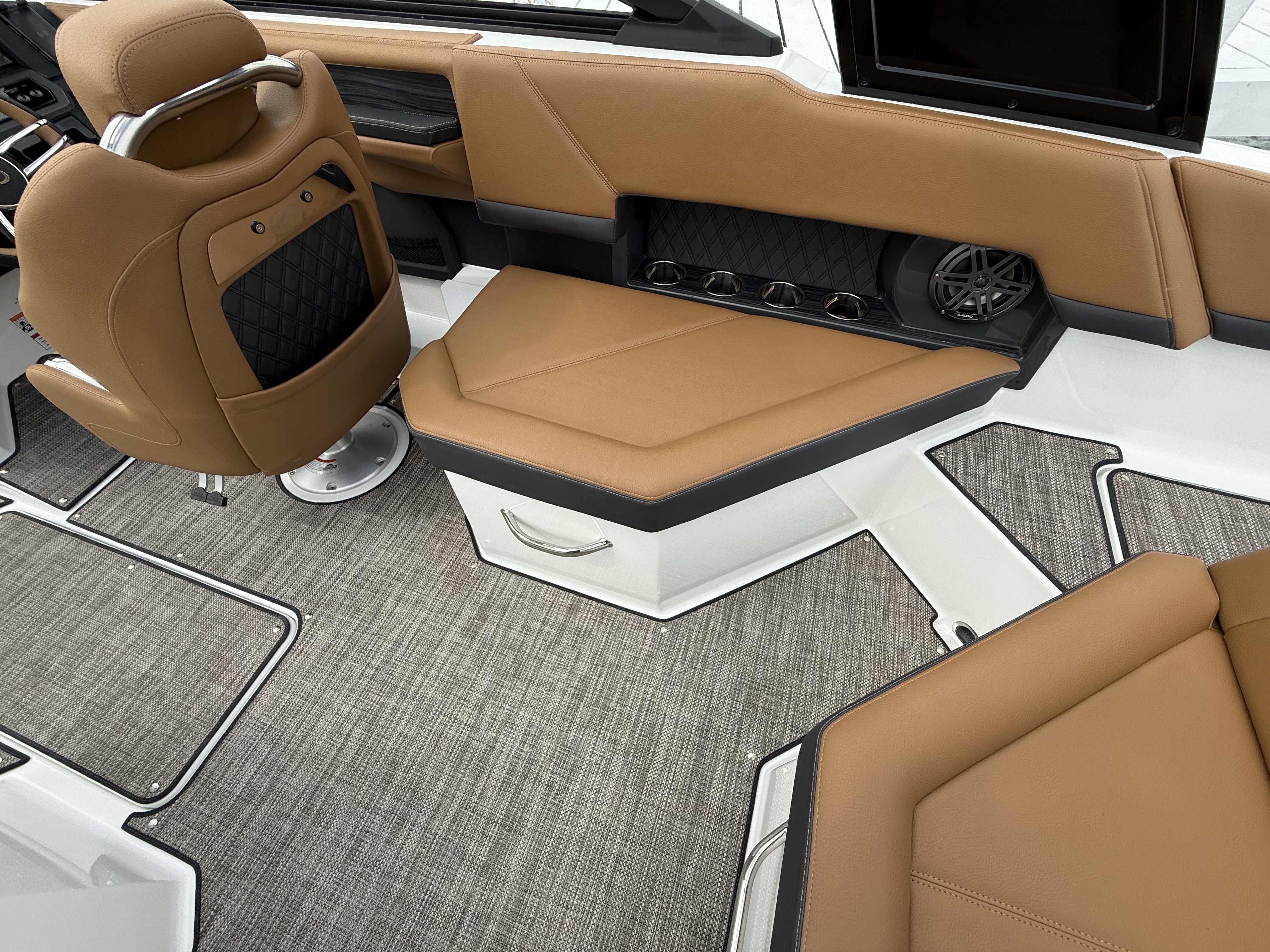 Entertainment Excellence: Enjoy superior sound with the Premium Sound System featuring transom speakers, ensuring crisp, powerful audio wherever you are onboard.