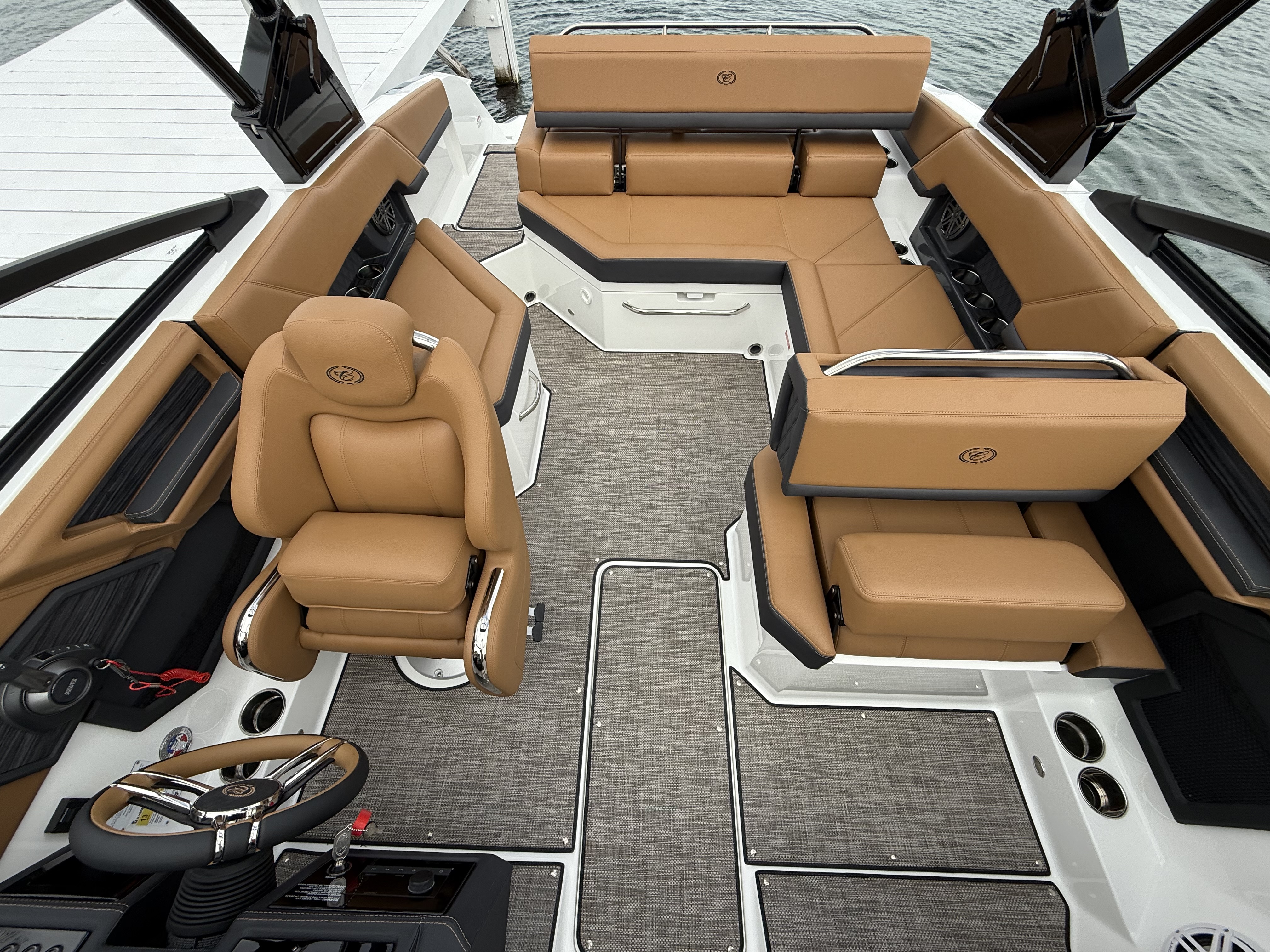 Unparalleled Comfort: Plush seating, including an Aft-Facing Rumble Seat, provides the perfect space to relax and take in the views.