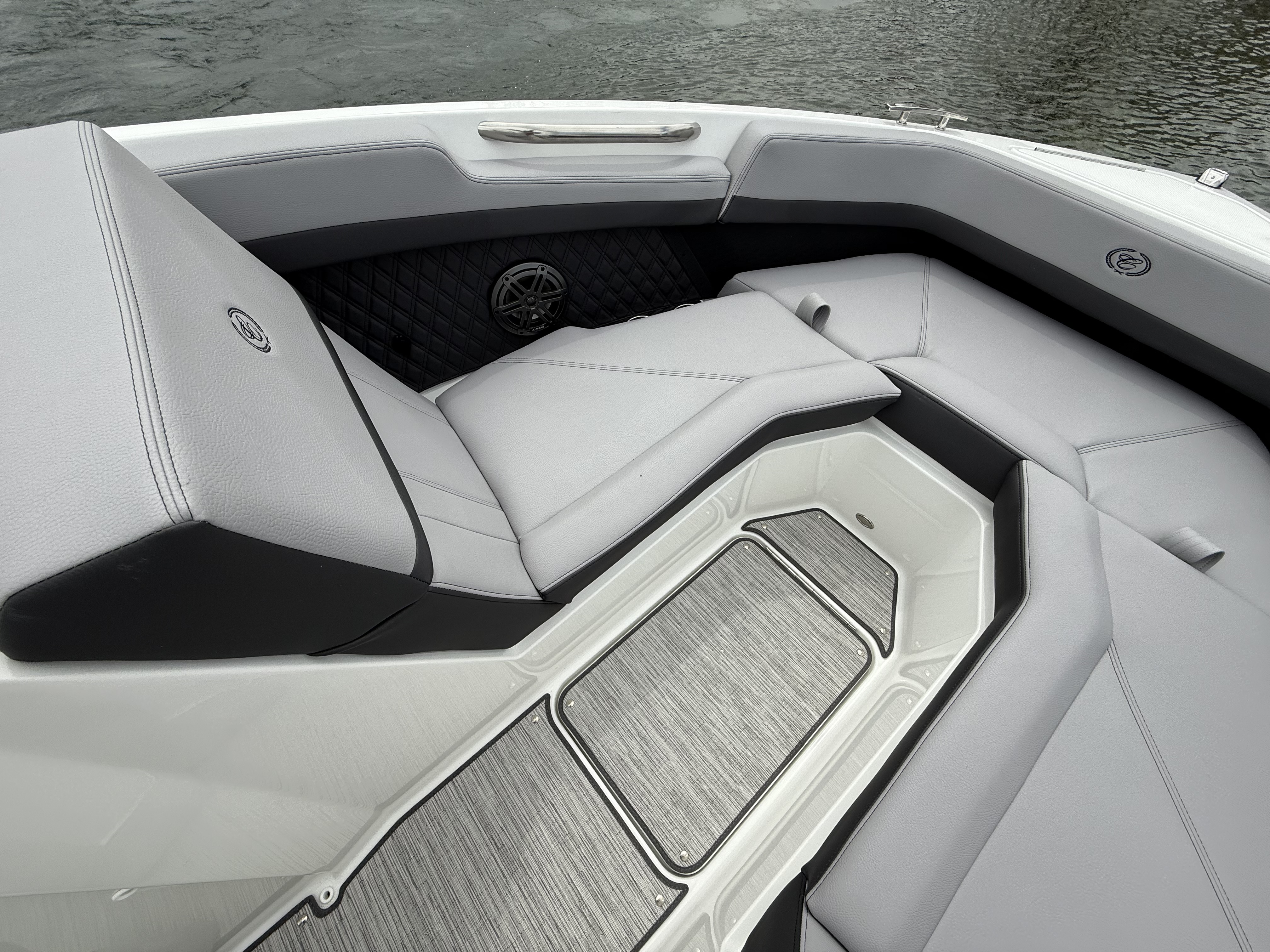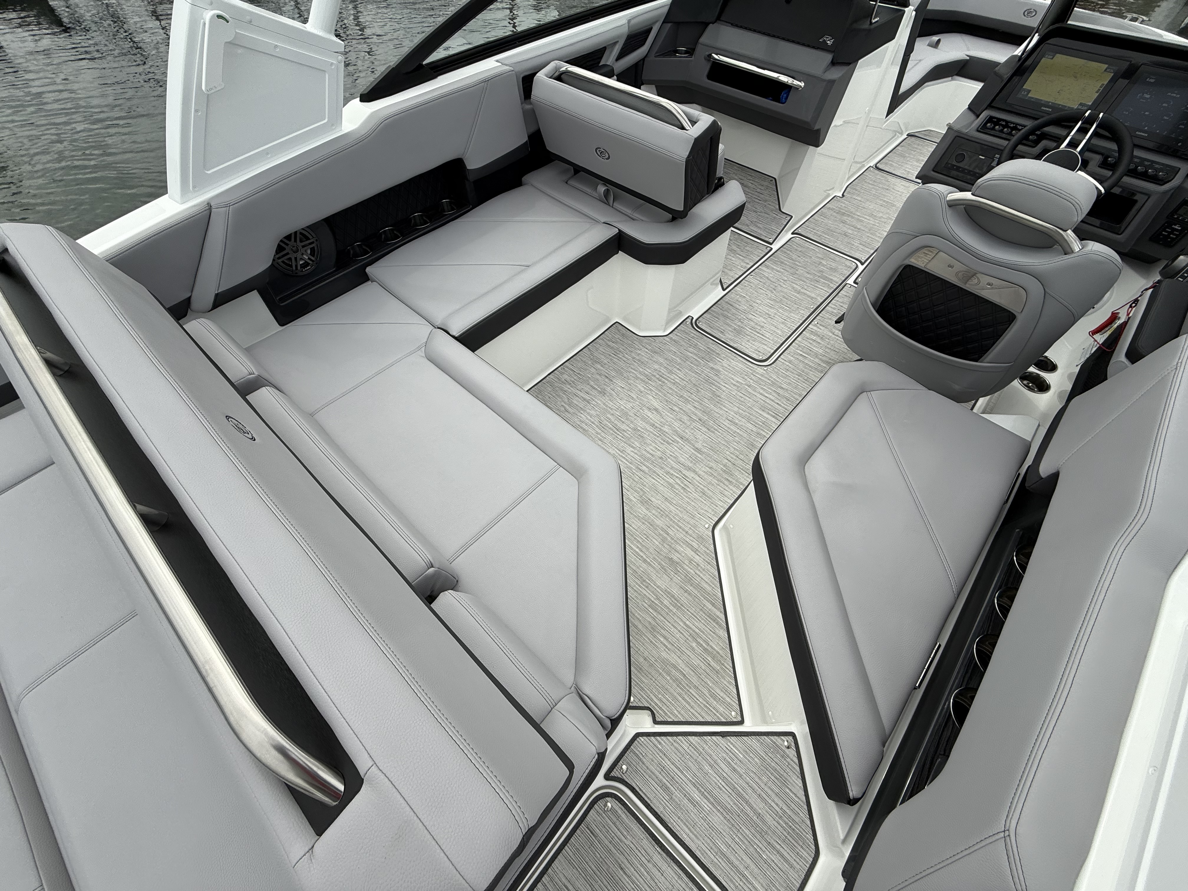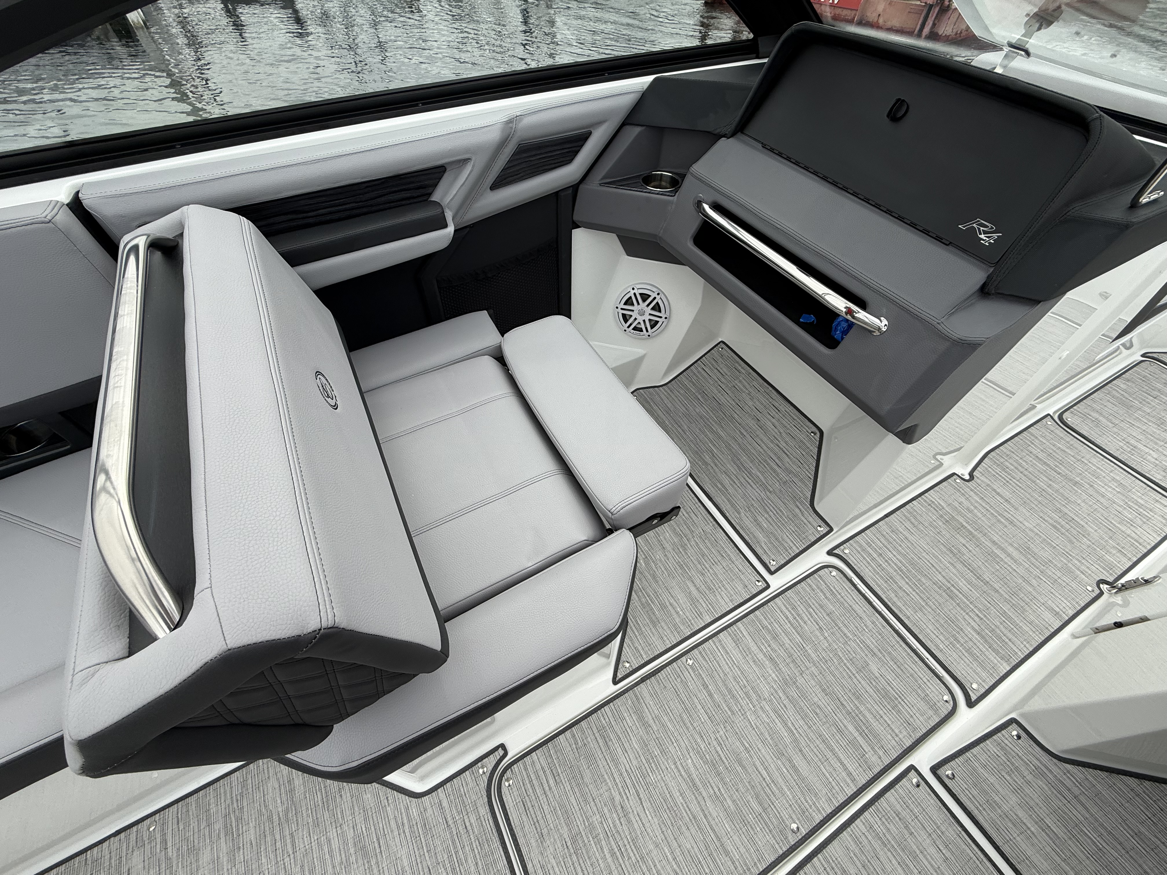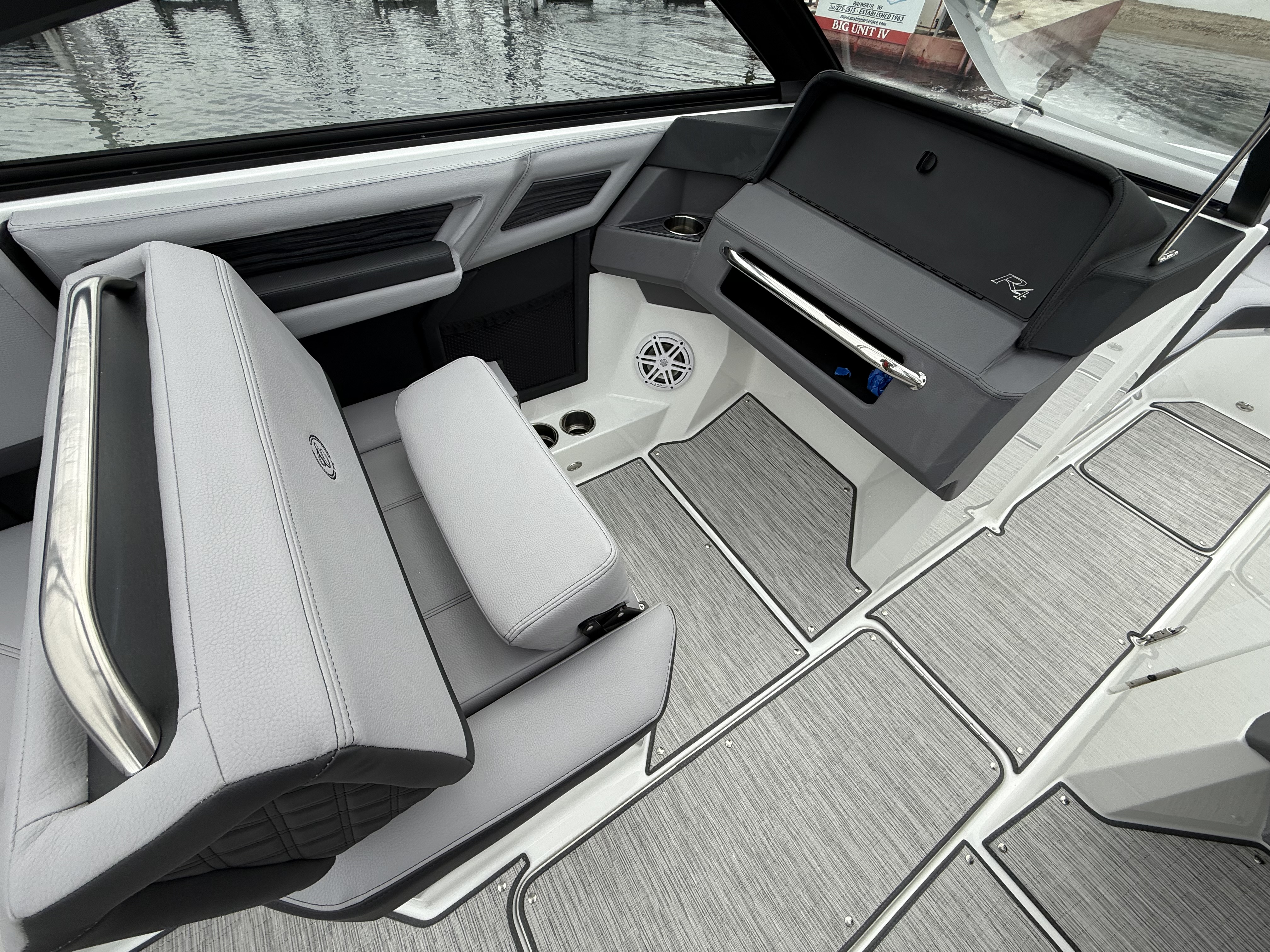 With its Pacific Blue hull, Rich Ebony accents, and a White bottom, the R4 turns heads both at the dock and on the water. A three-color custom graphic package with a swim platform accent ensures a sleek, modern aesthetic that exudes sophistication.