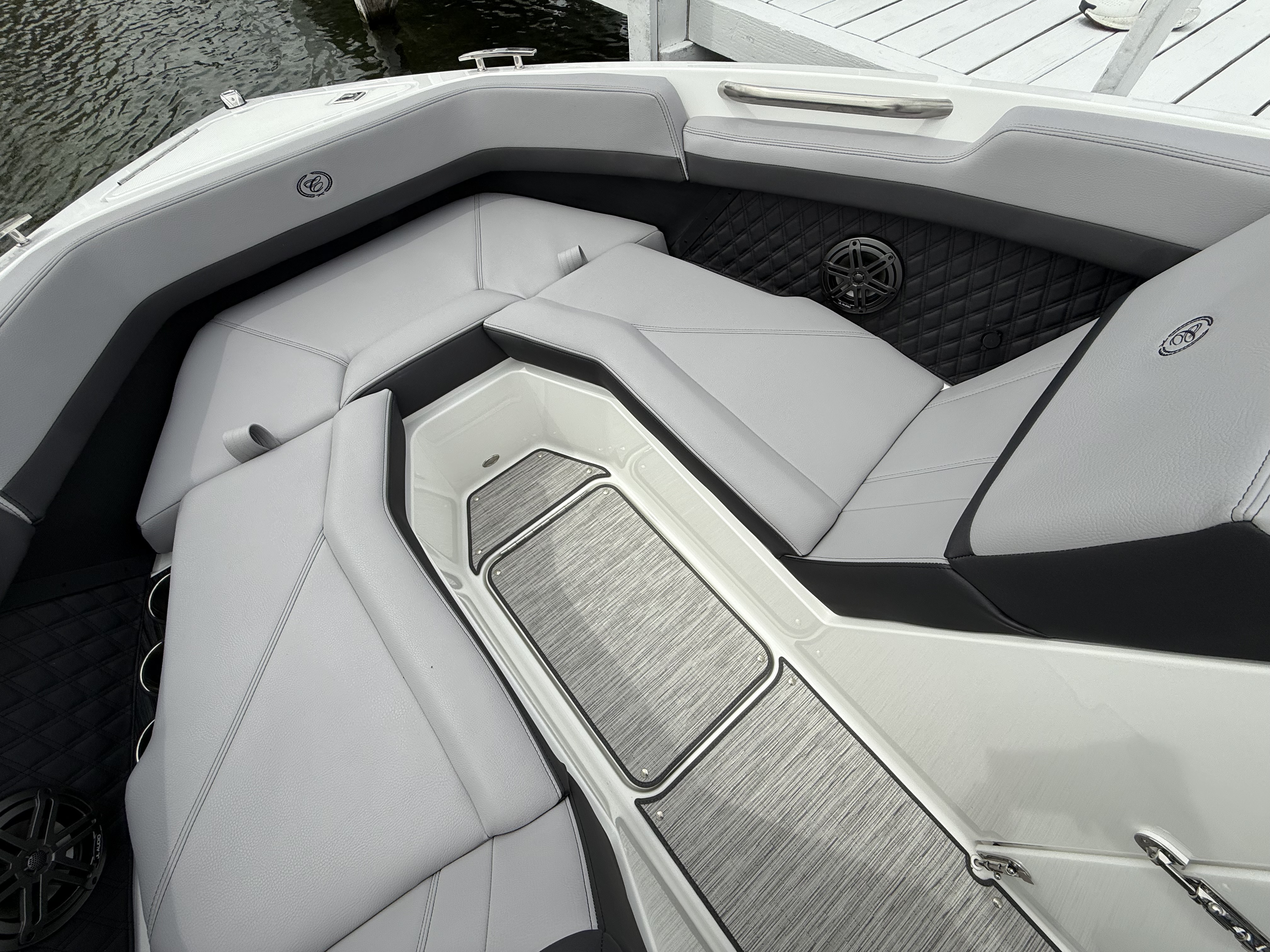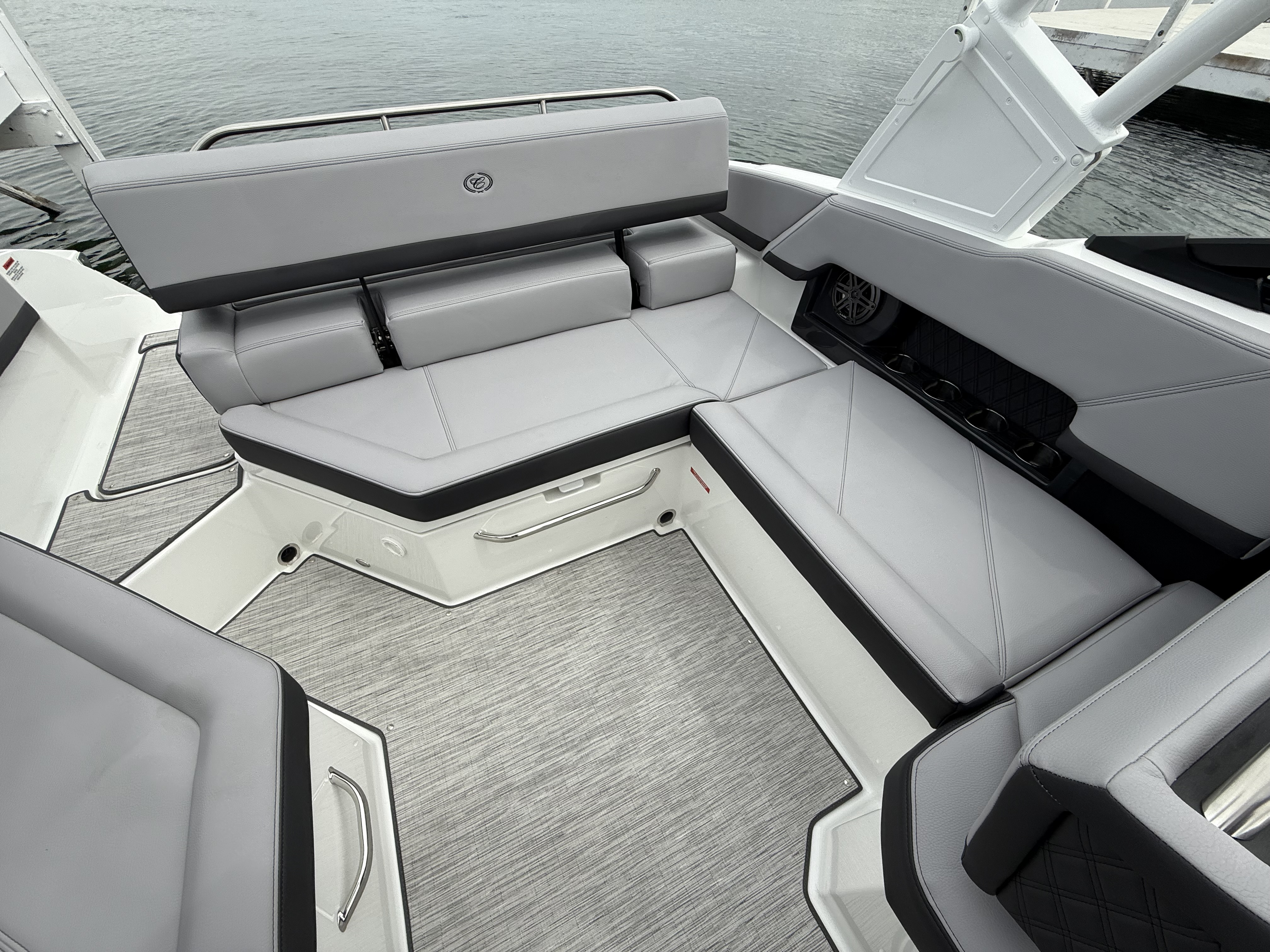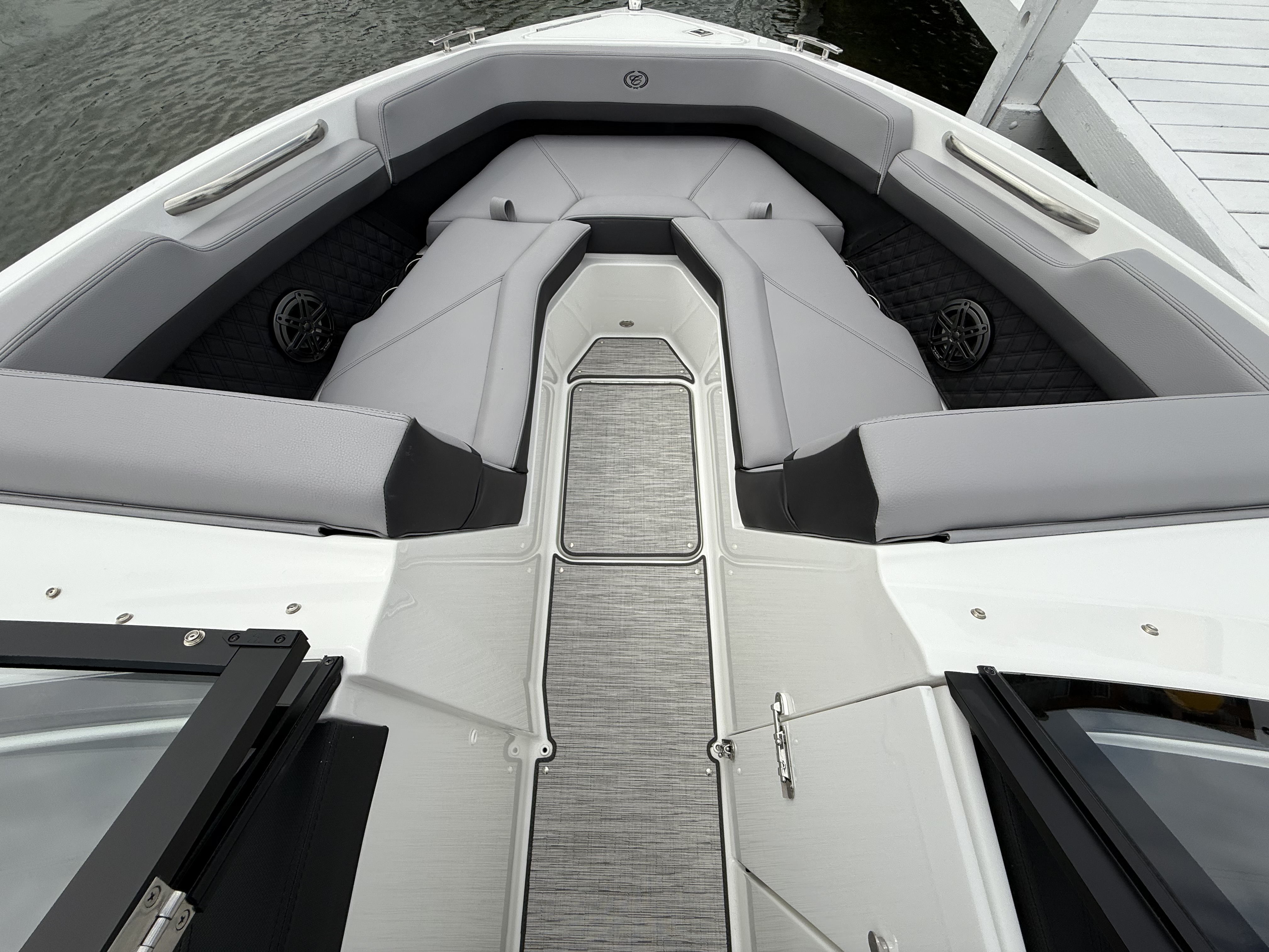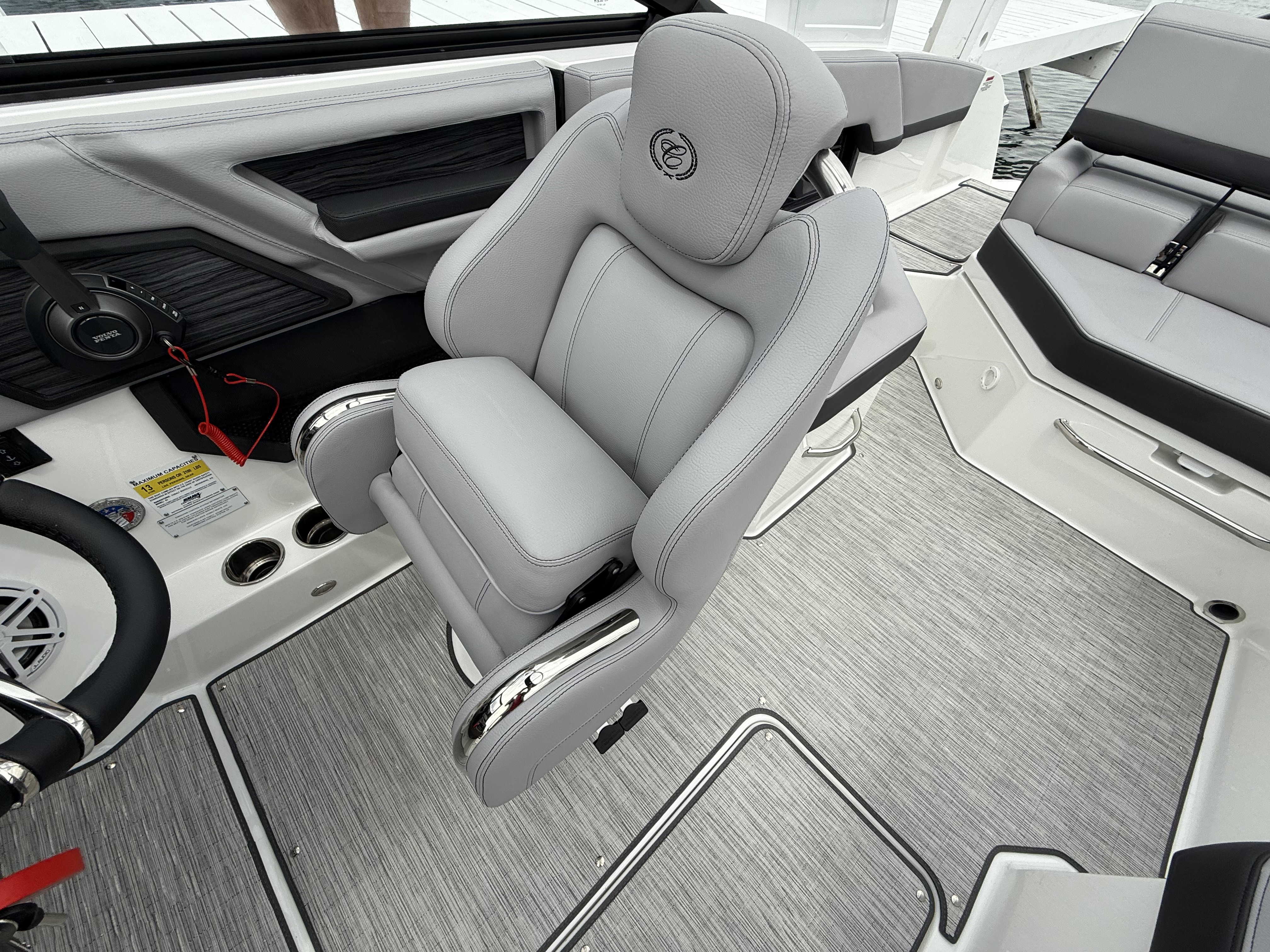 With its Pacific Blue hull, Rich Ebony accents, and a White bottom, the R4 turns heads both at the dock and on the water. A three-color custom graphic package with a swim platform accent ensures a sleek, modern aesthetic that exudes sophistication.