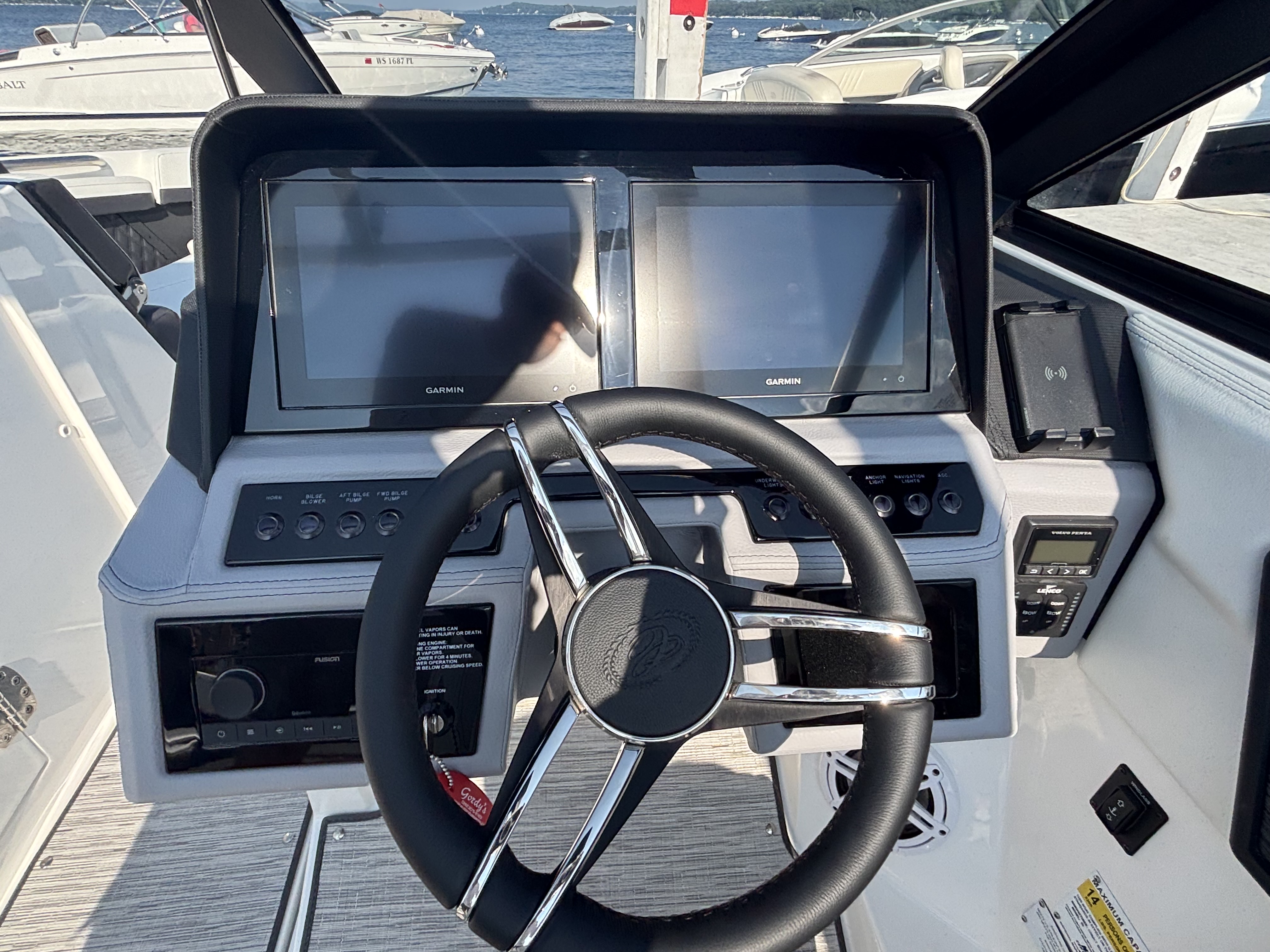 Perfect for long lake days or sunset cruises, the cockpit and bow tonneau covers, flagpole with flag, and abundant storage space keep your vessel pristine and functional from morning to night.
