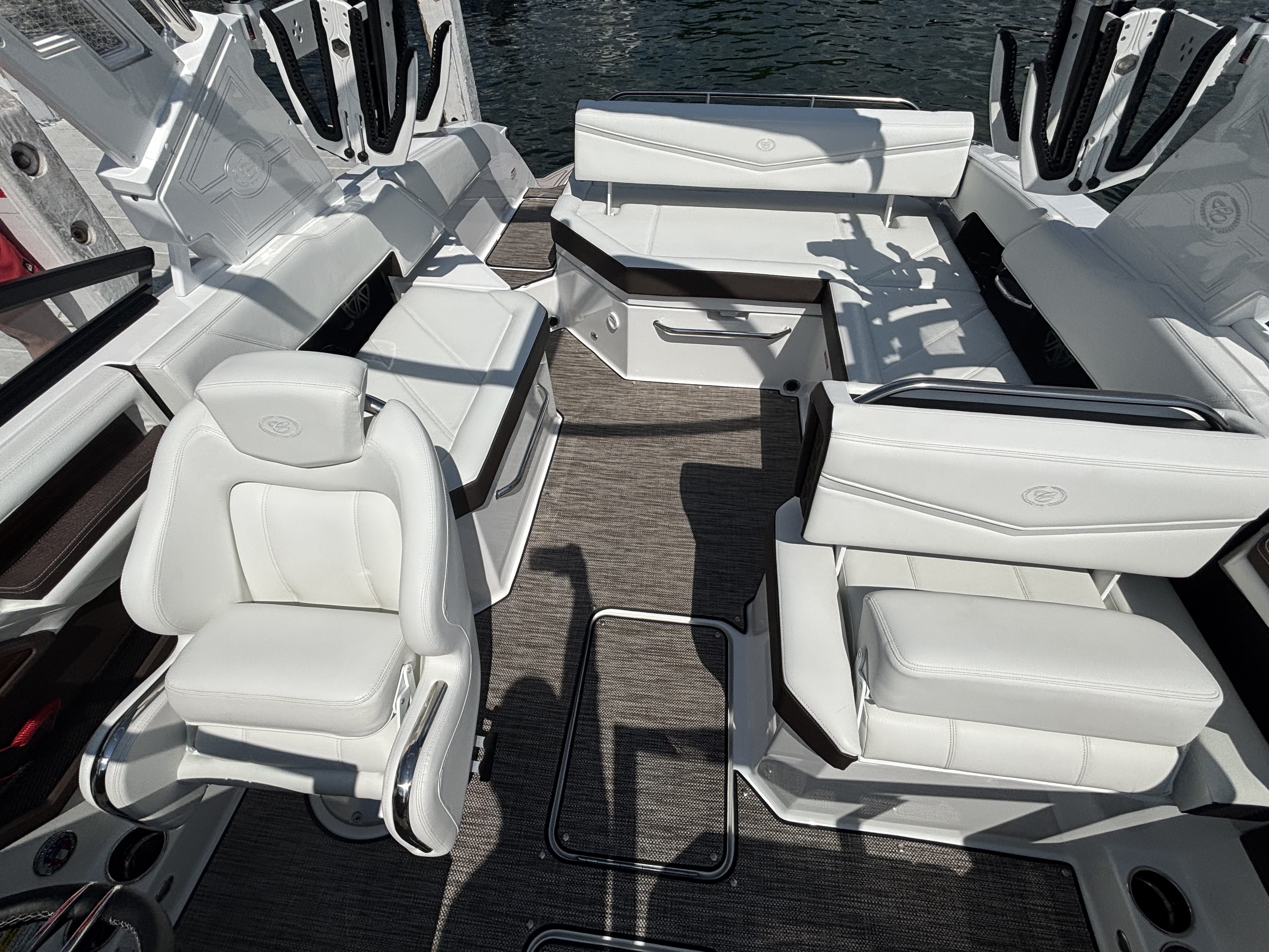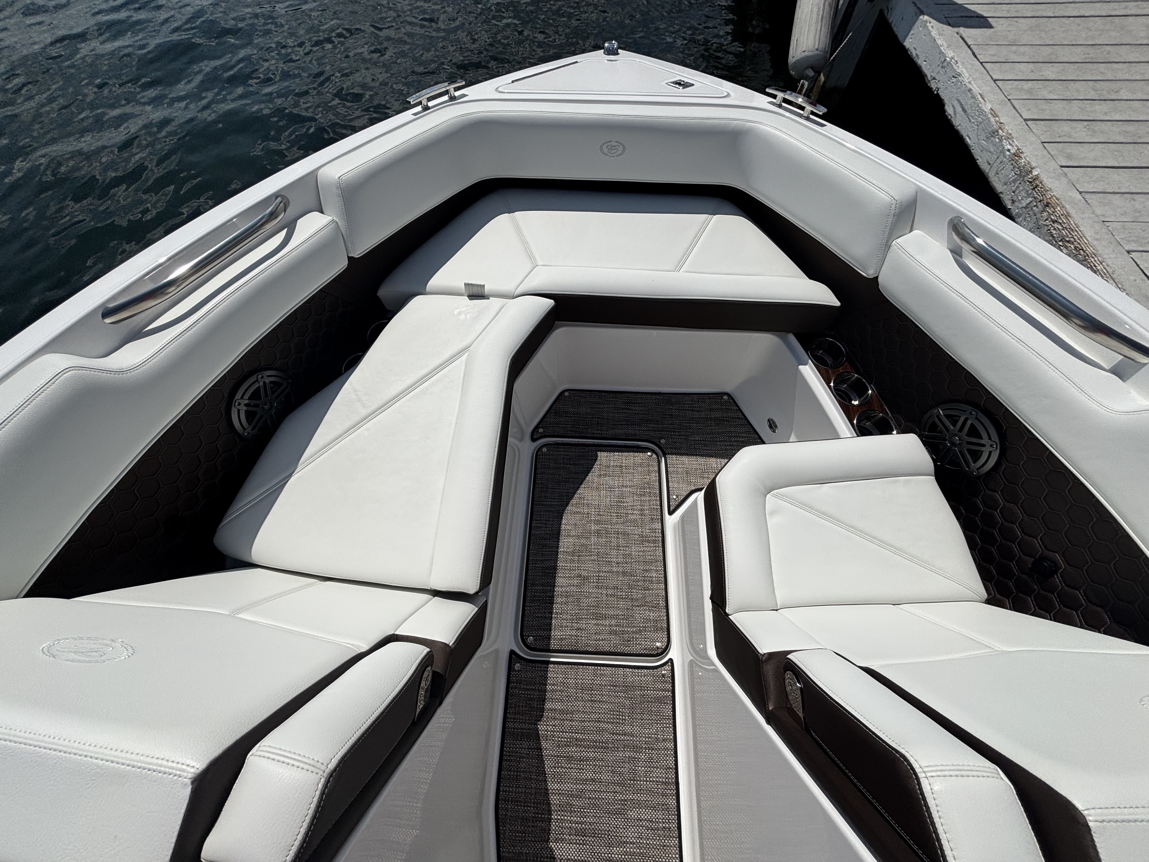 Powered by a Volvo V8 350hp engine with forward-facing outdrive, this R6 Surf delivers impressive power and smooth handling, making every moment on the water an adventure.