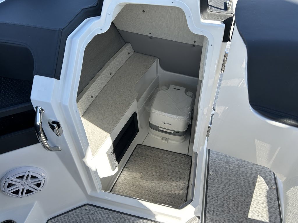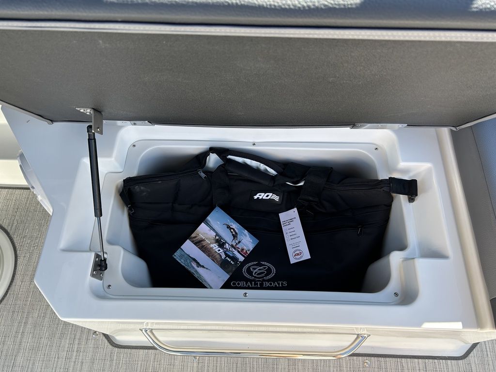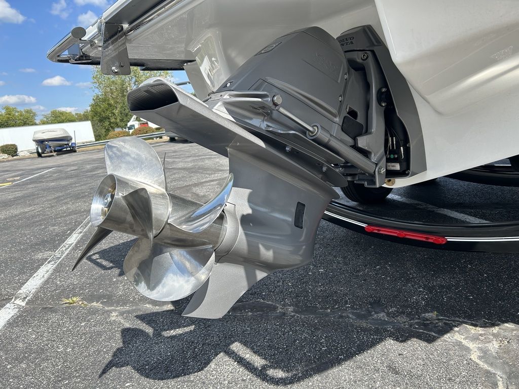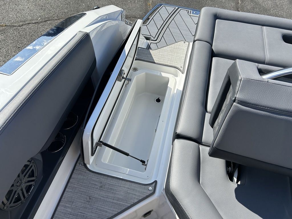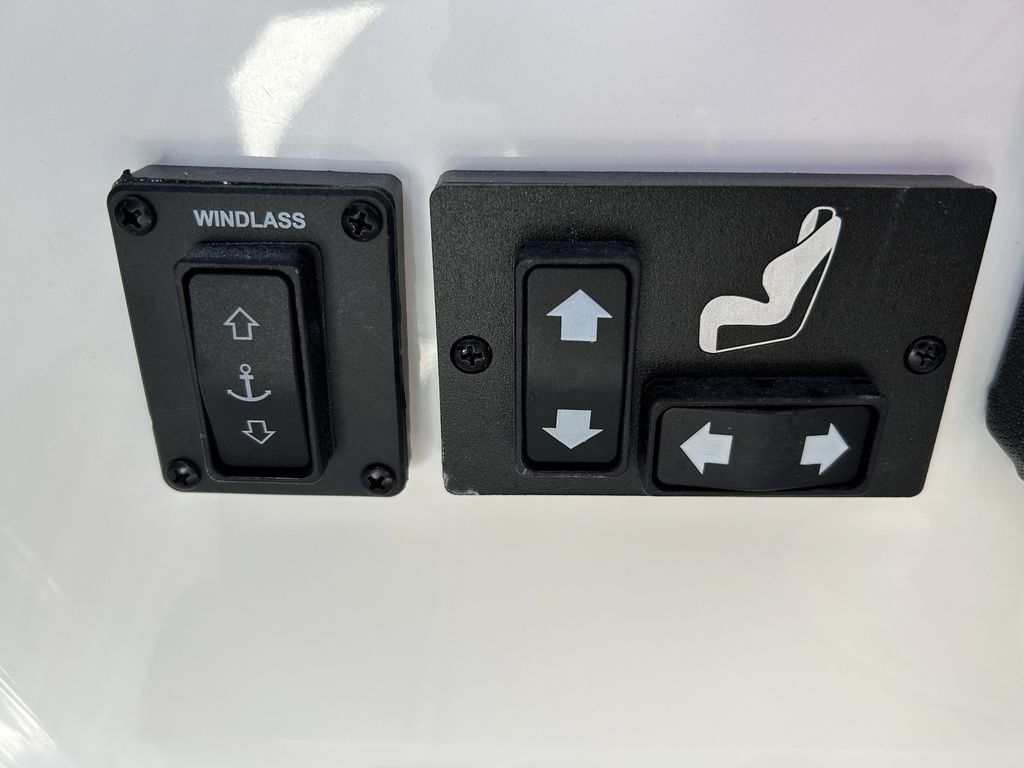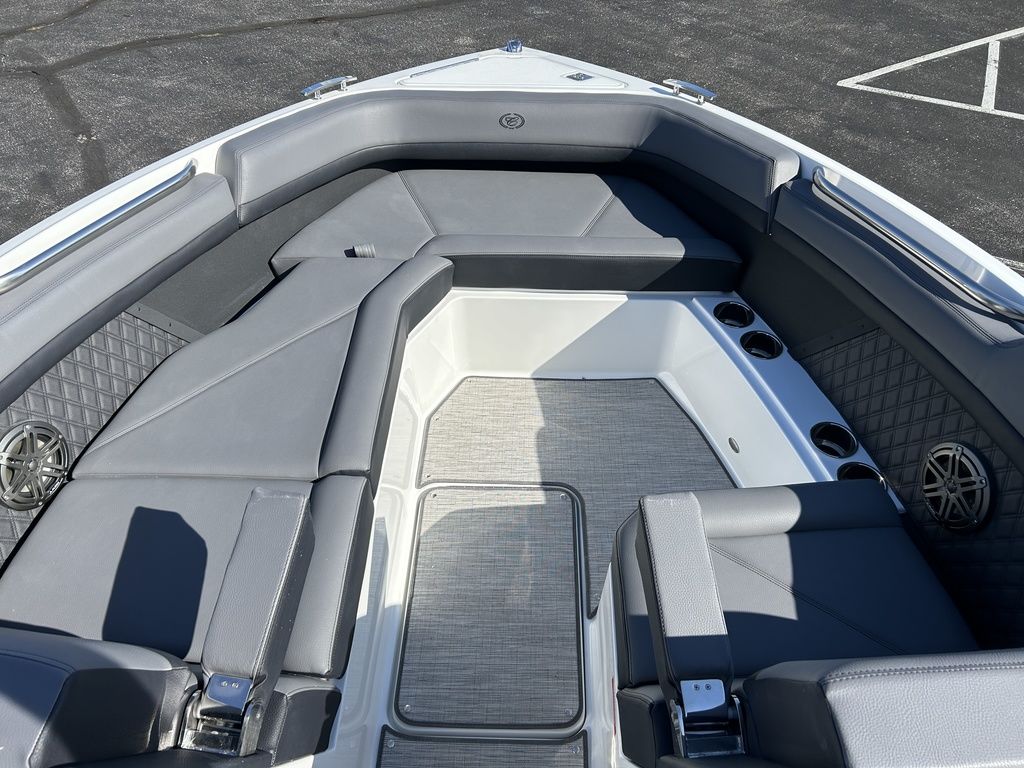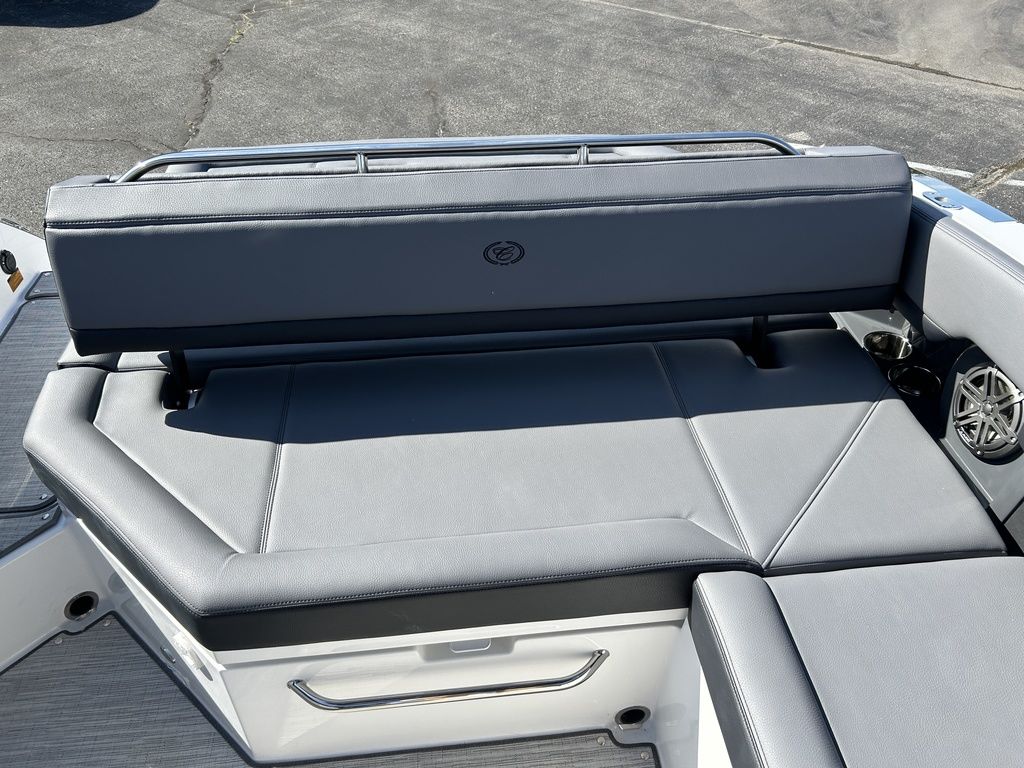 Full Mooring Cover, Folding Arch w/Rotating Sunshade, Dinette Table, Stainless Flagpole, Air Compressor, Dual Battery System, Stainless Docking Lights, Electric Adjustable Helm Seat, Seagrass Floor Covering, Dual 10" Garmin Glass Cockpit Screens, Two-Tone Leather Steering Wheel, RGB Interior LED Lighting, Premium Sound System w/Transom Speakers, Transom Radio Remote, Slate Interior w/Cool Touch Vinyl, Sof-Trac Swim Platform Mat, Sof-Trac Gunwale Mats, Trim Tabs, Windlass Anchor w/Chain, Helm Wireless Cell Phone Charger and Three Color Custom Hull Graphics