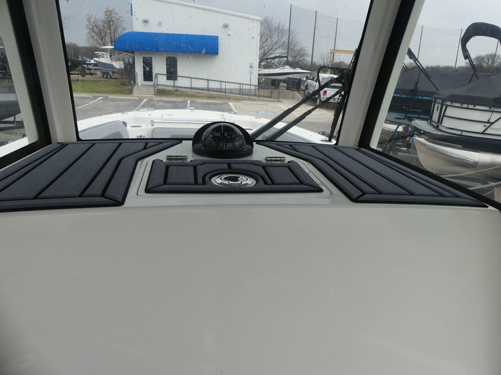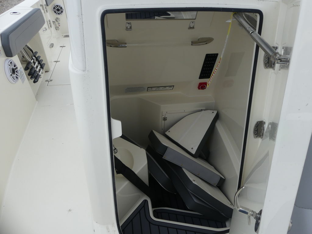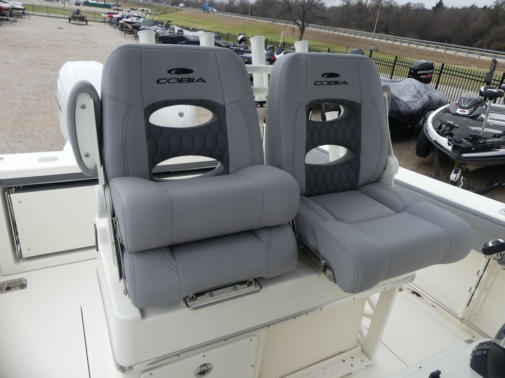 Whether you are looking to do more fishing or a little more than fishing, the brand-new Cobia 265 CC delivers. Standard features include an inward opening side entry door, a newly designed hideaway aft bench seat with backrest, dual fuel fills and a user-friendly helm that can accommodate up to two 16” screens and can be outfitted with an integrated hardtop frame with tempered glass enclosure, wiper and vent. The updated Garmin electronics packages will help you navigate to the best fishing grounds or your favorite sandbar with ease and the new Garmin Force Kraken trolling motor option will keep you right on your spot.