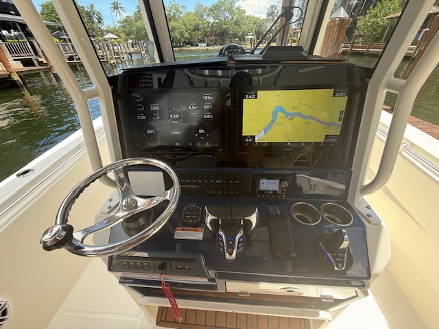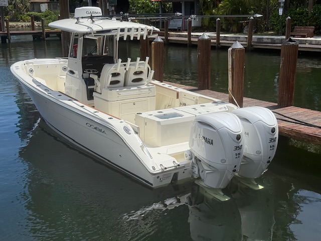 2025 Cobia 285 Center console. Powered with Twin Yamaha 350 HP Outbord Motors (White). Only 287 Hours! Priced to SELL!! Owner wants bigger boat. Boat comes with Joystick, Helm Master, EX DES with AP/JOY/Iso Charger. Digital Electric Steering, Trim Tabs with Trim Indicator, Helm Seat deluxe Tackle Station, Cushion Package, Fiberglass Hard Top with integrated frame and glass, LJ Audio Stereo Sysytem with 10 Speakers, 2 subwoofers and 3 amplifiers, $ Batteries with Switch, Electric forward table and sun lounge, walk through transom with telescopic ladder, Outriggers, Twin Garmin GPSMAP 8616 with magnetic covers and Acrylic Dash, VHF RAdio, Spreader lights,Electric Windlass with remote, Marine Head, Fish Boxes, Fresh and Salt Water Washdown. This boat is in New condition. Please contact Patrick to schedule a showing. Financing Available!! Hablamos