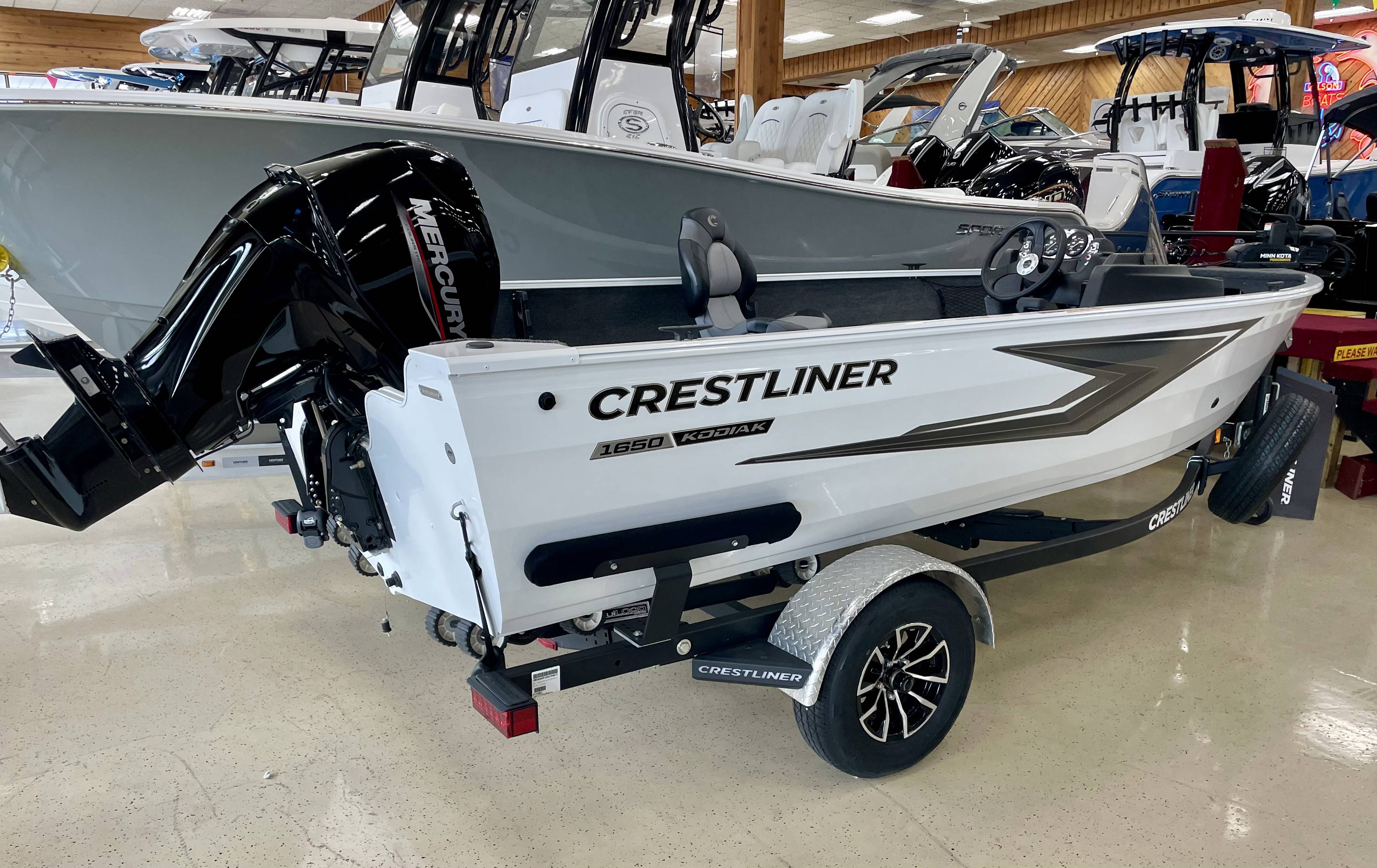 2025 Crestliner 1650 Kodiak SC powered by a Mercury 60ELPT 4S EFI and includes a trailer!Factory Installed Options:Exterior- bright white right white accentsInterior- grayVinyl for cockpit floorAluminum propHelm seat sliderFishing package-Minnkota/HumminbirdBow cargo netsCustom travel cover