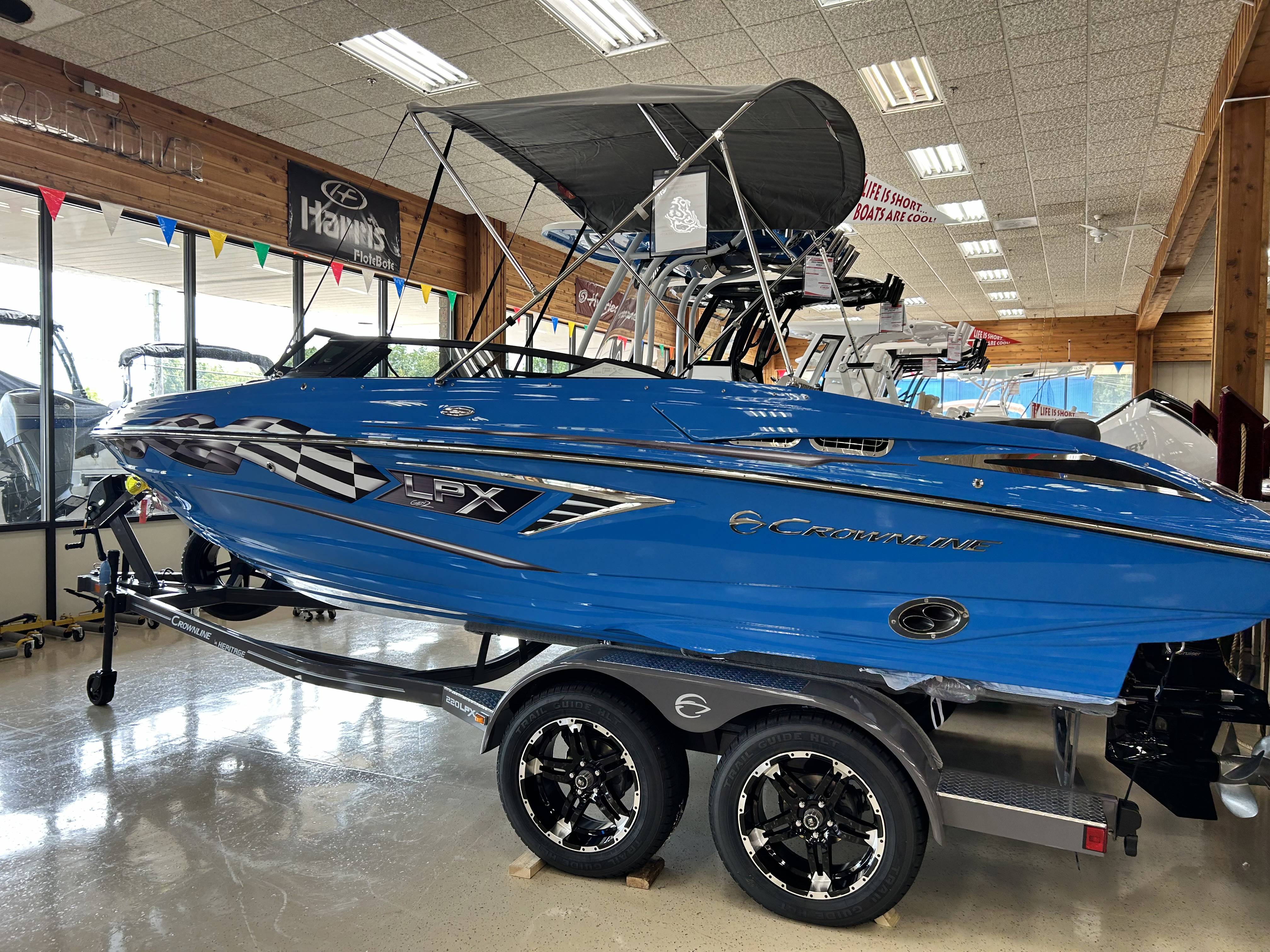 2024 Crownline 220 SS LPXExplore the pinnacle of luxury and performance with the 2024 Crownline 220 SS LPX. This exceptional bowrider boasts a range of factory-installed options that ensure every moment on the water is nothing short of extraordinary.Key Features:Engine: Mercruiser 350HP 6.2L B3 with DTS controls for powerful and precise handling.Trailer Included: A trailer is included for convenient transport and storage.Exterior: Blue Diamond hull color with matching swim platform for a distinctive and stylish appearance.Interior: Titanium interior upholstery creates a sophisticated and comfortable environment.Covers: Bow and cockpit covers included for protection from the elements.Entertainment: Wet Sounds performance amp system with LCD transom remote delivers exceptional sound quality.Convenience: Battery charger ensures your boat is always ready for adventure.Accessibility: Bow walk-thru door enhances ease of movement onboard.Additional Equipment: Includes 4 fenders with clips, transom trim switch, and ratchet straps for trailer security.Design Elements: Stainless steel rub rail insert with black extrusion adds durability and visual appeal.Comfort: Soft touch cockpit snap-in mat in charcoal and soft touch swim platform mat in charcoal enhance comfort and aesthetics.Protection: Bimini top provides shade and protection from the sun.Whether you're cruising, waterskiing, or simply relaxing with friends and family, the Crownline 220 SS LPX offers unparalleled performance, luxury, and style.Contact us today to schedule a personal viewing and experience the excellence of the 2024 Crownline 220 SS LPX firsthand.