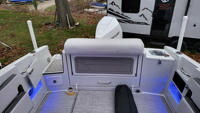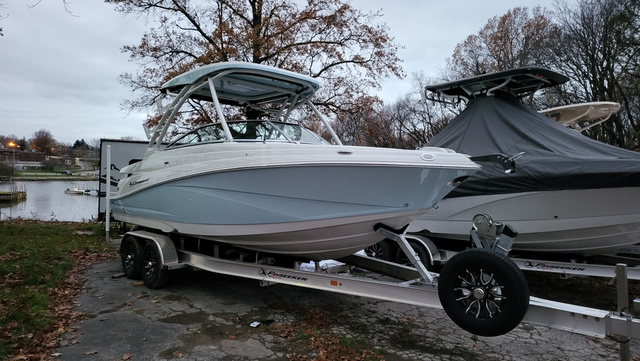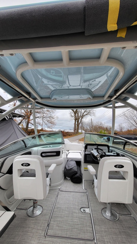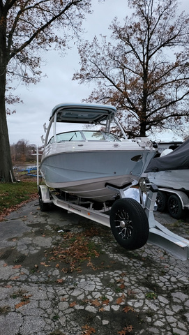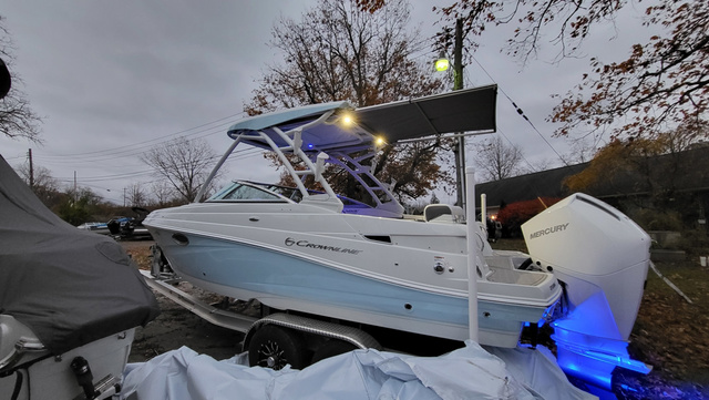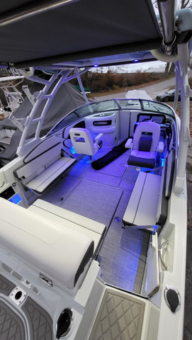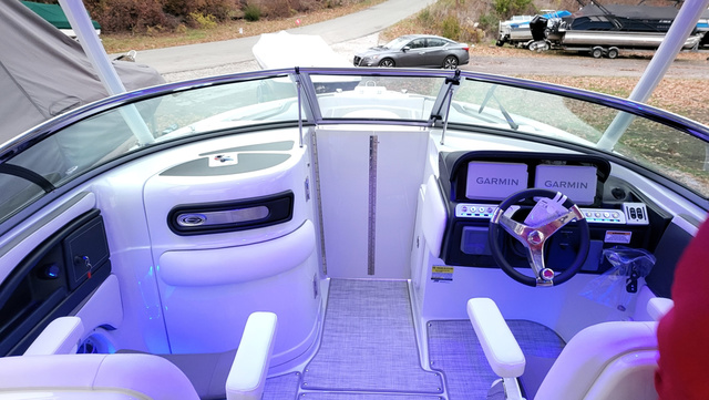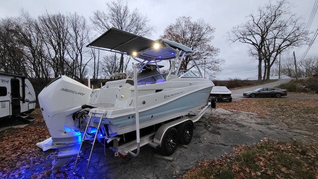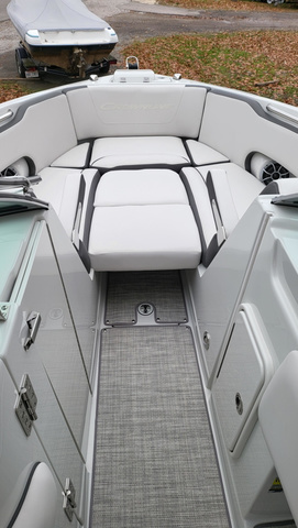 Brand New Finseeker (by Crownline) 240 DC with Mercury 300HP V8 White with DTS. Loads of room with perfect layout for fishing or cruising. Advertised price is base model with aluminum trailer and Crownline Loyalty applied. Contact now for best price pre 2025. Has everything standard as Crownline is known for, including windlass with SS anchor and electric shurshade. Options on this boat include: one piece mooring cover w/hangtyte, a full canvas package with front, side and aft curtains, deluxe color coordinated interior, filler cushions for the bow, snap in platinum mist woven flooring, x hard top with color matched underside, 4 SS fender clips bases and inserts, Electric flushing head compartment, Under water lighting package with keychain remote control, trim tabs with indicators, windshield wiper, custom aluminum trailer with guide poles and spare tire w/spindle mount.