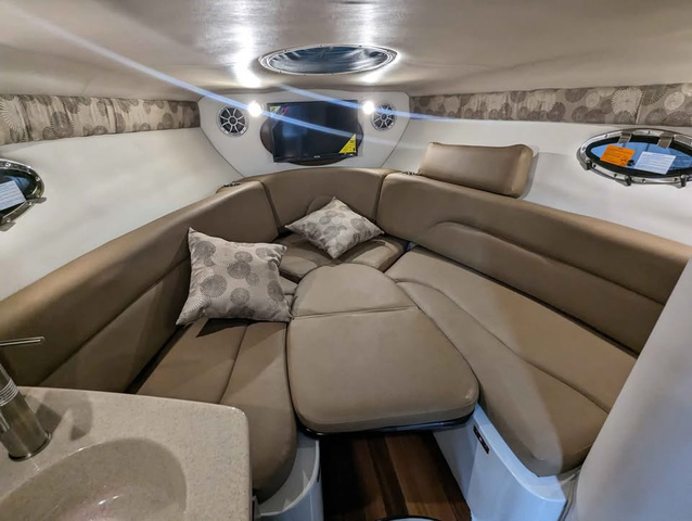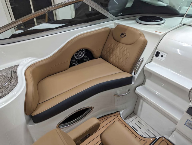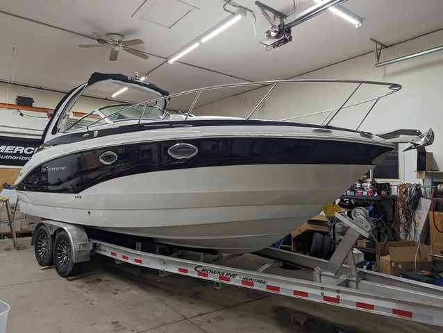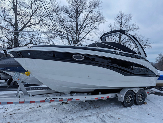 Make an offer! We are cutting incredible deals this offseason! Available to view on our property and for test drive on Lake Erie (weather permitting) The ideal trailerable cruiser, the Crownline 270 CR with 350 Mercruiser Bravo 3 combines unique styling with innovative features and effortless livability. This luxury model features a beautifully appointed cabin and galley with cabinetry, custom countertops, ceramic-top electric stove, sink, refrigerator and microwave. Standard amenities also include air conditioner/heater, aluminum arch with bimini, fully-appointed head compartment, and dockside water receptacle with pressurized water system. Prices too low to advertise. Make an offer! We are cutting incredible deals this offseason! It just arrived on our property fully shrink wrapped and ready for an early Spring! Will feature front and center in the Cleveland Boat Show. The ideal trailerable cruiser, the Crownline 270 CR with 350 Mercruiser Bravo 3 combines unique styling with innovative features and effortless livability. This luxury model features a beautifully appointed cabin and galley with cabinetry, custom countertops, ceramic-top electric stove, sink, refrigerator and microwave. Standard amenities also include air conditioner/heater, aluminum arch with bimini, fully-appointed head compartment, and dockside water receptacle with pressurized water system. Value Adding Standard Features - 100% Composite Transom Air Conditioner - Heat & Cool 8000 BTU w/Soft Start Protection Arch - Moonstone Aluminum w/Electric Fold Down & LED Lights Batteries - Installed & Upgraded to AGM Batteries - Management Panel w/Voltage Sensitive Relay Charging System Cabin - Full Fiberglass Cabin Liner w/Hardwood Accents Canvas - Camper Canvas, Color Matched Canvas - Cockpit Cover, Color Matched Cleats - 8 Stainless Steel Pull-Up, Embossed (6 Total) Cockpit - Solid Surface Countertops and Sink Cover Dash - Moonrock w/Black Stitched Brow & S/Steel Switches & Billet Galley - Cabinetry, Sink, Refrigerator & Electric Stove Gelcoat - Onyx, Double Hull Band w/Middle Deck Band & Vents GPS - GARMIN 7 Twin Touch Screens w/LAKEVU G3 Maps GPS - GARMIN BLUE CHART G3 Maps (Extra Chip) Head - Porcelain Electric Flush w/25 Gallon Tank & Level Indicators Head - Shower, Vanity w/Sink, Opening Portlight, Exhaust Vent & Shower Sump Pump Interior Vinyl - Cappuccino Lighting - Keychain Remote Control for Courtesy Lights Lighting - LED in Cockpit Lighting - LED Underwater Transom Rubrail - Stainless Steel Insert w/White Extrusion Seating - Aft Electric Sunbed w/Trunk Storage Shorepower - Two 30 Amp Receptacles w/50 Cords Speakers - WET SOUNDS (6 Total) Steering Wheel - Black Diamond Stereo - WET SOUNDS Premium Table - Portable Cockpit w/Base & Designated Storage Area Trailer - Tandem Axle Aluminum w/Dexter Torsion Axles & Brakes, Black Aluminum Wheels, Diamond Plate Fenders, Welded Tie Downs & Taillight Section, LED Lighting & V-Block for Windlass Trim Tabs - w/Indicators Water - Dockside w/Pressurized System Windlass - w/Rope and Chain Windshield - Wiper Windshield - Stainless Steel Header and Lock Additional options on this boat: Cockpit furniture upgrade - Midnight Sedona Fender Clips - 4 Bases w/4 Inserts Mat - Swim Platform, (Teak-look) Soft Touch Mat - Soft touch Cockpit, Snap In (Teak-look) Engine Upgrade - Mercruiser 350HP DTS Seating - Foredeck Sunpad Stereo - LCD Transom Remote TV - Monitor, HDMI & USB Ports
