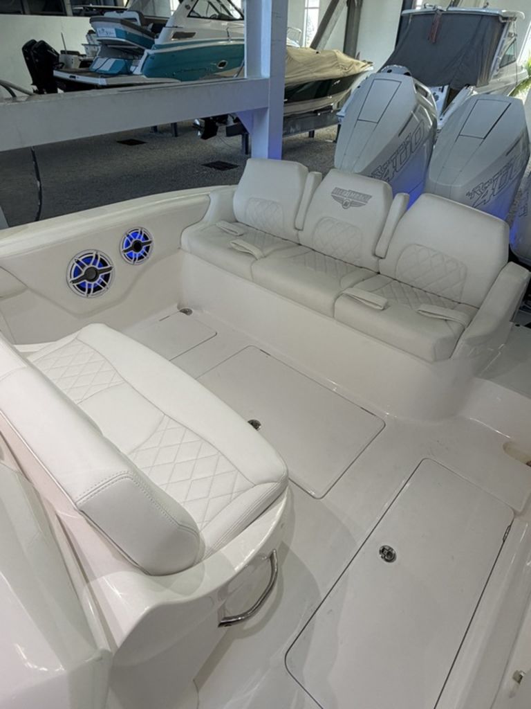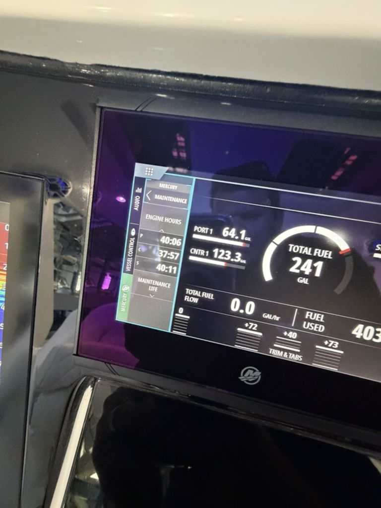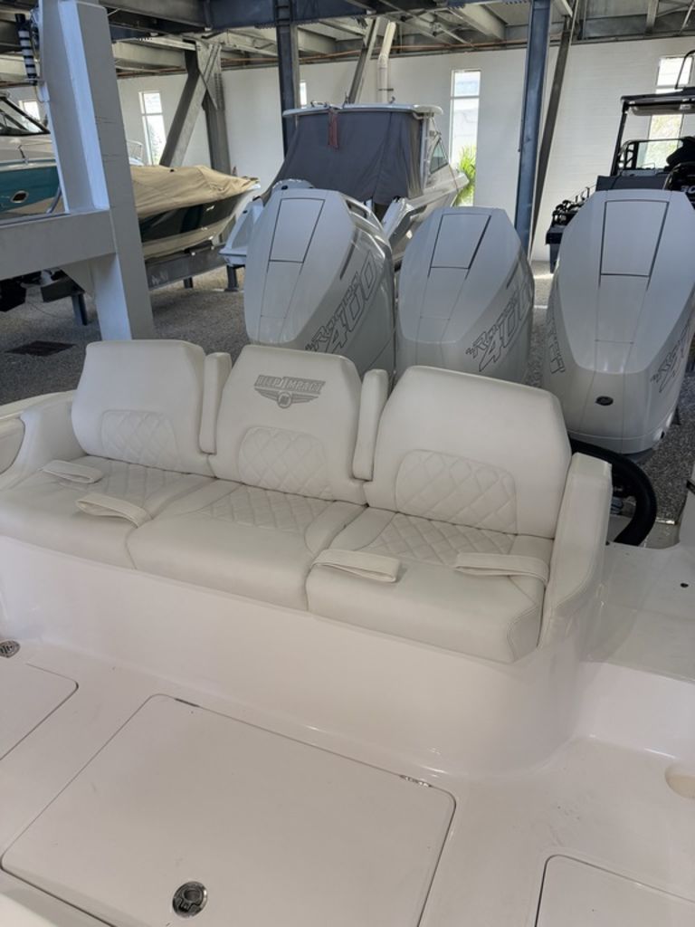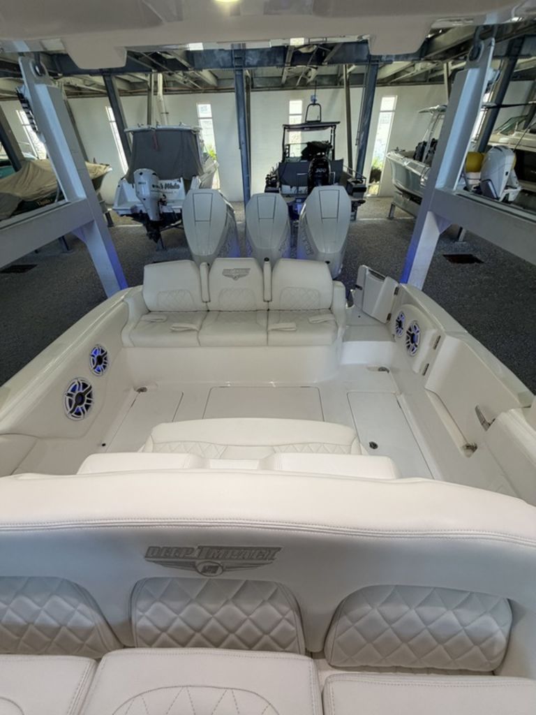 2025 Deep Impact 369 Sport Powered by Triple Mercury Racing 400R V10s with only 40 hours, Warranty through December 2027 with option to extend, Dual 16" Garmin Displays, Huge JL Audio Stereo System, Dive Door w/ Stainless Swim Ladder, Transom Pull Out Ladder, Custom Stitching Pattern in Seating Insert, Garmin VHF 315 Marine Radio, Bow Thruster, Recessed Anchor Locker w/ Freshwater Washdown, 1KW Transducer w/ Garmin GSD 25 Sounder Module, Bow Storage Compartment, Bow Seating, Fwd Deluxe Lounge Seat, Rear Facing Mezzanine Seating behind Helm w/ Cooler, Stainless Bow Rails, Full Cabin with Head, Day Bed and Sink, Fwd and Aft Spreader Lights, Multi Colored Under Gunwale and Hard Top Lighting, Port and Stbd Insulated Fish Boxes, Under Gunwale Storage, Windows in Console, Transom Seating w/ Cooler, (8) Stainless Cleats, Stainless Bow and Stern Eyes, Trim Tabs, Full Cover and much More!
