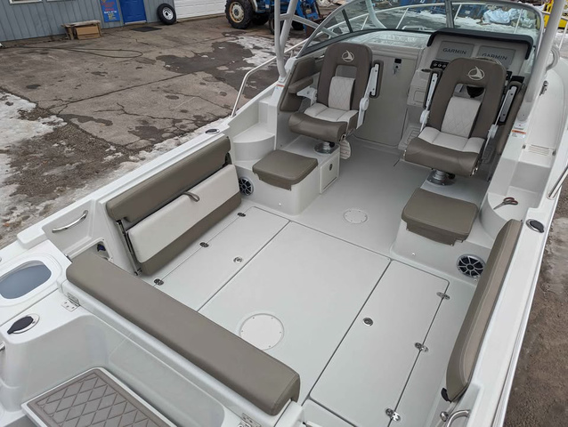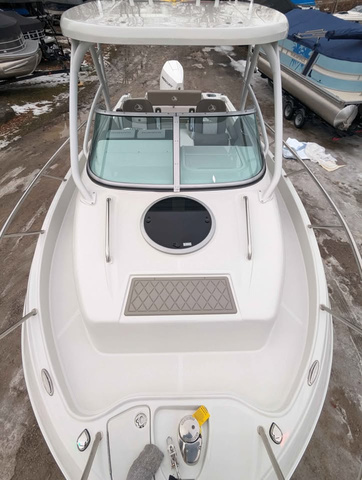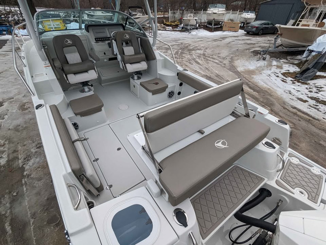 OBO (Or best offer!) Finseeker (by Crownline)'s new 245 Walkaround. Responding to popular demand by fishers and cruisers alike, this new model from Crownline keeps everyone happy! With an amount of space that seems almost impossible in one of the most intelligently designed cabins we've ever seen - the 245 Walkaround can replace two boats! The ample walkaround space and fishing equipment throughout the boat makes it just as versatile as a center console for all your fishing needs. This is the PERFECT boat for Lake Erie fishermen, while simultaneously being a great overnighting boat for extended weekends in the islands. The aluminum trailer, white hull and motor means this can be comfortably brought into the saltwater too. Test drive today with us on Lake Erie! Set aside some time as it will take at least an hour to go through every option and feature this boat has to offer! Options Added: ENGINE MERCURY 300 FOUR STROKE XL W/DTS CONTROLS & ELECTRO HYDRAULIC STEERING - COLD FUSION WHITE -- 300 HP INTERIOR INTERIOR: SHARK SKIN (SOFT GREY BASE W/MOONSTONE ACCENTS) FLOORING (SNAP-IN): NO FLOORING SWIM PLATFORM: SOFT TOUCH GREY DIAMOND HELM: GPS - GARMIN 9" TWIN TOUCH SCREENS W/LAKEVU G3 MAPS INTERIOR - CABIN VINYL - SLATE STEERING WHEEL - SOLID STAINLESS STEEL W/SPINNER HANDLE CANVAS FULL CANVAS ENCLOSURE W/CLEAR FRONT CONNECTOR, SIDE & AFT CURTAINS, COLOR COORDINATED TOP HARD TOP - MOONSTONE FIBERGLASS W/WHITE ALUMINUM TUBULAR FRAME, REAR FACING WORK LIGHT, 4 ROD HOLDERS, & WALK AROUND GRAB RAILS OTHERS FENDER CLIPS - 4 BASES W/4 INSERTS HEAD - ELECTRIC FLUSH W/HOLDING TANK LIGHTING - DOCKING LIGHTS - S/STEEL LIGHTING PKG - LED UNDERWATER TRANSOM & KEYCHAIN REMOTE CONTROL FOR COURTESY LIGHTS SHOREPOWER - A/C & HEAT W/DIGITAL KEY PAD, UPPER GALLEY W/MICROWAVE, GALVANIC ISOLATOR, 4 BANK BATTERY CHARGER & GFCI OUTLET TRIM TABS W/INDICATORS TRAILER ALUMINUM W/DEXTER TORSION AXLES & BRAKES, BLACK ALUMINUM RIMS, DIAMOND PLATE FENDERS, WELDED TIE DOWNS & TAILLIGHT SECTION, LED LIGHTING & V-BLOCK FOR WINDLASS Standard Features: 100% COMPOSITE TRANSOM ANCHOR - S/STEEL PLOW - 14 LBS. BAIT WELL - REAR AERATED W/ACCESS LID & CLEAR ACRYLIC WINDOW BATTERIES INSTALLED AND UPGRADED TO AGM BATTERY MANAGEMENT PANEL W/VSR CHARGING SYSTEM BOW - WALK AROUND W/FULL S/STEEL BOW RAILS CABIN - FULL FIBERGLASS LINER CABIN - BI-FOLD ENTRY DOORS W/SINK & STORAGE DRAWER, OPENING PORTLIGHT, 20" DECK HATCH & DINING TABLE CELL PHONE HOLDER W/WIRELESS CHARGING & USB-C PORT CLEATS - 6" STAINLESS STEEL (6 TOTAL) COCKPIT - SELF BAILING COOLER - 25 QUART DASH - CHROME TOGGLE SWITCHES AND LED ILLUMINATION FISH BOXES - IN FLOOR W/MACERATORS FLOORING - MOLDED DIAMOND NON-SKID THROUGHOUT COCKPIT GPS - GARMIN BLUE CHART G3 MAPS (EXTRA CHIP) GPS - GARMIN ULTRA HIGH DEF SIDEVU, CLEARVU AND CHIRP TRADITIONAL SONAR LADDER - 4 STEP S/STEEL BOARDING LIGHTING - LED IN COCKPIT LIGHTING - OVERHEAD WORK LIGHTS S/STEEL AFT PROJECTING ROD HOLDERS - BUILT IN (2 AT SIDE WALL AND 4 AFT) ROD STORAGE - BUILT IN COMPARTMENT (STBD SIDE) RUBRAIL - S/STEEL INSERT W/WHITE EXTRUSION SEATING - ARM RESTS - BOW FLIP DOWN SEATING - BUCKET SEATS - DELUXE SWIVEL CAPTAIN & COMPANION W/FLIP-UP BOLSTERS SEATING - CABIN - U-WRAP COCKPIT W/FILLER CUSHIONS & STORAGE SEATING - COCKPIT BENCH SEATS - PORT & STBD STOWS AWAY FOR ADD'L FISHING AREA SEATING - FOOTREST, FOLDING PORTSIDE SHOWER - HAND HELD COLD FRESHWATER AT STERN SPEAKERS - WET SOUNDS (6 TOTAL) STEREO - WET SOUNDS PREMIUM STORAGE - DUAL FIBERGLASS COOLER/STORAGE COMPARTMENTS W/LIDS - COCKPIT STORAGE - DUAL TACKLE BOXES W/TRAYS BELOW REAR HELM SEAT STORAGE AREAS W/IMPACT RESISTANT, NON-MARRING COATING TRANSOM TRIM SWITCH - OUTBOARD WASHDOWN - RAW WATER WINDLASS W/ROPE AND CHAIN WINDSHIELD - S/STEEL HEADER AND LOCK