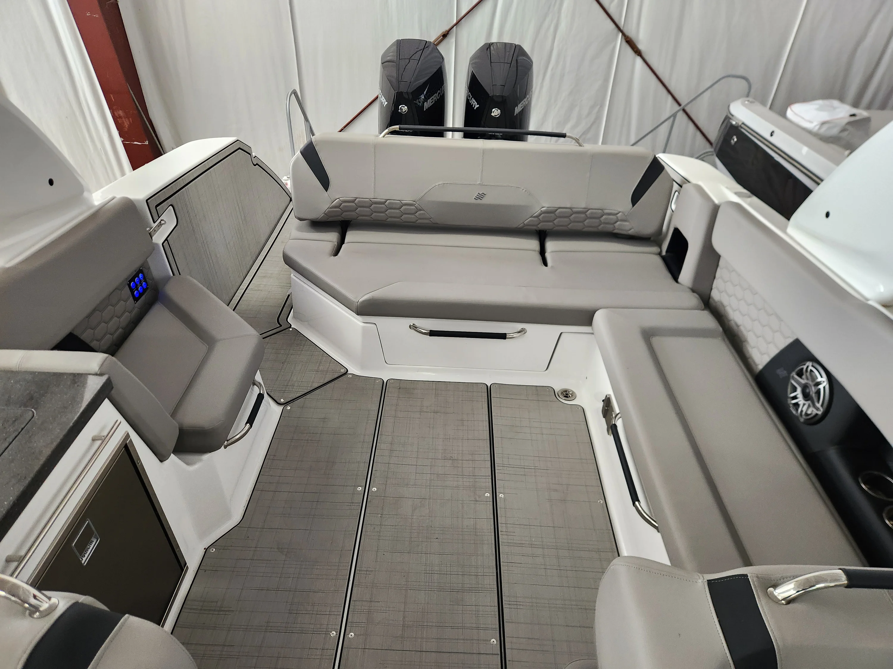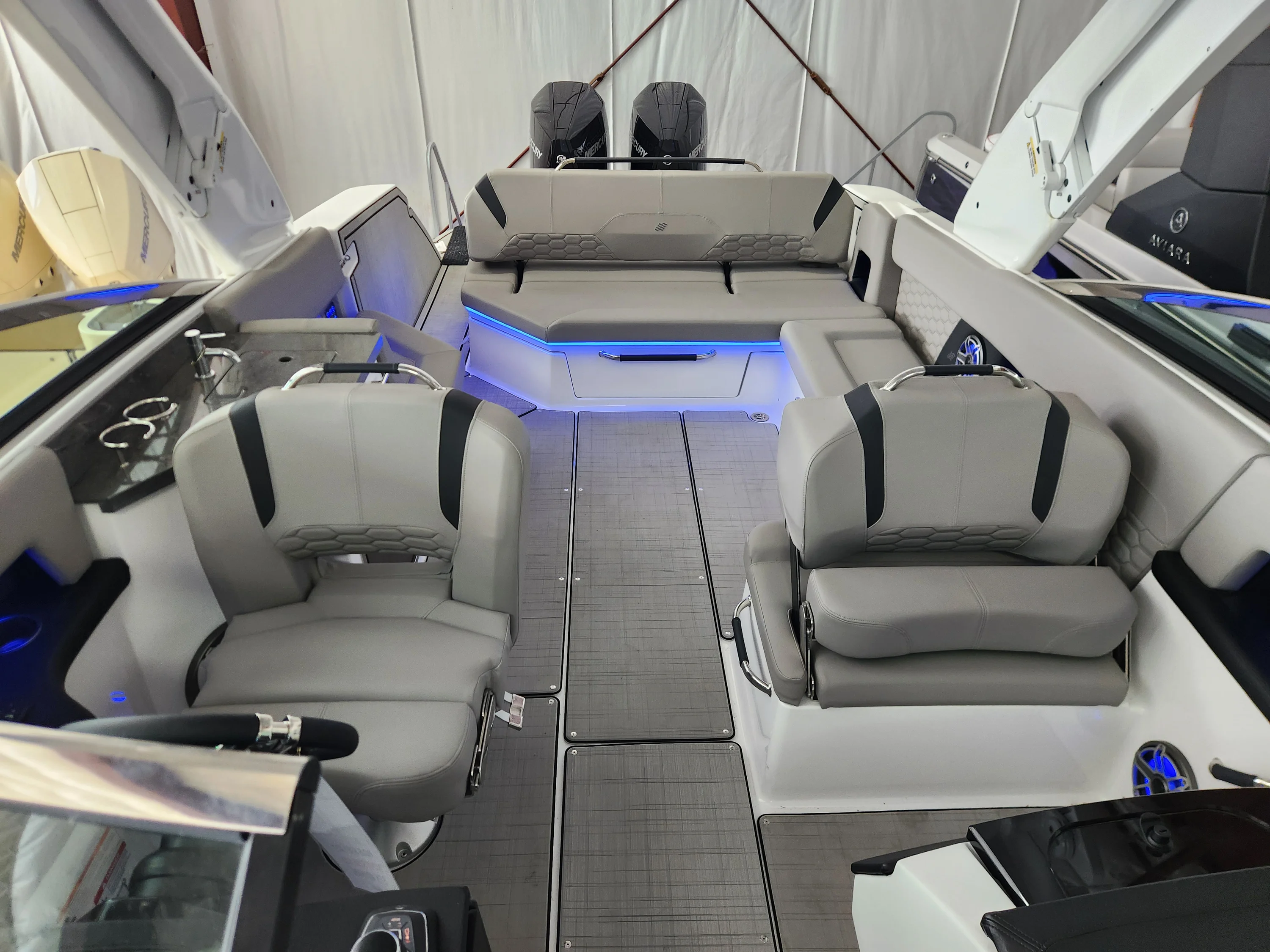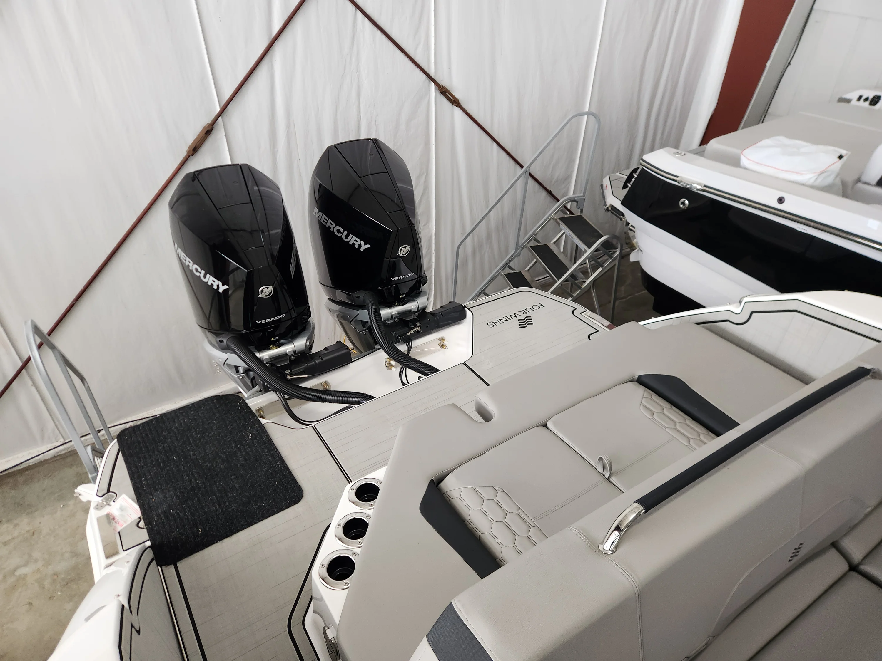 Powered by twin MERCRUISER/MERCURY T-300XLVERESJPO engines, each delivering 300hp, this beauty boasts a total of 600 horsepower. Experience top-tier speed and control as you navigate the waves with ease.