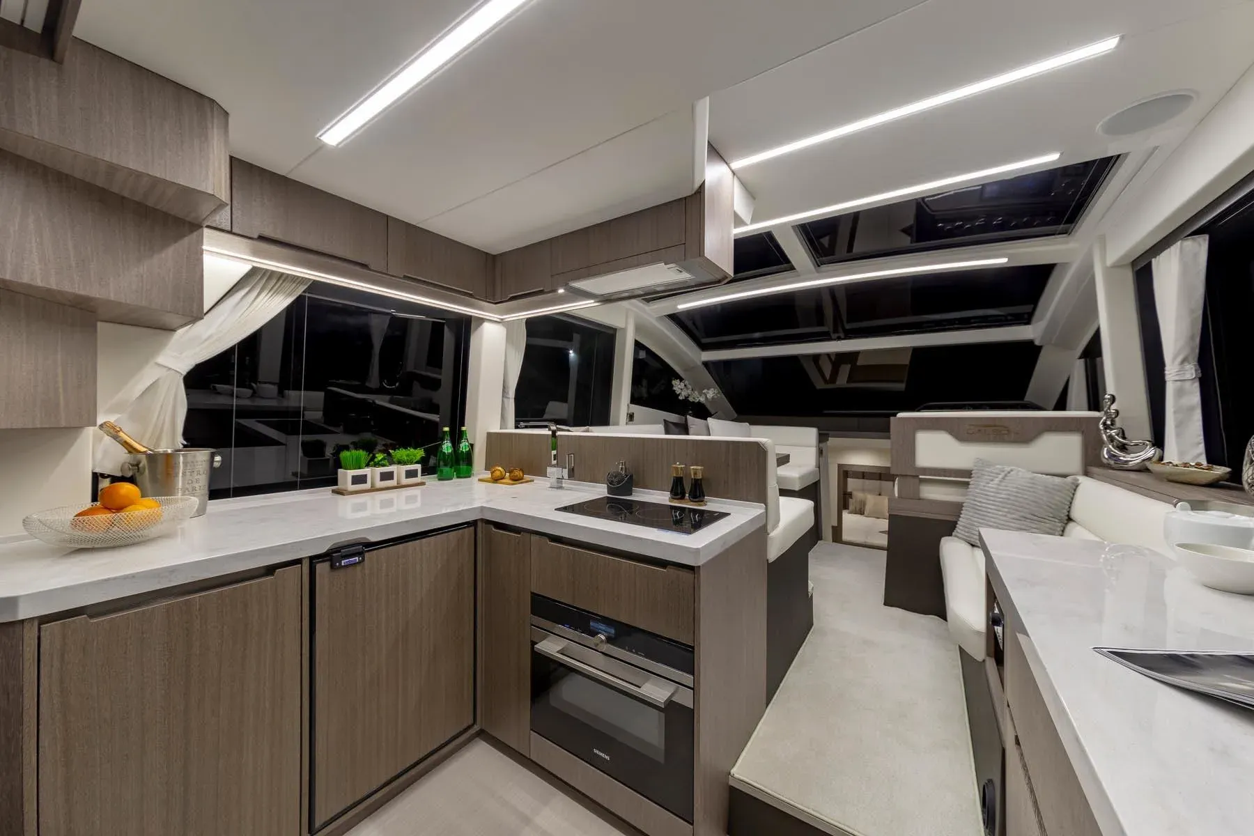 Every detail of the Galeon 470 SKY is meticulously crafted, showcasing premium materials and sumptuous finishes. The expansive living areas aboard provide ample space for relaxation and entertainment, making it the perfect vessel for both intimate gatherings and grand celebrations.