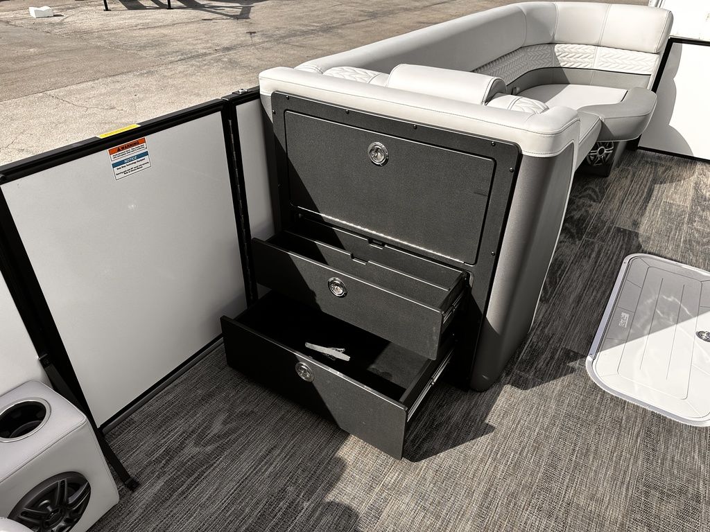- Get ready for a pawsome day on the water! With our optional integrated dog bowl insert, your pontoon pup can join in on the fun and stay hydrated too!