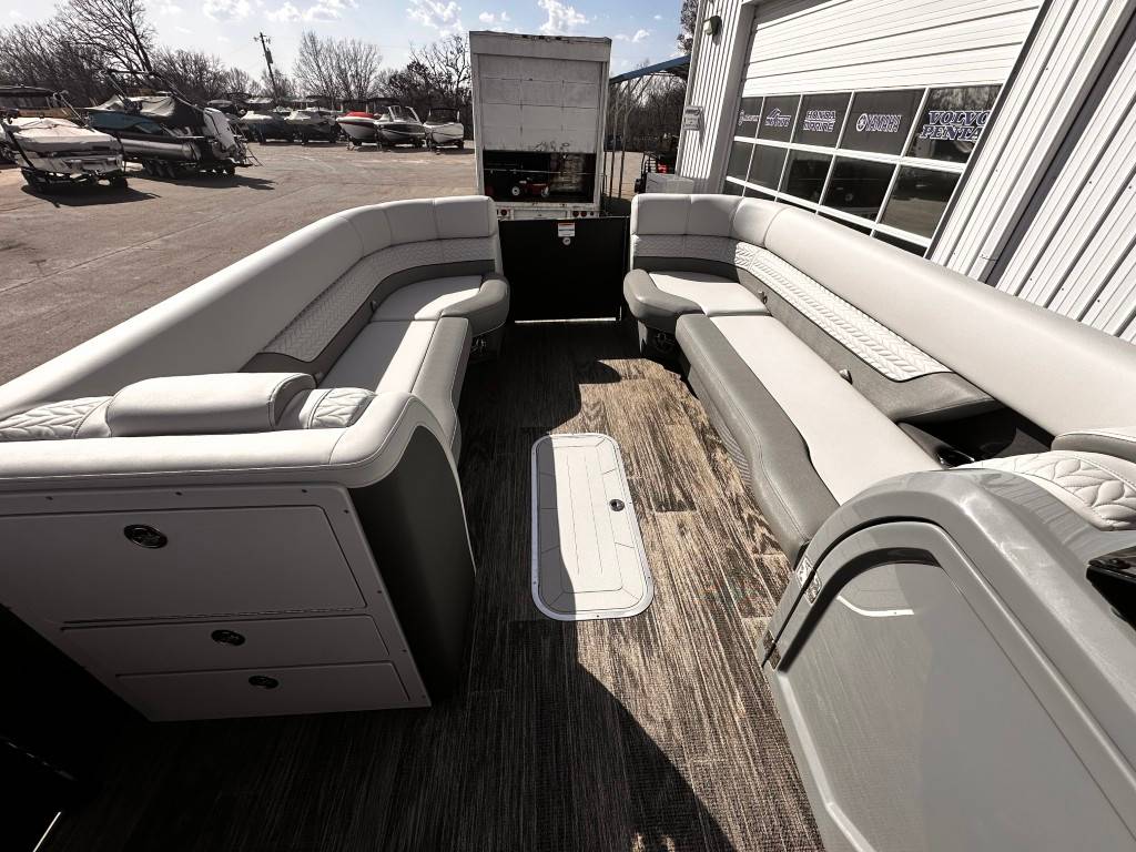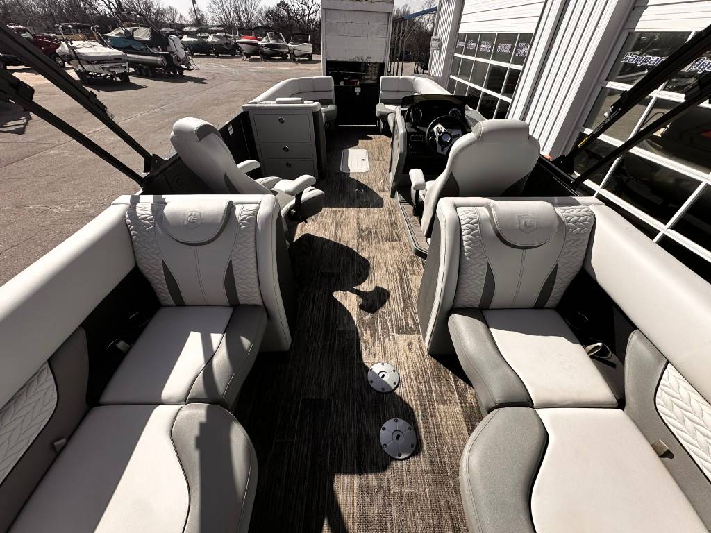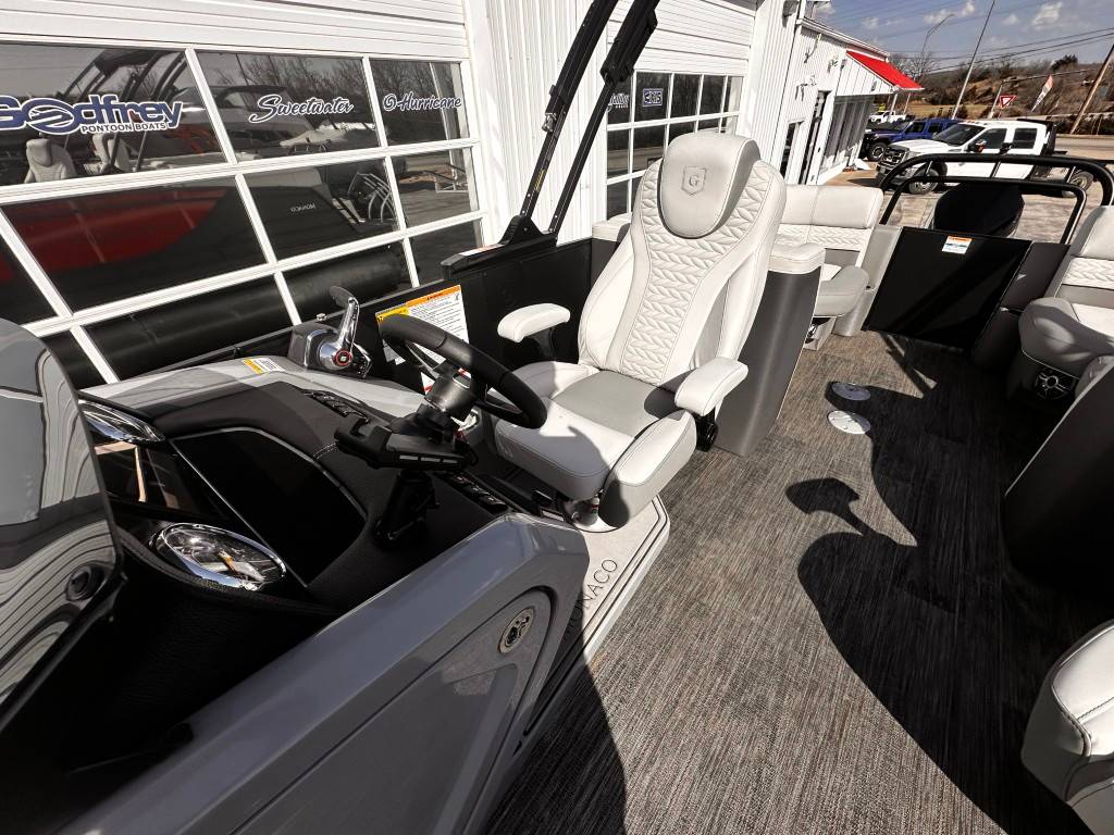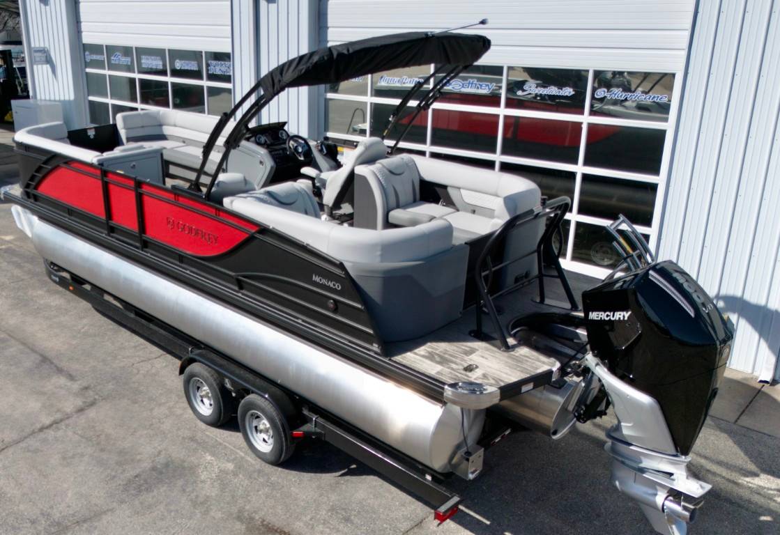 Introducing the 2025 Godfrey Monaco 255 Split Bench: Luxury and Performance Combined Embark on an unforgettable journey each time you set sail with the 2025 Godfrey Monaco 255 Split Bench . This luxury model is powered by a top-of-the-line Mercury 300 hp motor, delivering unparalleled power and efficiency. Whether you're cruising along the shoreline or exploring new Lakes, this boat guarantees a smooth, enjoyable ride with exceptional control and stability. Powered by a Mercury Verado 300 XL. Superior on-water Experience with the Godfrey Impact Plus Tritoon Package To take your boating adventure to the next level, the 2025 Godfrey Monaco 255 Split Bench comes equipped with the remarkable Godfrey Impact Plus Tritoon Package . This package showcases an array of enhancements meticulously designed to boost both performance and comfort. The Tritoon design sets a new standard in on-water stabilization and maneuverability, offering an ideal solution for those seeking enhanced safety and control during their maritime adventures. Capture the Essence of Luxury Boating With the 2025 Godfrey Monaco 255 Split Bench , you capture the essence of luxury sailing. It's not only a boat, but an expression of elegance and performance, crafted for those who seek to enjoy the finer things in life. Experience sailing on your terms - with top-notch safety, complete control, and outstanding comfort. Make every trip a memory to treasure with the unmatched sophistication and power of the Godfrey Monaco 255 Split Bench.