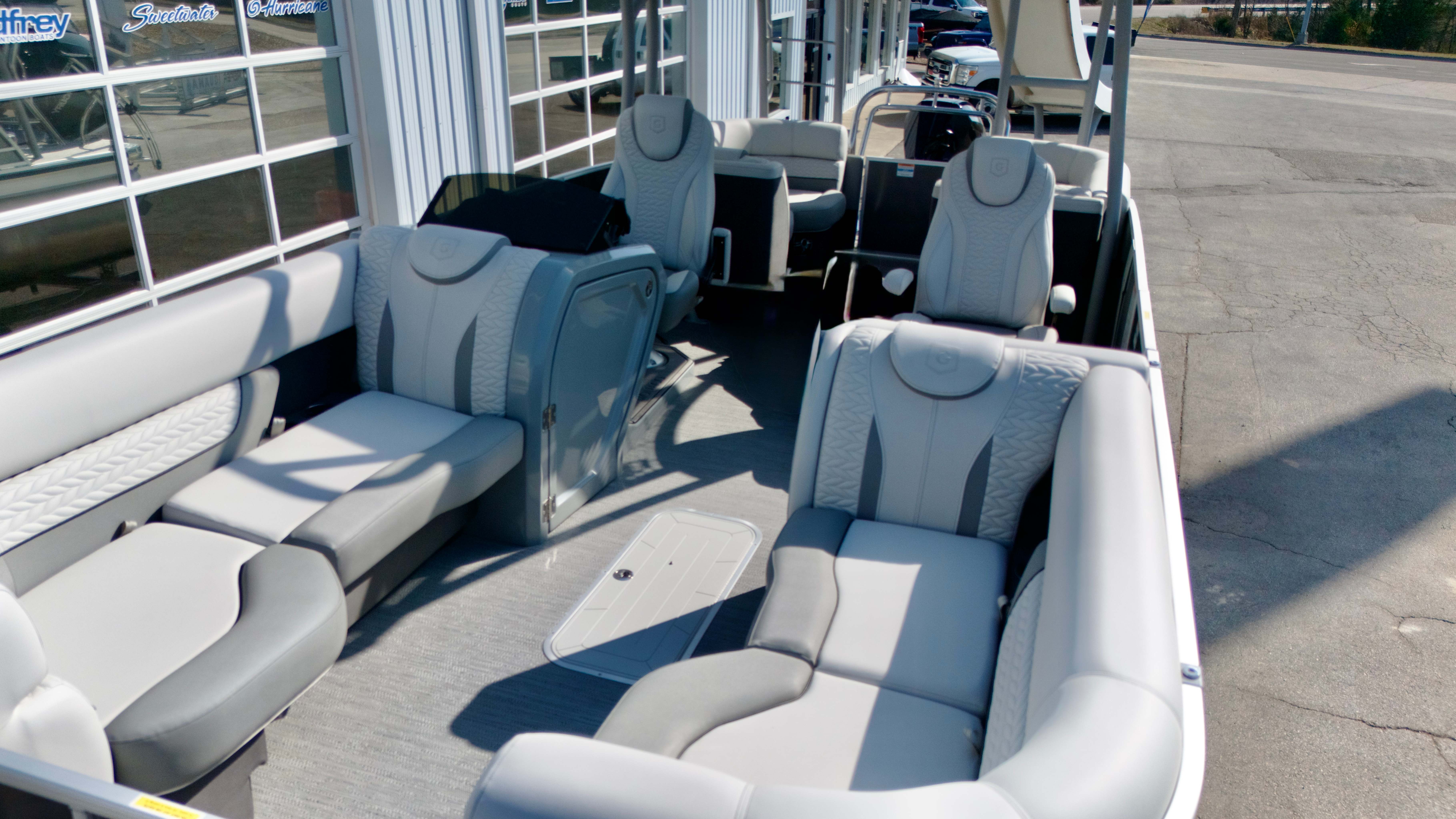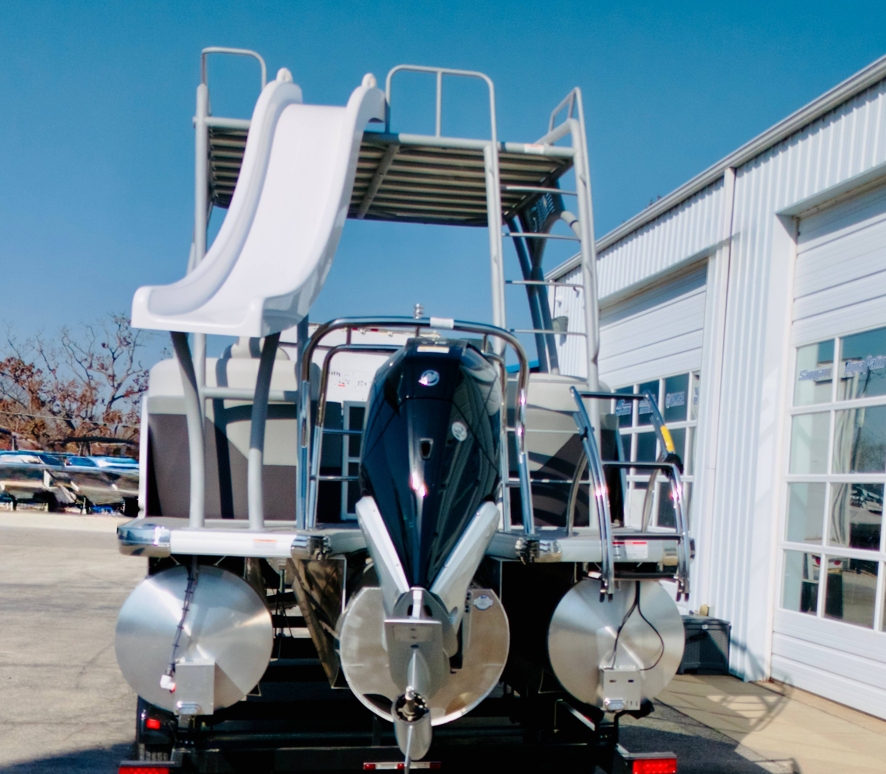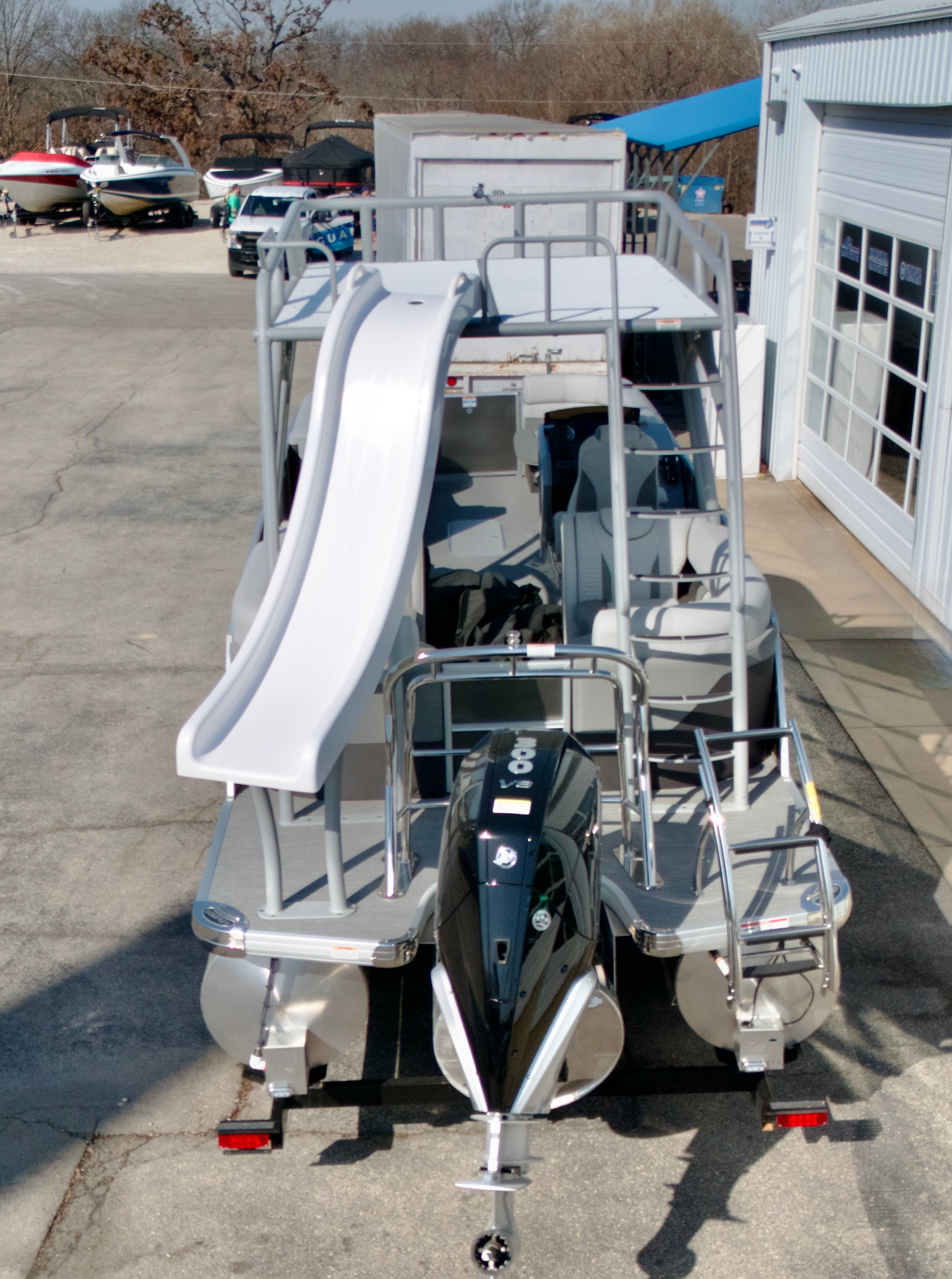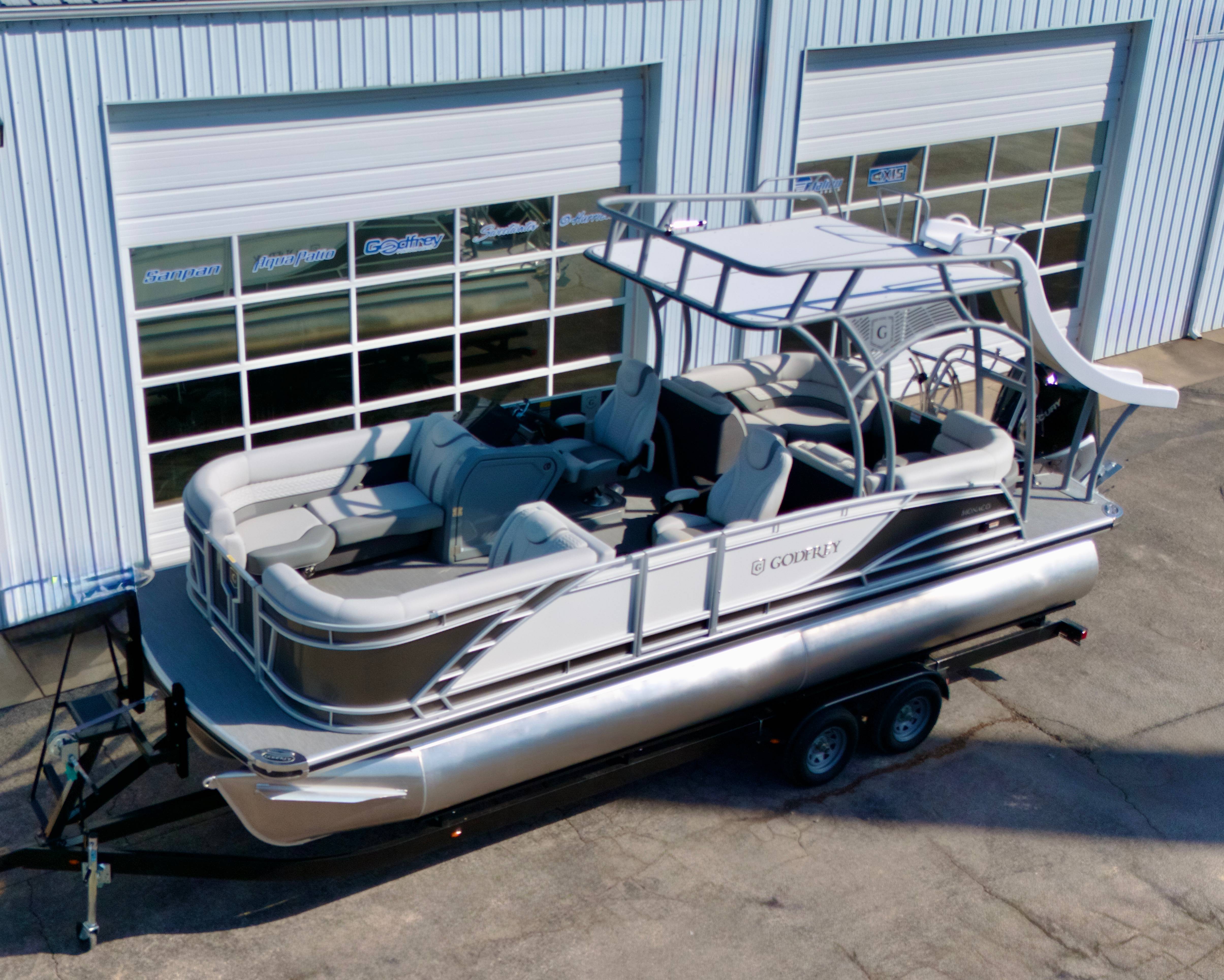 2025 Godfrey Monaco 255 SD - Slide Boat with Hard Top Boat enthusiasts will appreciate the exceptional performance and exquisite style of the 2025 Godfrey Monaco 255 SD . This full-sized pontoon boat prominently features a robust hard top , offering a perfect blend of comfort, protection, and style. Outstanding Power and Performance iMpact Plus Tritoon package is included in the boat, boasting a 29-inch center tritoon that provides the perfect balance of buoyancy and stability. The boat is powered by a top-of-the-line Mercury 300 HP Verado Outboard engine, offering an unyielding performance and power for cruising on the waters with ease. Assurance of Quality and Durability To guarantee your peace of mind, the boat comes with a Lifetime warranty deck-down guaranteeing high durability and long-lasting use. Additionally, it also provides a generous 10-year warranty from bow to stern , ensuring all-around protection and preserving your investment for the years to come. The 2025 Godfrey Monaco 255 SD is more than just a boating vessel, it's a statement of elegance and functionality that stands apart in the world of marine recreation. Experience the exceptional performance and luxurious style that the Godfrey Monaco 255 SD has to offer today. This Godfrey Tritoon is available for sale at our Lake of the Ozarks location. We also have locations in St. Louis MO, Oklahoma on Grand Lake, and Lake Texoma in TX. Our skilled team is ready and willing to assist with any of your boating needs. Sales and service at all locations.