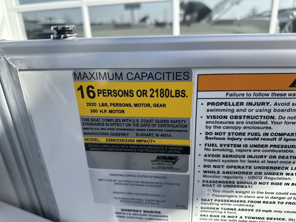 2025 Godfrey Sweetwater 2286 SB 27" iMPACT Center Tube Package