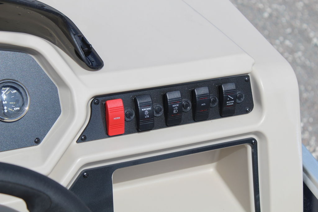 Steering the Course- The Xperience's helm is equipped with perfectly placed controls and an optional wireless phone charger mount to create a difference you can see and feel.