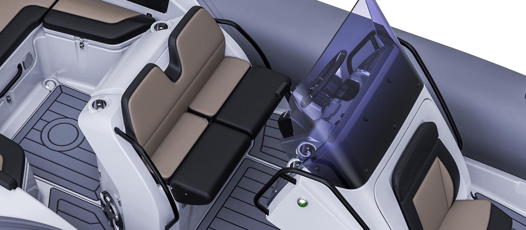 - Fiberglass T-top with integrated speakers