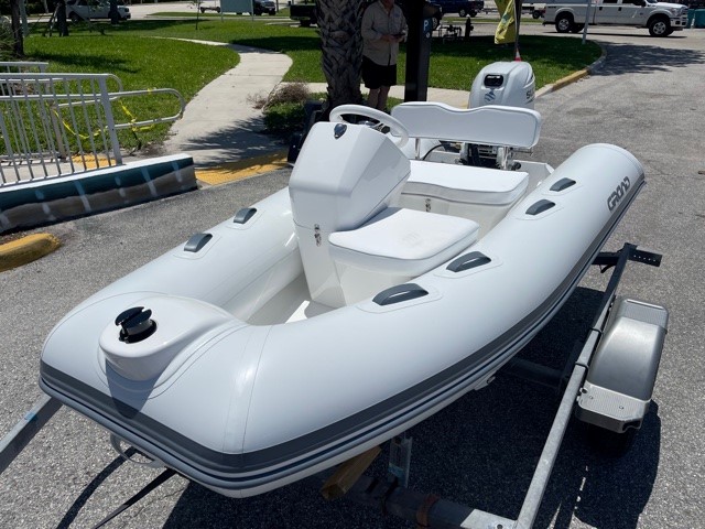 We order and stock the boat with a white hull, white tubes, grey rubrail and accents, fiberglass step ends, hypalon tubes, fiberglass bow step with clam bollard.