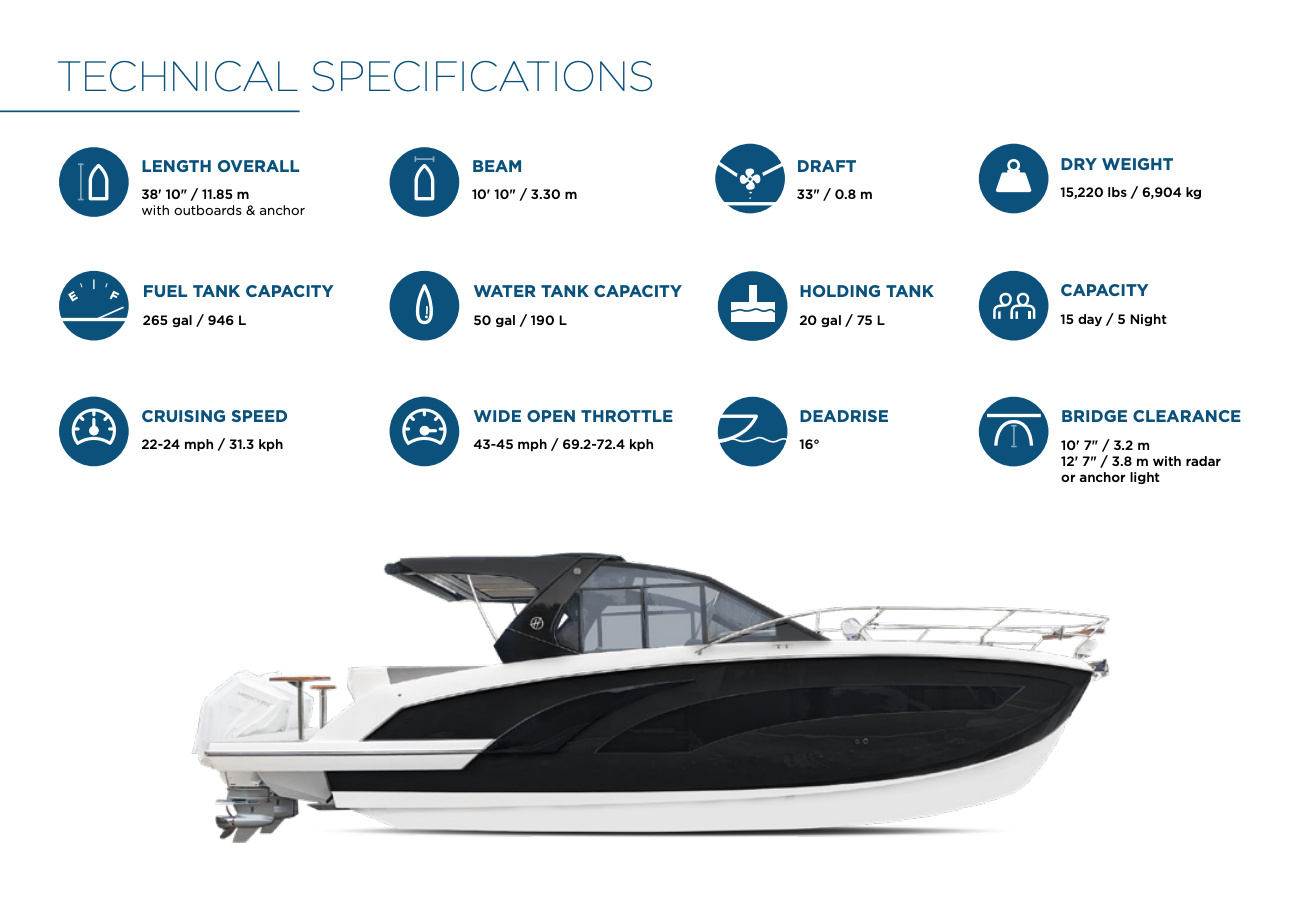 PROPULSION: Twin Mercury® 400HP V10 Outboards w/ Joystick Piloting