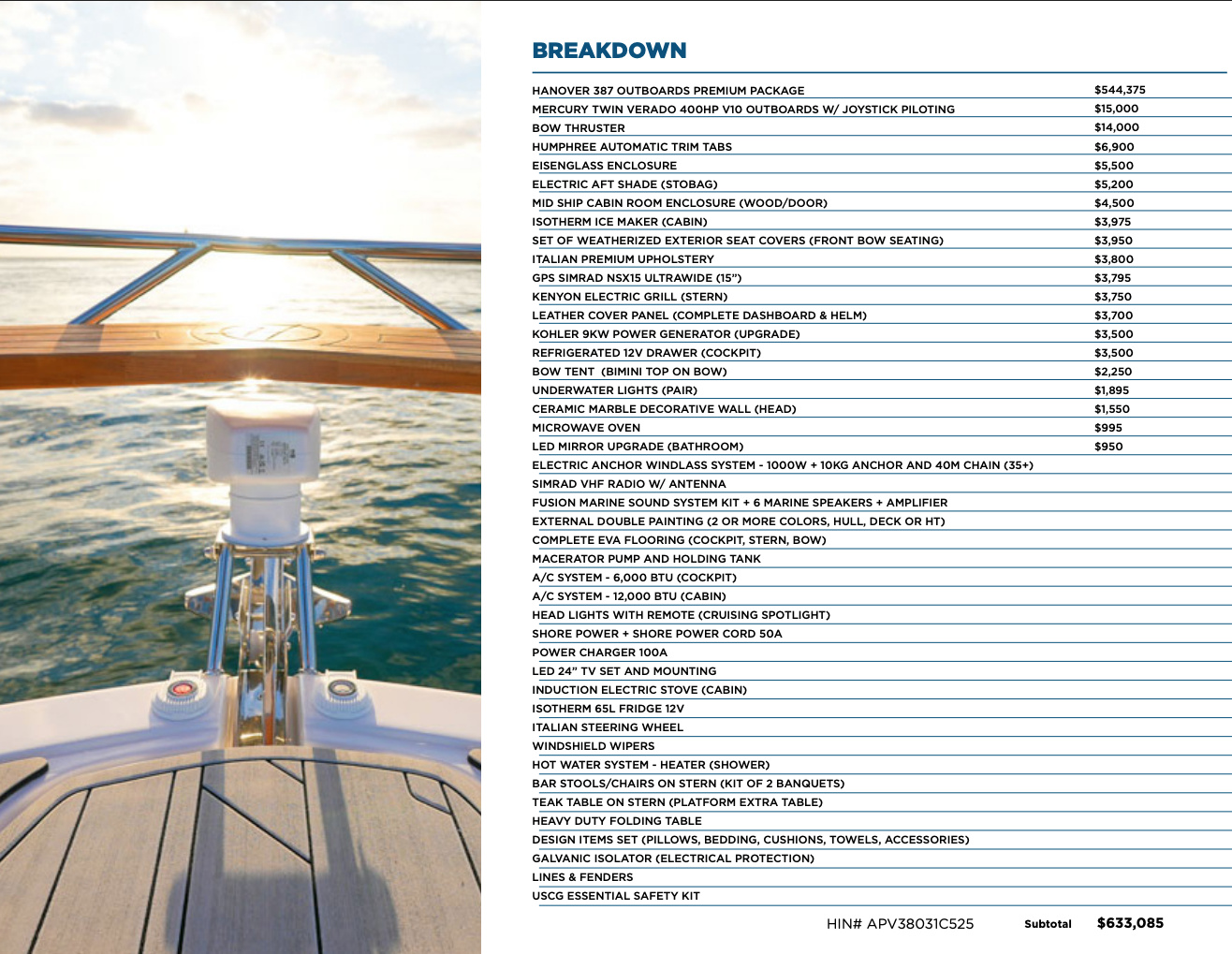 Engine DetailTwin Mercury® 400HP V10 Outboards w/ Joystick Piloting