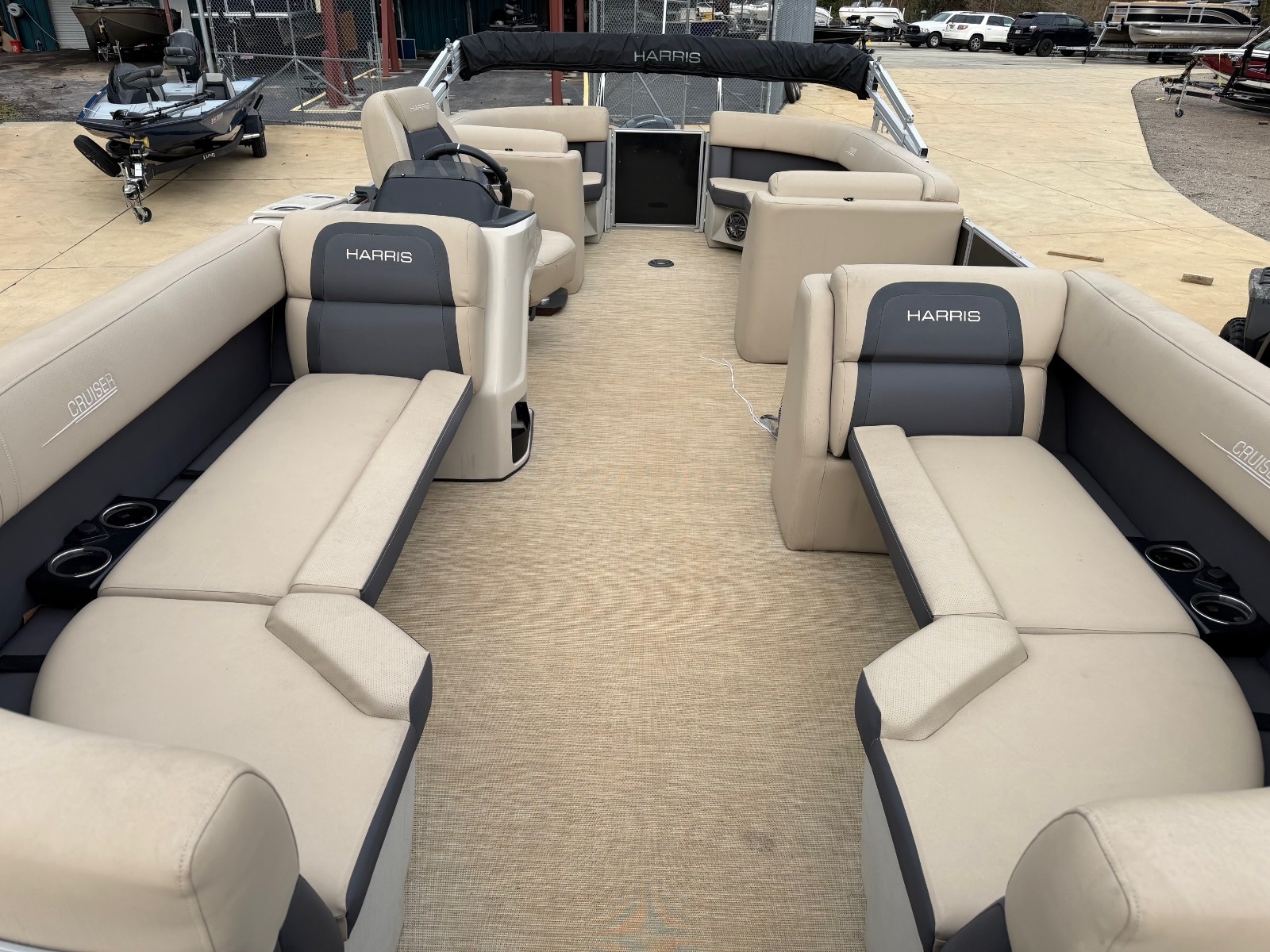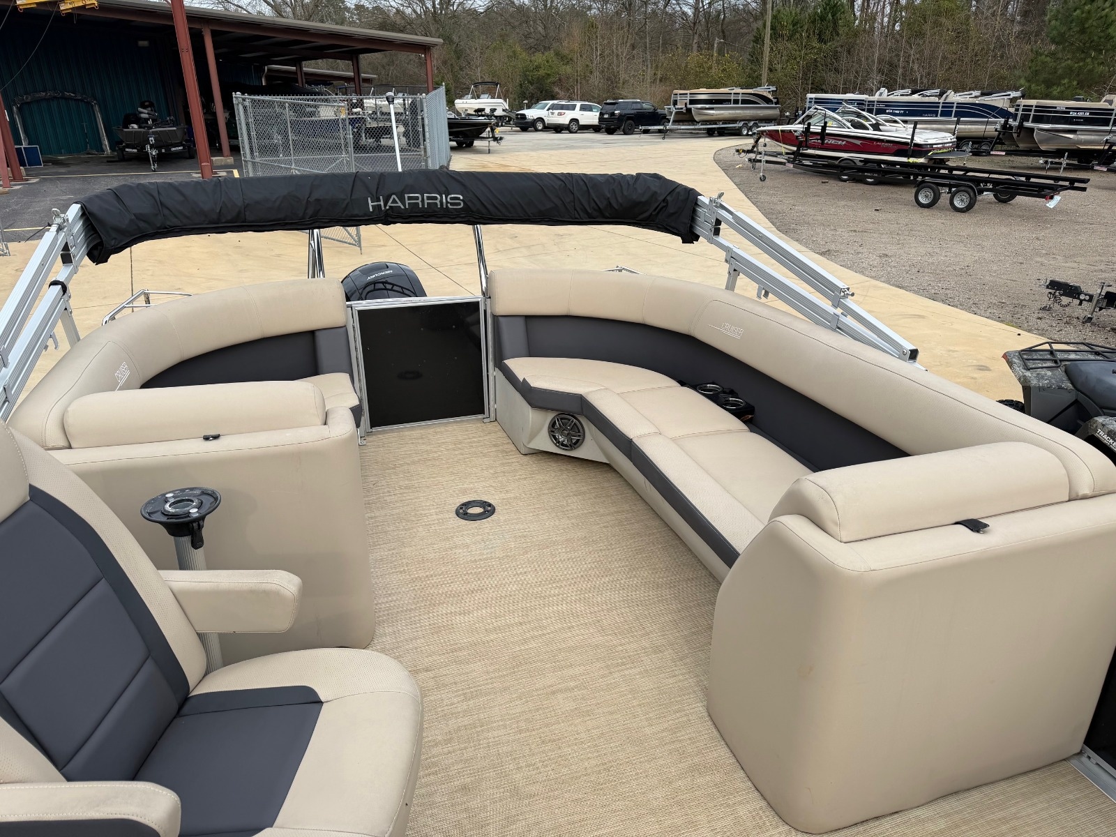 Now Available! This 2025 Harris 230 Cruiser is powered by a Mercury 150HP outboard motor that has been fully serviced and is Boateka Certified! Boat comes with several upgrades including the removeable table and full mooring cover. Trailer can be purchased for an additional cost.