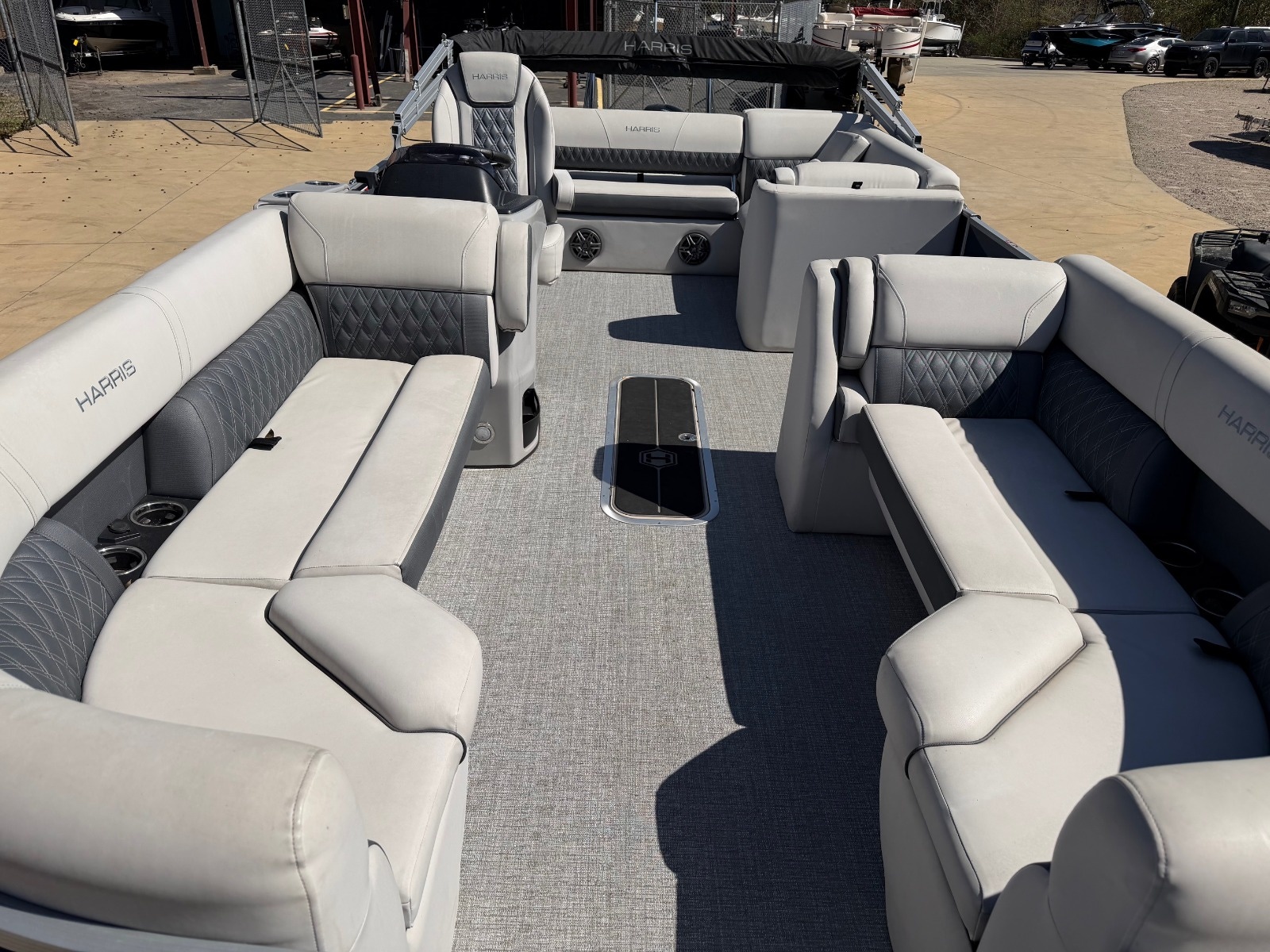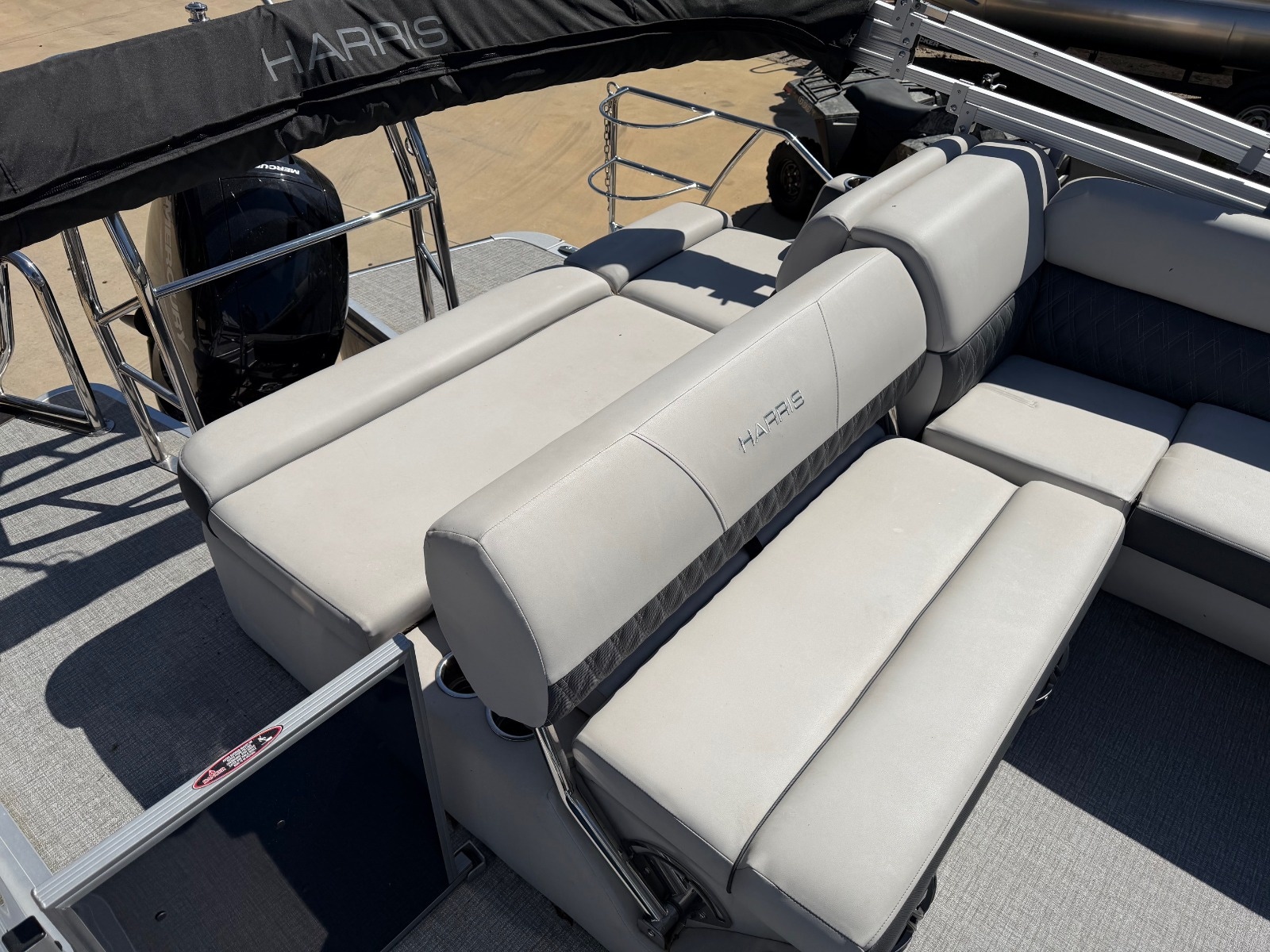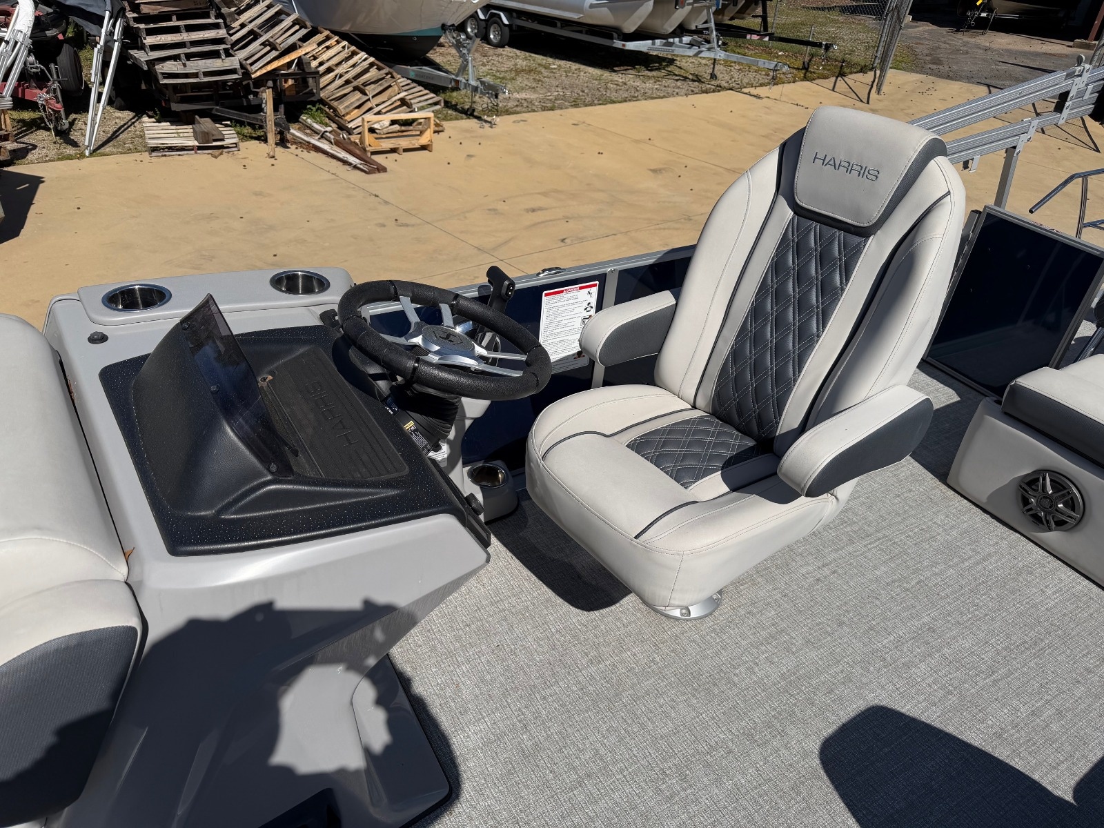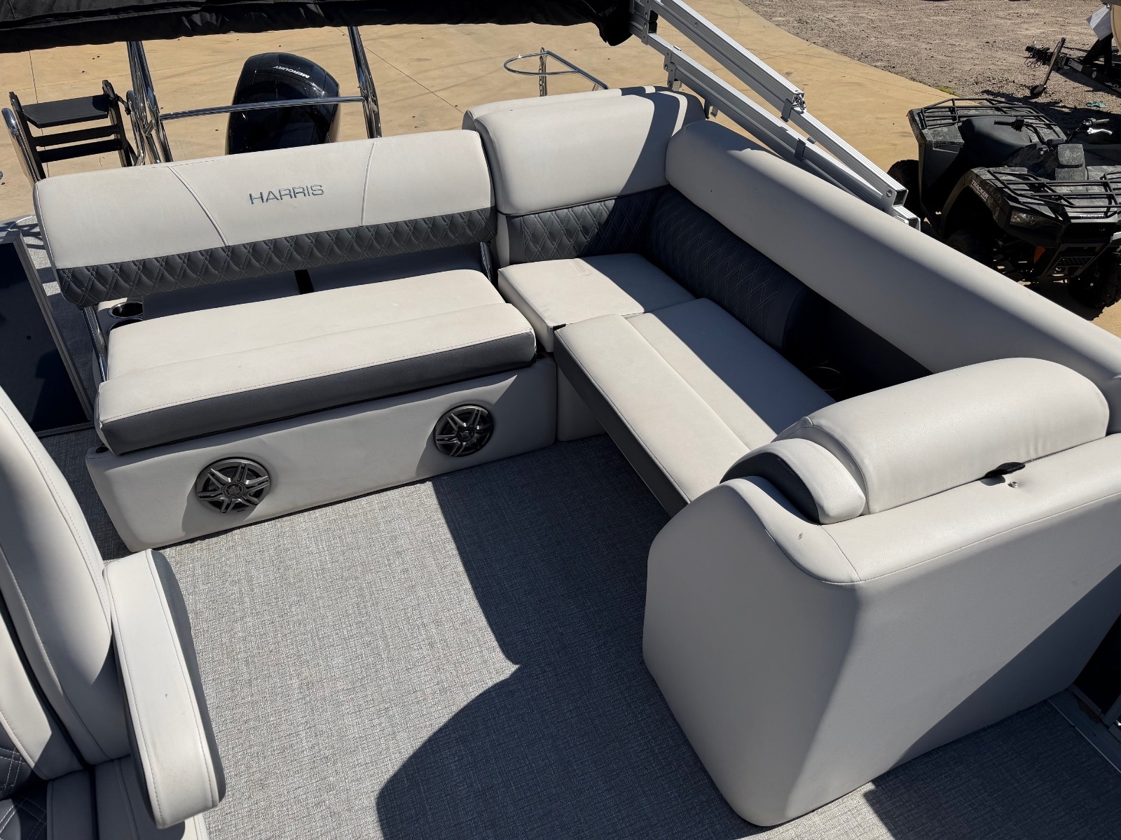 Now Available! The 2025 Harris 230 Sunliner is luxury on the water! The rear-lounge layout is perfect to catch a tan and relax! Pwered by a freshly serviced Mercury 150HP motor. Trailer not included but can be purchased for an additional cost.