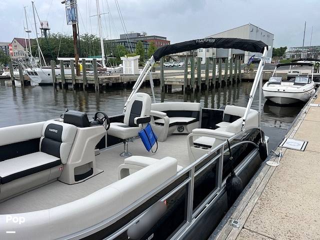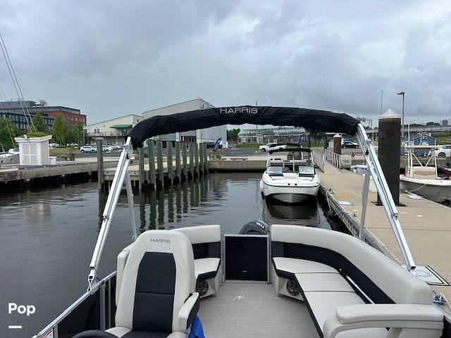 Gently used Harris pontoon with the Mercury 115 outboard 4-stroke engine.