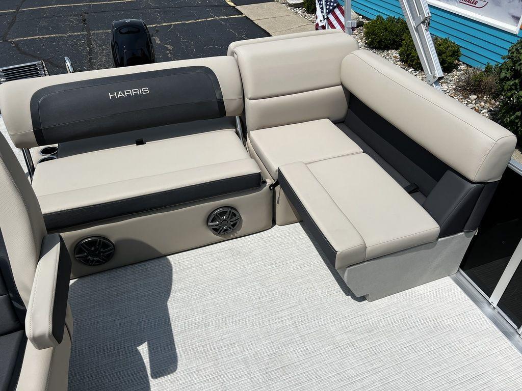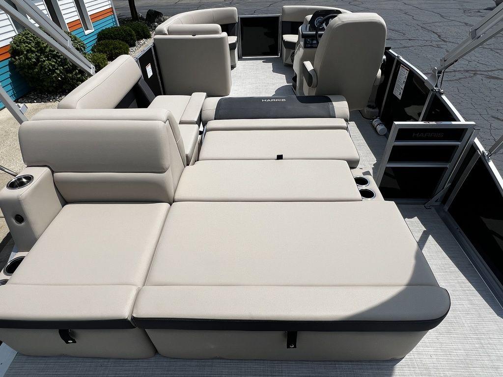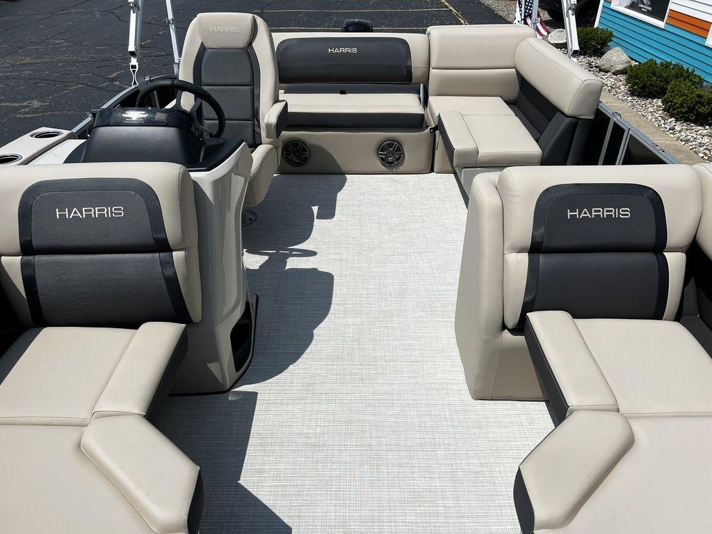 MSRP: $44,264BLOWOUT: $30,000This Cruiser is a versatile pontoon boat designed for leisure and family outings. Typically featuring a spacious deck with comfortable seating, sleek and stylish designs, and various amenities for relaxation and enjoyment on the water. Notable Options Include:MERCURY 40HP ELPT CT 4S EFI225 CHASISXTREME/TILT STEERINGBIMINI TOPSS 4-STEP TELESCOPING LADDERBEACHWALK SEAGRASS FLOORINGCLARION STERO (4 SPEAKERS)DOCKING LIGHTSWOODGRAIN TABLEAMERICAN FLAG Harris is the unrivaled pioneer in pontoon boat excellence, setting the gold standard in both construction and opulent finishes. From the timeless Cruiser to the luxurious Crowne, every Harris model exemplifies the same impeccable craftsmanship and features of supreme quality. While other competitors may compromise, Harris remains steadfast in their commitment to unparalleled quality and distinction. Harris stands firmly behind their craftsmanship and they offer an incredible 10-year bow-to-stern warranty on all their models. Harris pontoons are engineered for longevity and designed for distinction, assuring you of the utmost peace of mind. With an illustrious heritage spanning over 65 years, Harris continues to redefine the art of pontoon refinement and elevate the standard of comfort. Experience the legacy of luxury with Harris – where the journey is as exceptional as the destination. Gull Lake Marine is your trusted Harris dealer with over 100-years of experience. Every boat purchase includes: Free delivery within 60 miles, an on-water orientation by our trained Delivery Captain and guaranteed service after the sale. Contact our Sales Department today at sales@GullLakeMarine.com or 269.256.1751
