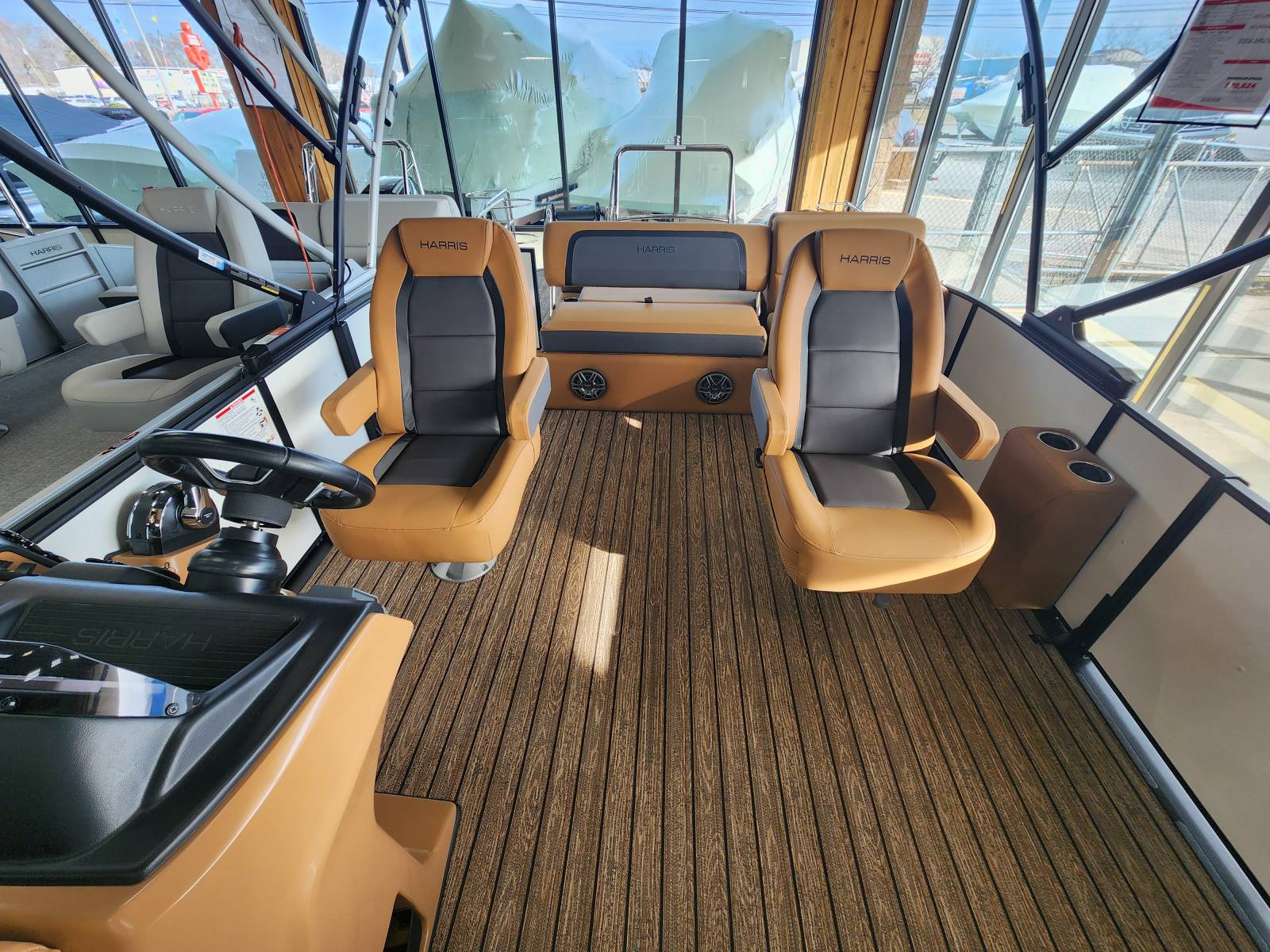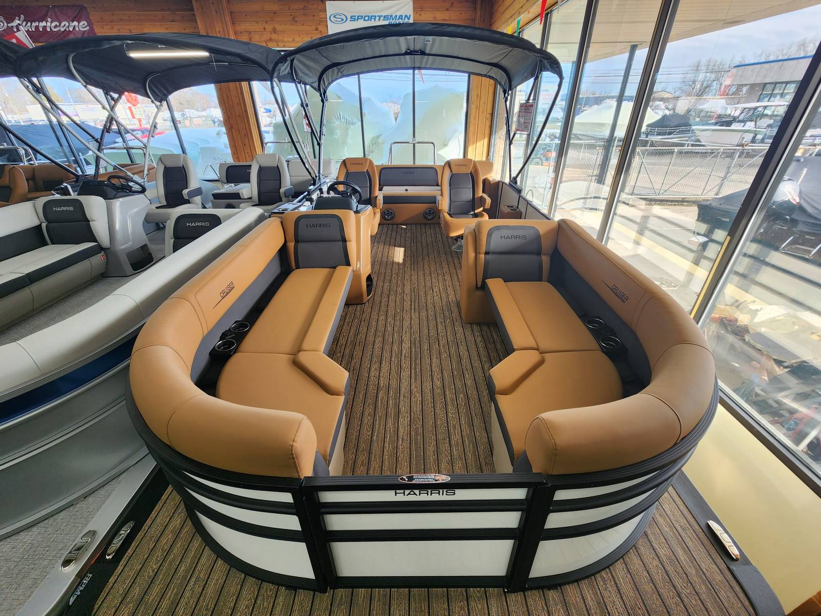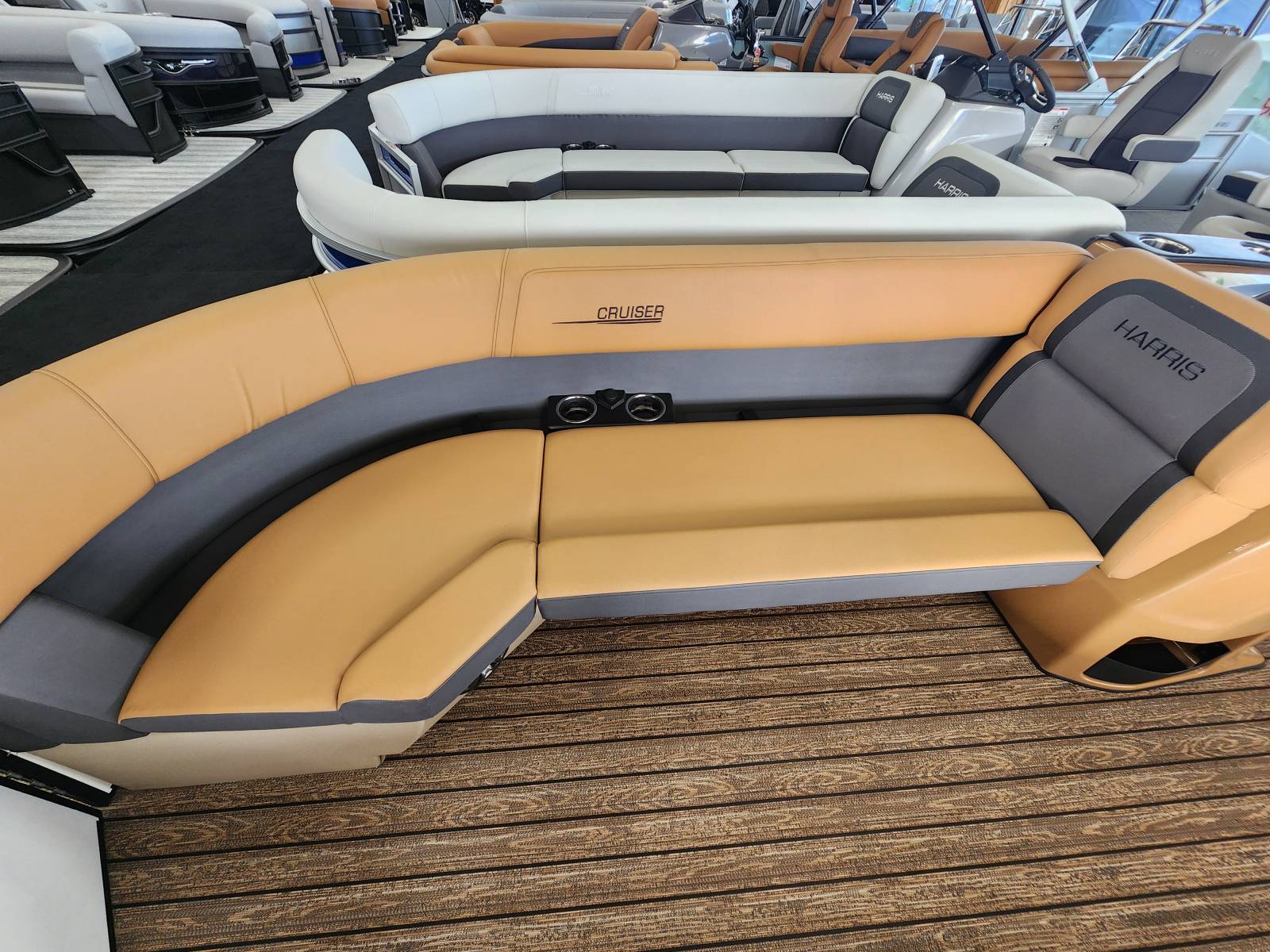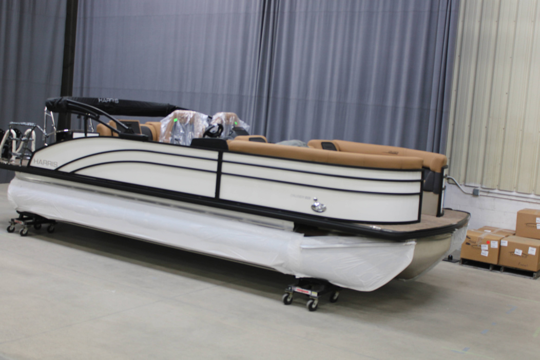 2025 Harris 230 Cruiser with SLDH and powered by a Mercury 200L!Factory Installed Options:Exterior- ceramic brownInterior- chestnut brownBlack edition325 chassisTube protectantContour power top 10'Tech package 1Interior lighting packageLillipad easy step ladderSki tow bar stainless steelLux high back helm seatsChestnut teak flooringWireless mobile phone chargerNSX7Stereo upgrade package 1Fence mounted docking lightsSafety railForward shadeLuxury sport woodgrain table