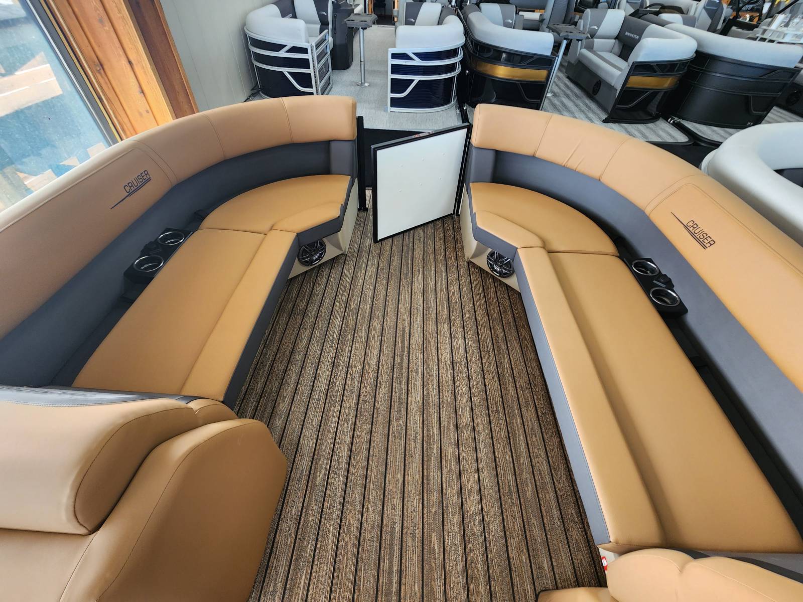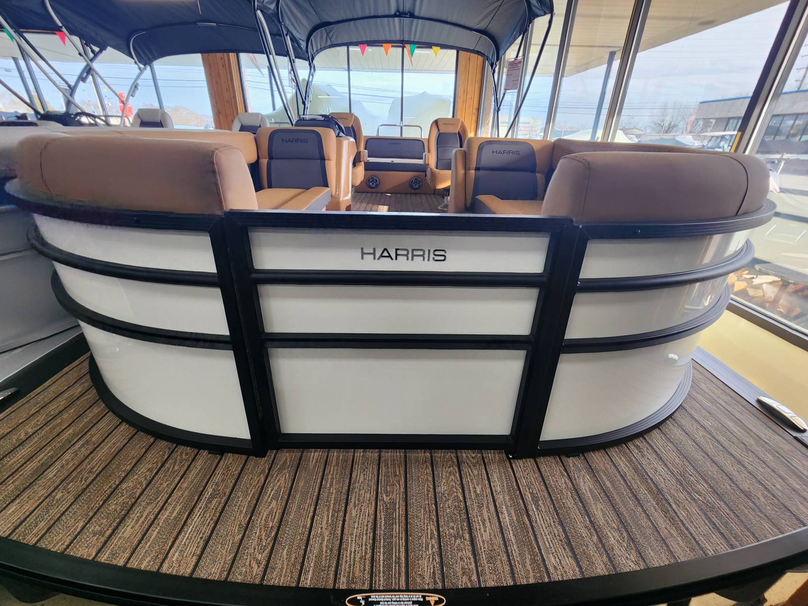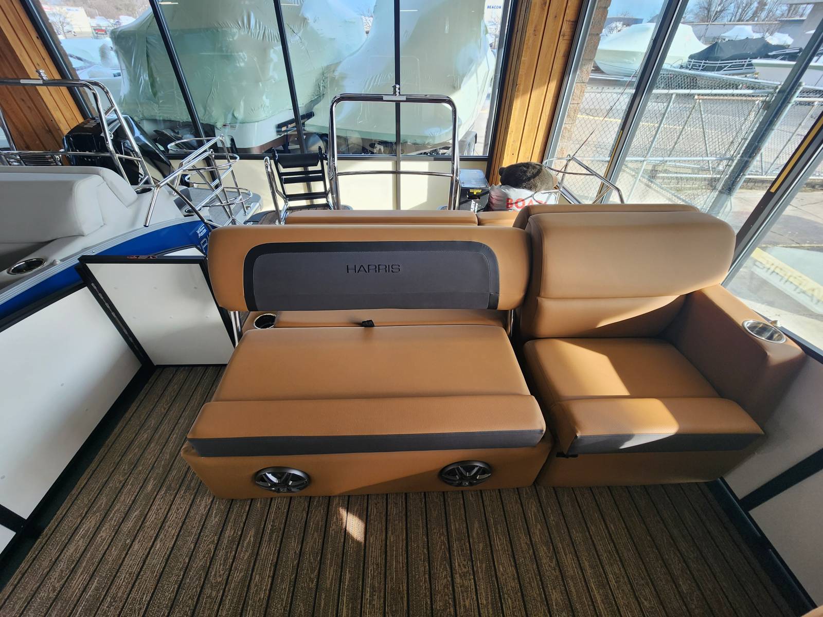 2025 Harris 230 Cruiser with SLDH and powered by a Mercury 200L!Factory Installed Options:Exterior- ceramic brownInterior- chestnut brownBlack edition325 chassisTube protectantContour power top 10'Tech package 1Interior lighting packageLillipad easy step ladderSki tow bar stainless steelLux high back helm seatsChestnut teak flooringWireless mobile phone chargerNSX7Stereo upgrade package 1Fence mounted docking lightsSafety railForward shadeLuxury sport woodgrain table