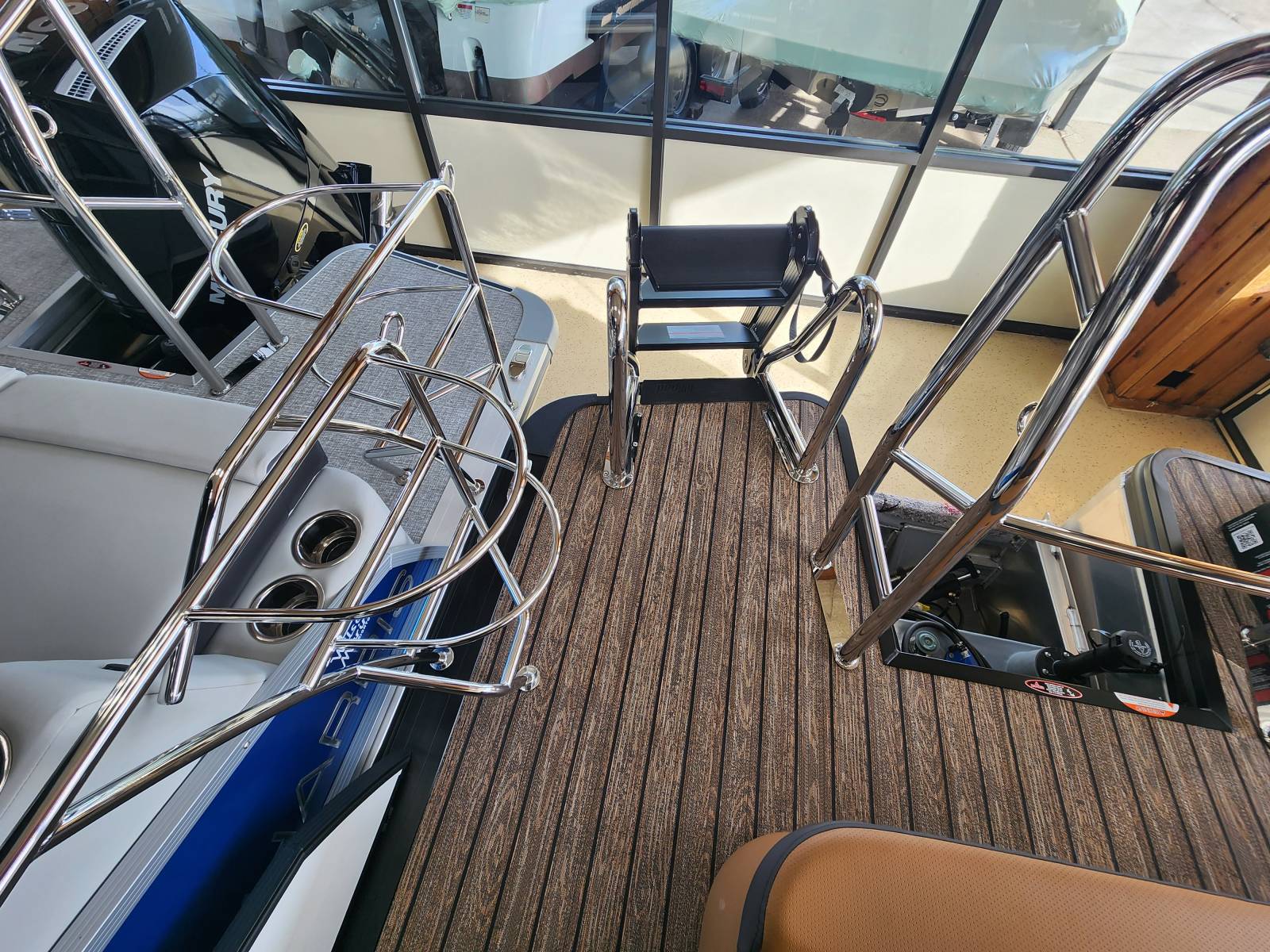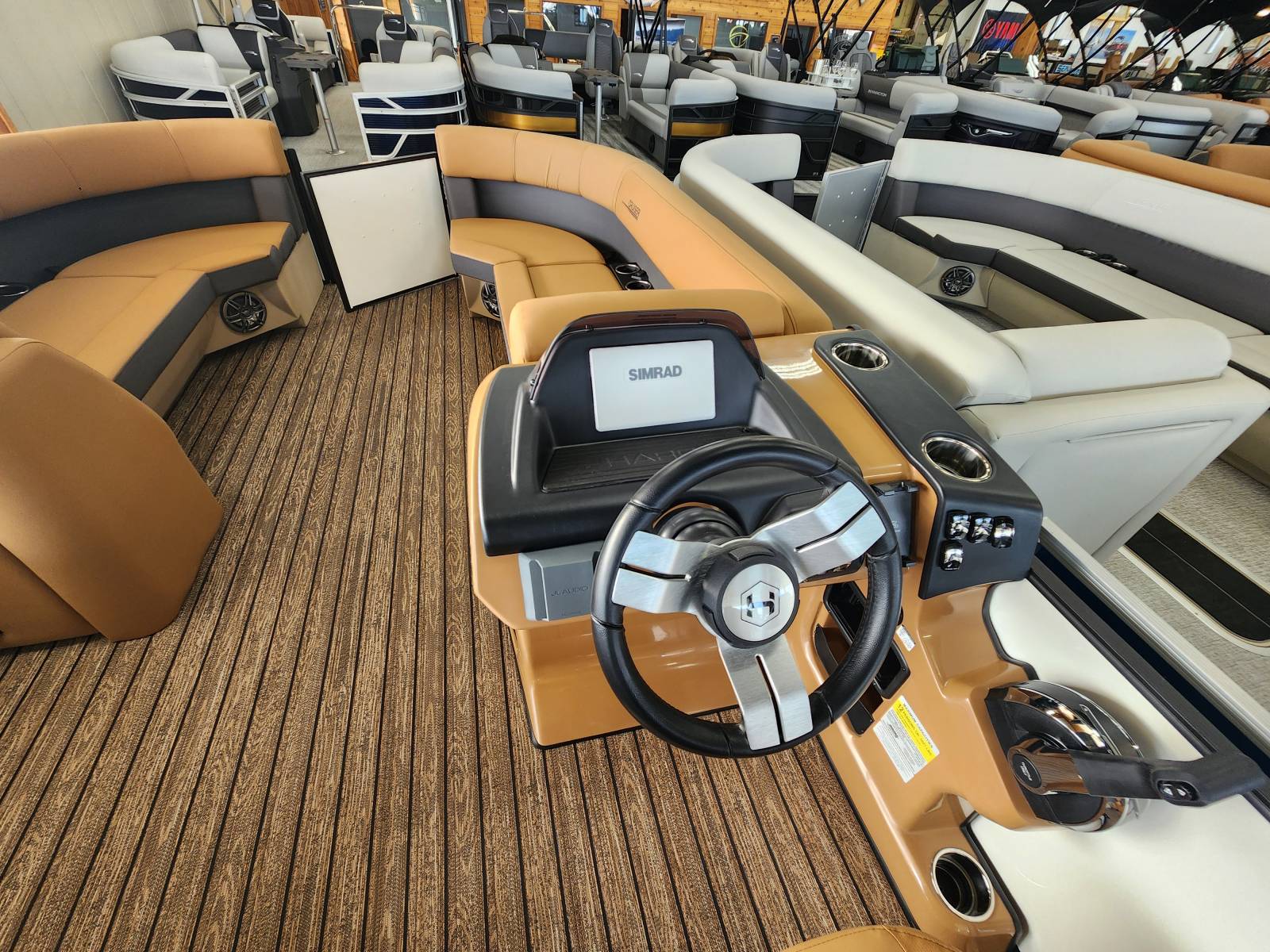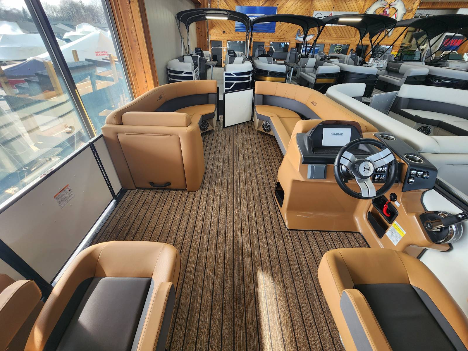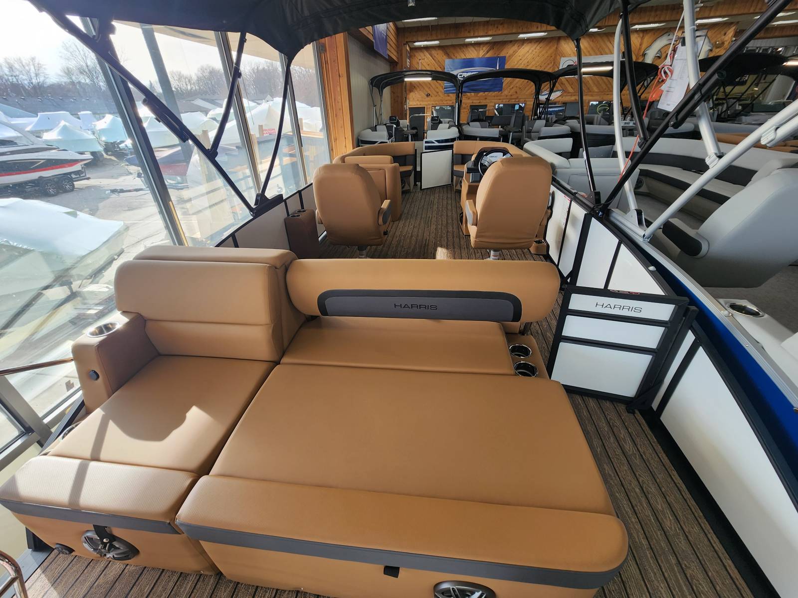 2025 Harris 230 Cruiser with SLDH and powered by a Mercury 200L!Factory Installed Options:Exterior- ceramic brownInterior- chestnut brownBlack edition325 chassisTube protectantContour power top 10'Tech package 1Interior lighting packageLillipad easy step ladderSki tow bar stainless steelLux high back helm seatsChestnut teak flooringWireless mobile phone chargerNSX7Stereo upgrade package 1Fence mounted docking lightsSafety railForward shadeLuxury sport woodgrain table