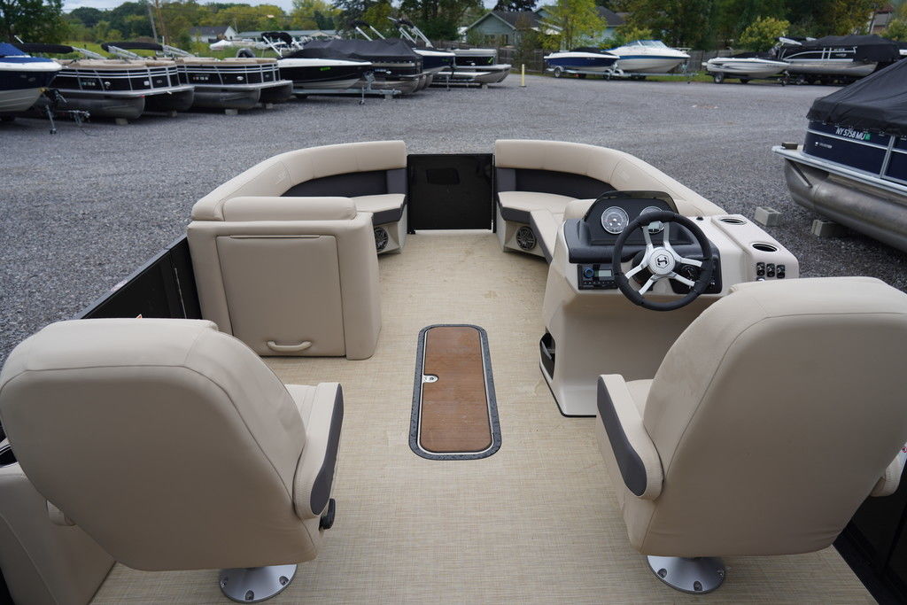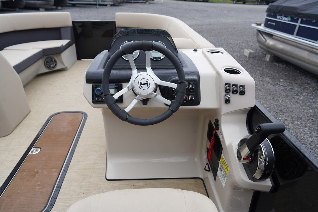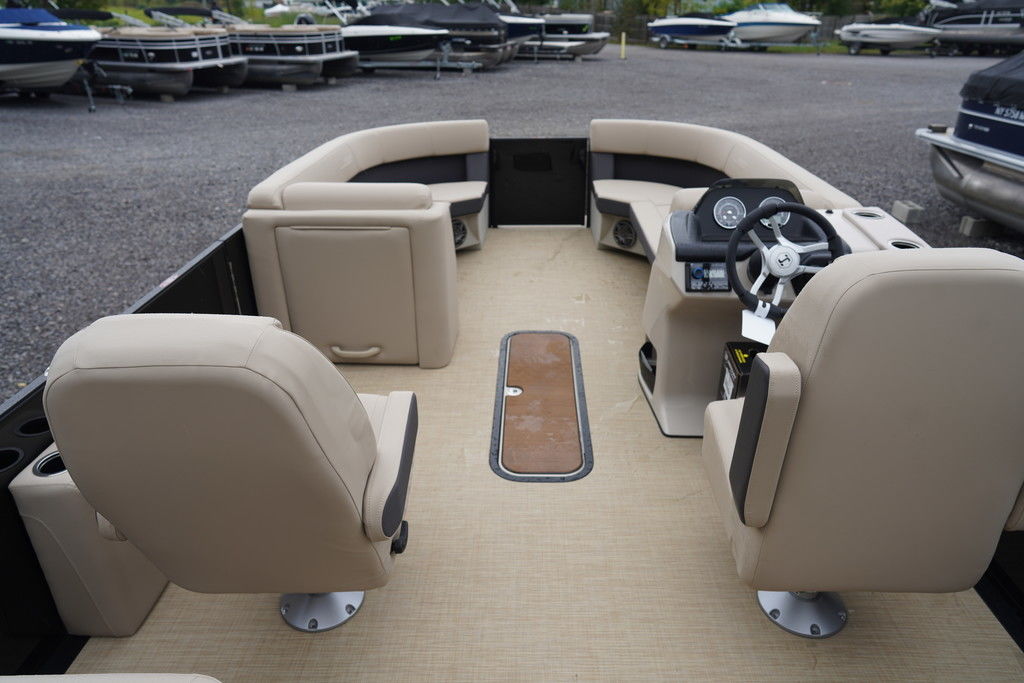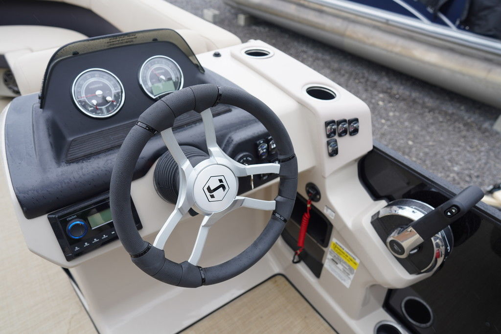 Take to the water on a craft built with value in mind that also includes more than you might expect, including a new 190 (19-foot) length, ultra-soft yet extremely durably vinyl upholstery, a reclining helm chair, and standard charging station. Personalizing your pontoon for watersports or fishing is simple—and optional performance packages give you better control on rough water.