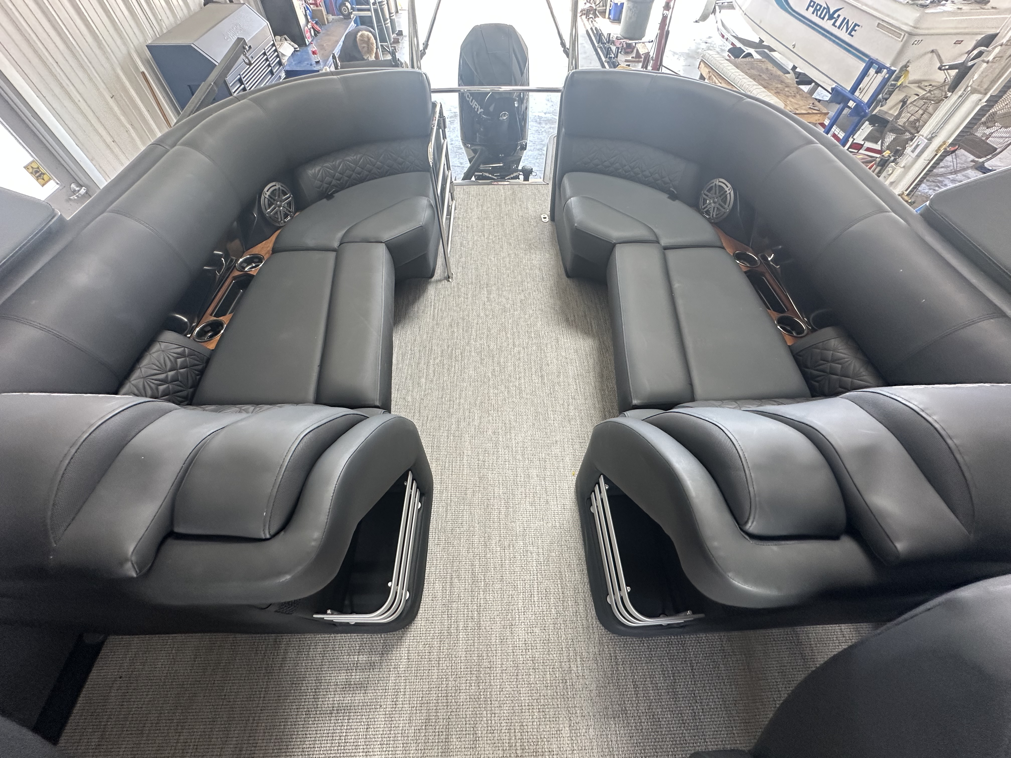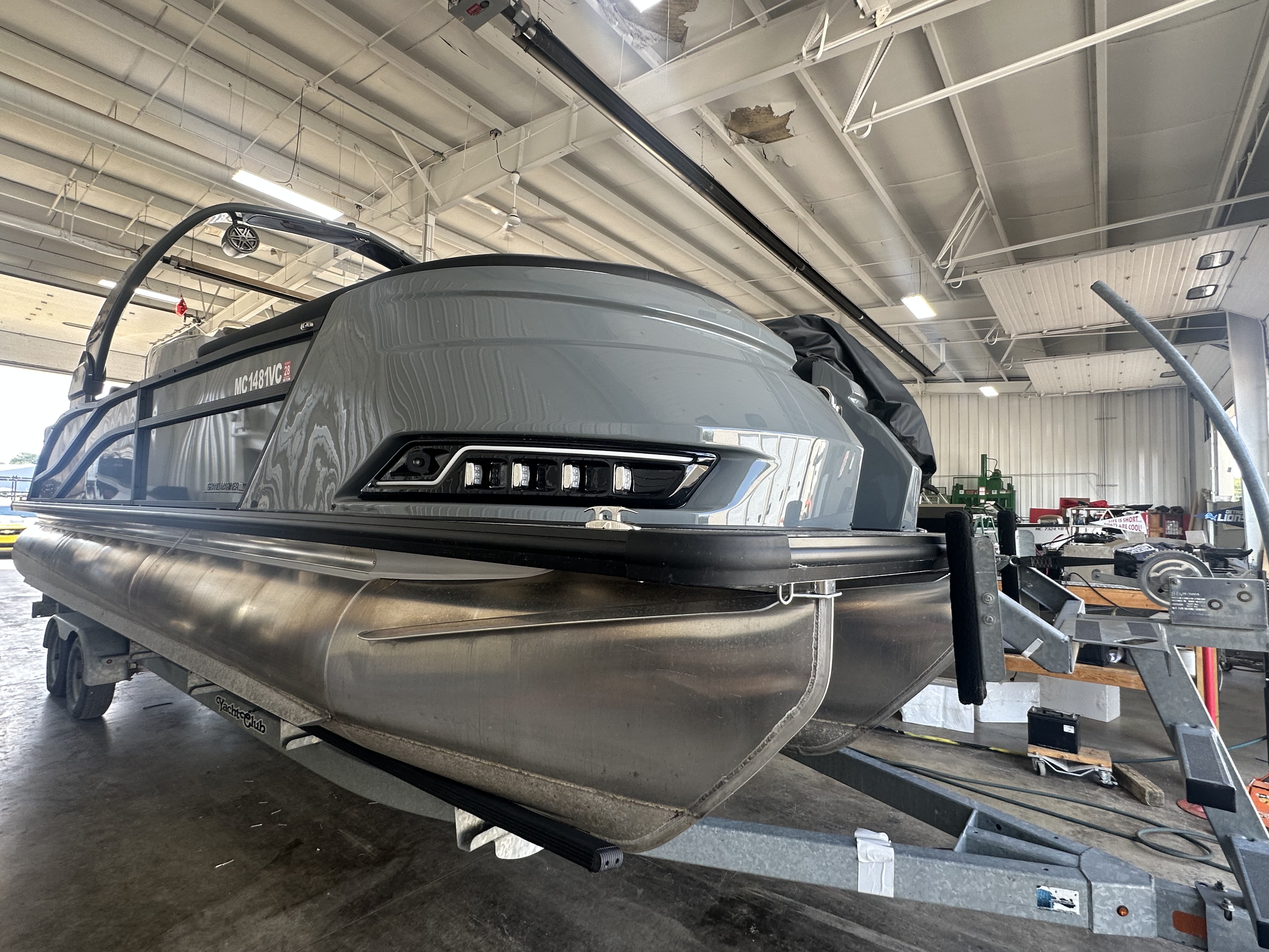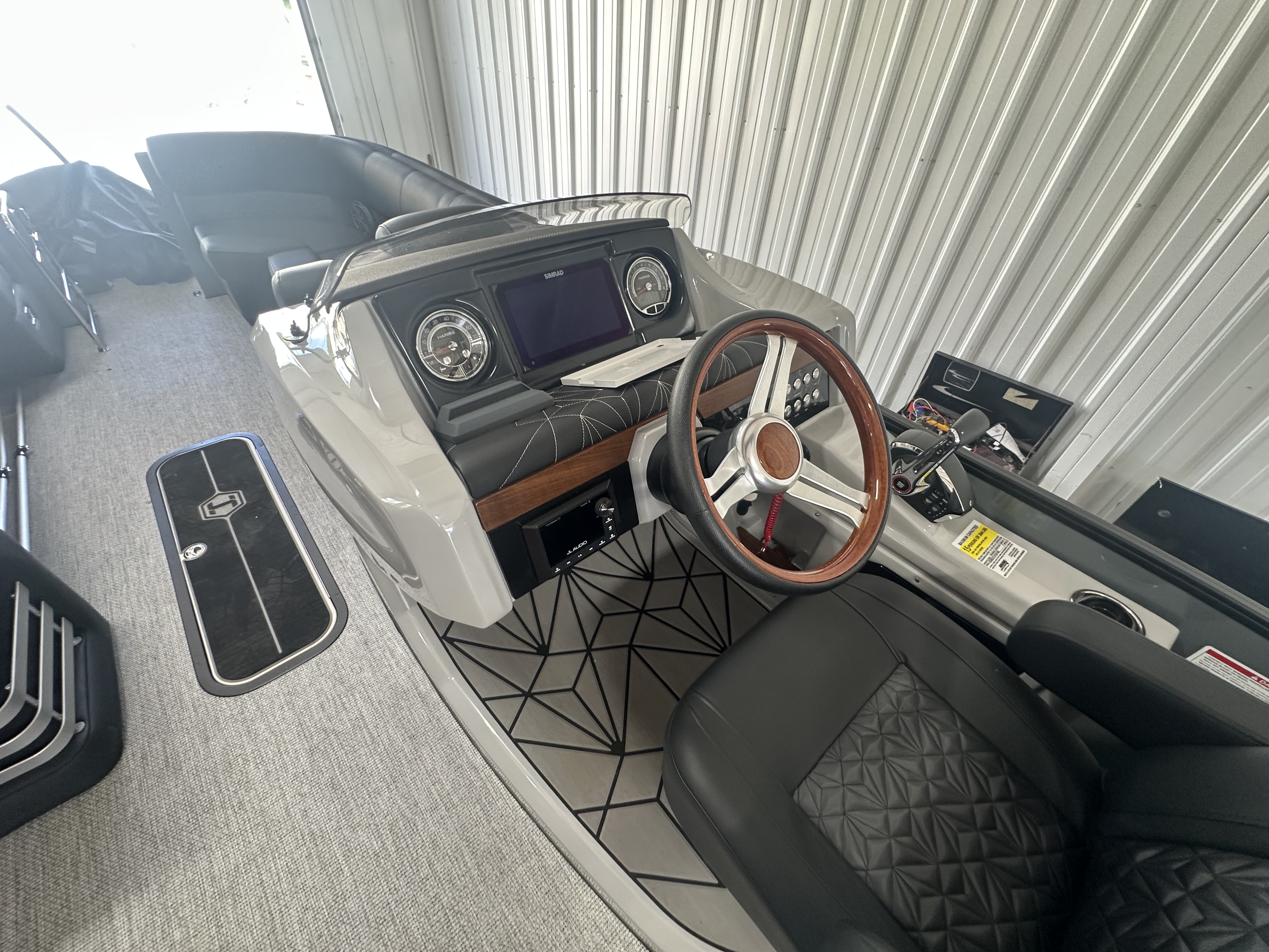 The boat is LOADED with factory options including 327 tri-toon package, ION Power Tower, Total Lighting Package, Stainless Steel Ski Tow Bar, Deluxe Tech Package 1, JL Diamond Sound System, Tower Can Speakers, Changing Room, 9" Simrad in-dash and much more!