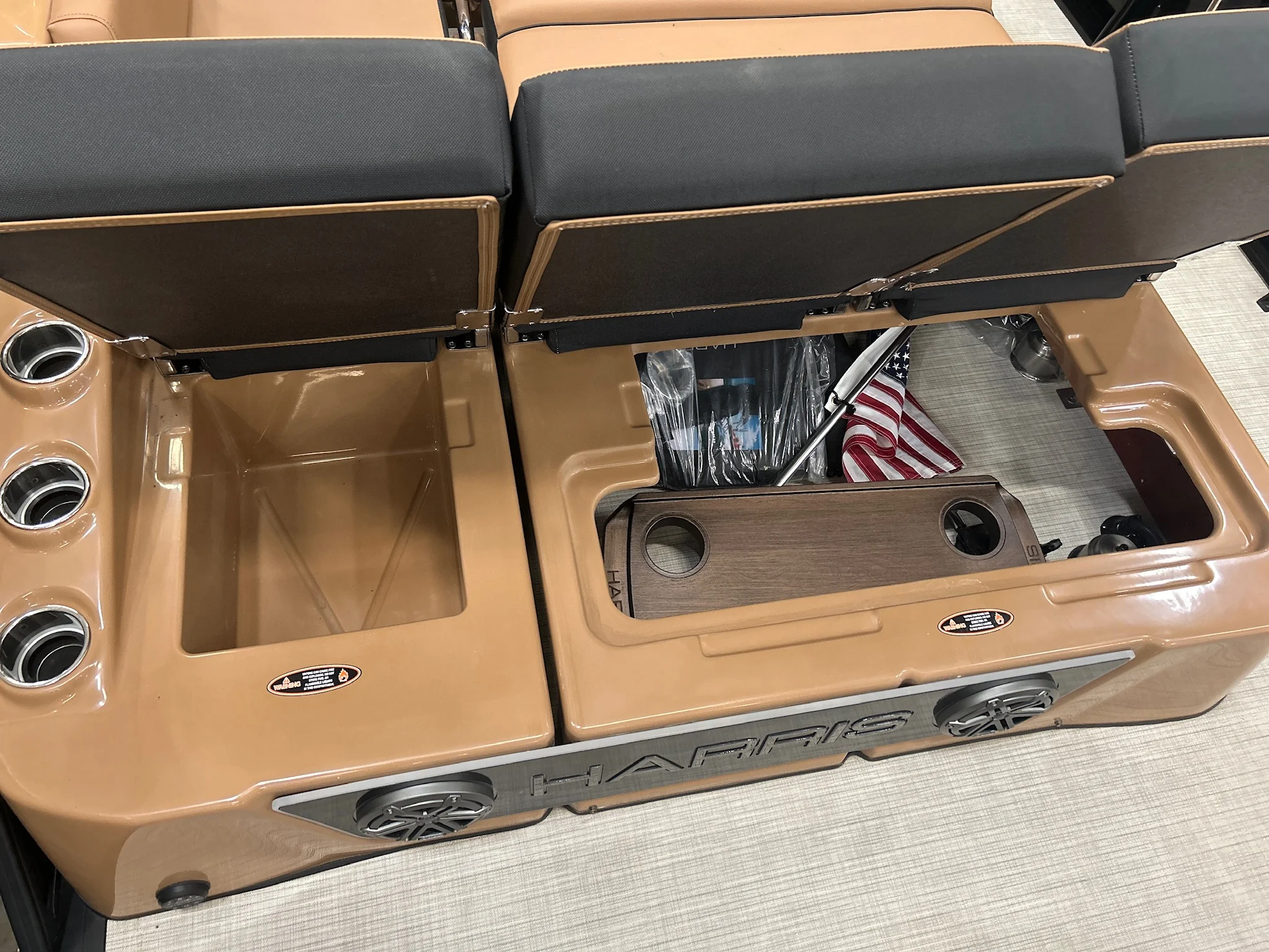 2025 Harris Grand Mariner 250 – Triple Tube | Mercury 400 Verado | 40 Hours More than $10,000 invested after delivery, including extended engine warranty coverage through year eight, premium ceramic coating applied to the interior and exterior with warranty protection, and custom protective wraps installed to enhance both durability and appearance. This 2025 Harris Grand Mariner 250 SLDH delivers flagship pontoon luxury paired with serious performance. Powered by a Mercury 400L Verado V10 and built on Harris’ triple-tube performance chassis, it offers exceptional speed, handling, and stability on the water. Finished in Black Sapphire with White Diamond accents and Black Edition powder-coated fencing, this boat features premium Cool Touch pillow-top upholstery in Chestnut Brown with Onyx accents and a spacious luxury layout designed for entertaining. Factory Options & Features
