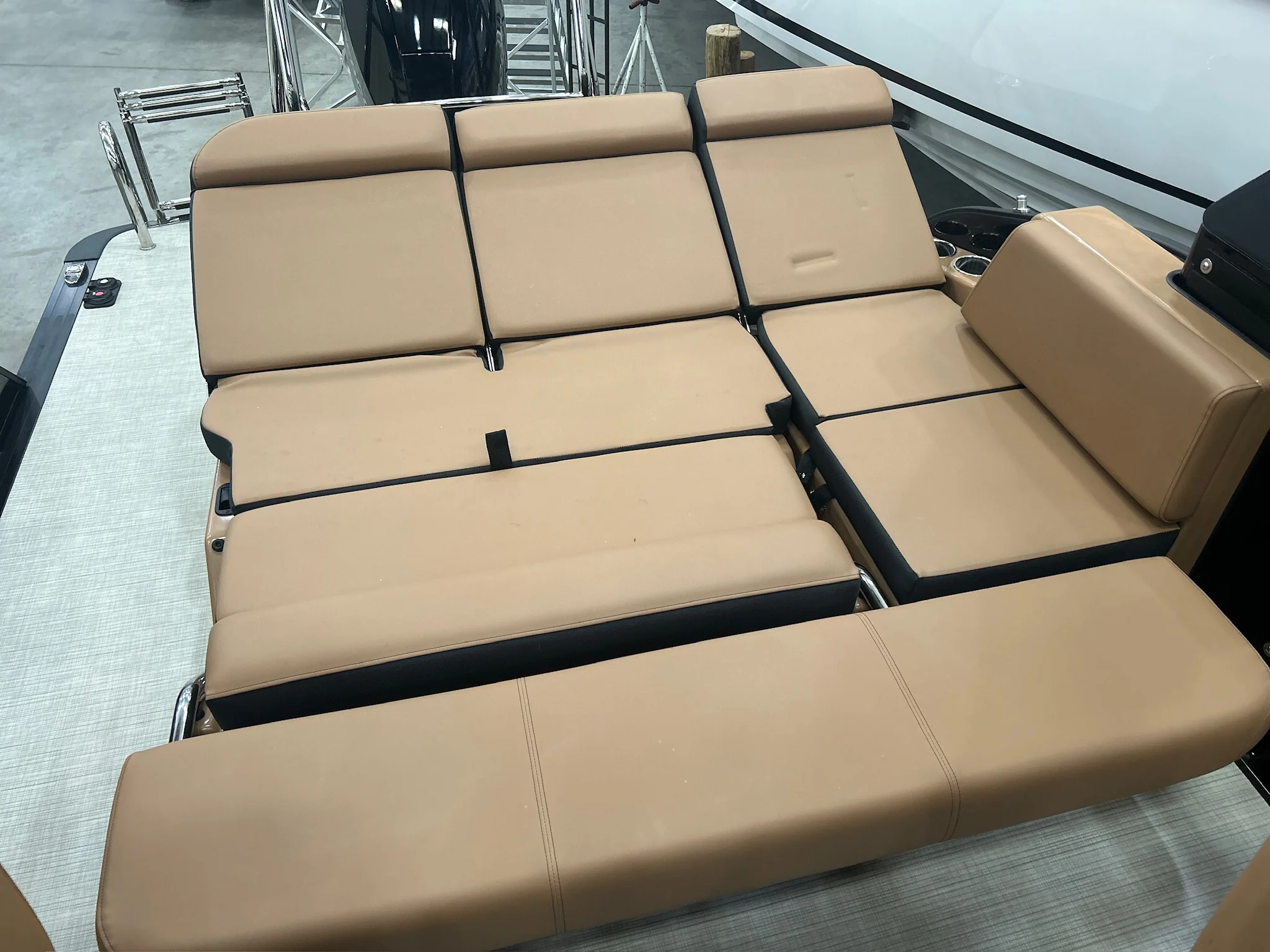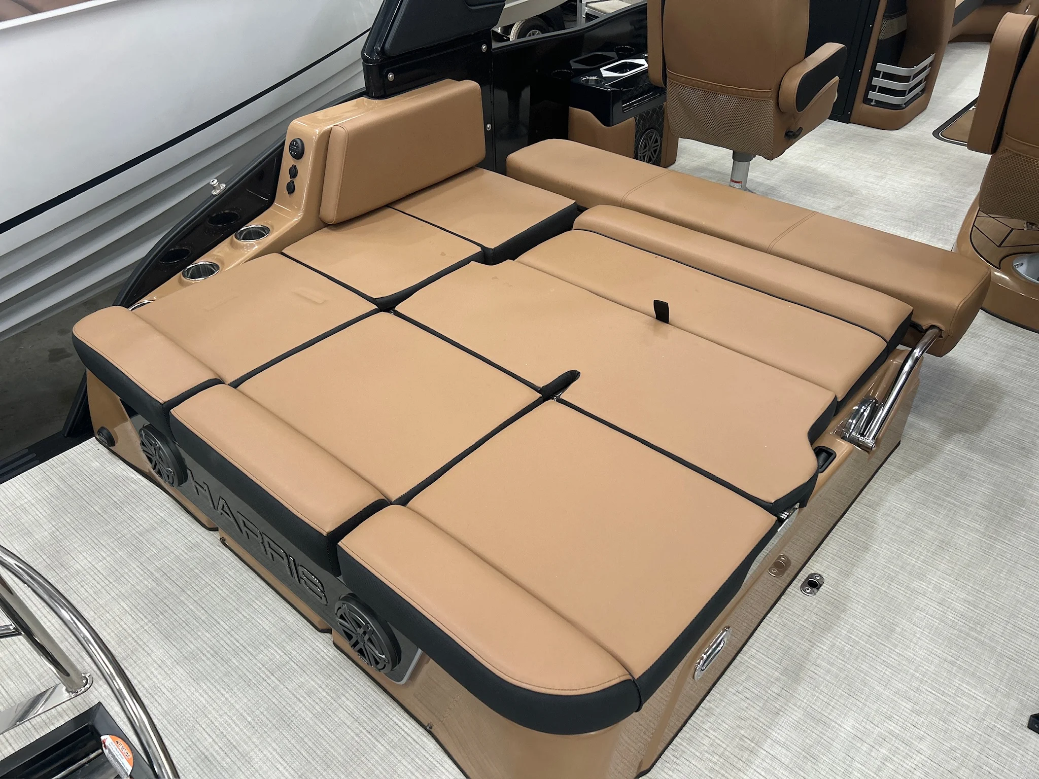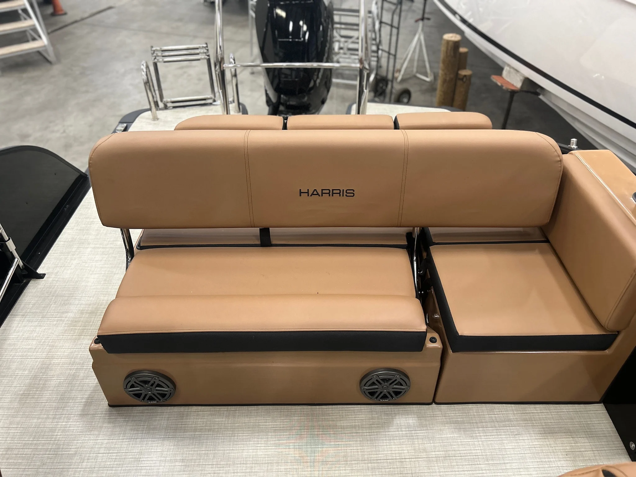 2025 Harris Grand Mariner 250 – Triple Tube | Mercury 400 Verado | 40 Hours More than $10,000 invested after delivery, including extended engine warranty coverage through year eight, premium ceramic coating applied to the interior and exterior with warranty protection, and custom protective wraps installed to enhance both durability and appearance. This 2025 Harris Grand Mariner 250 SLDH delivers flagship pontoon luxury paired with serious performance. Powered by a Mercury 400L Verado V10 and built on Harris’ triple-tube performance chassis, it offers exceptional speed, handling, and stability on the water. Finished in Black Sapphire with White Diamond accents and Black Edition powder-coated fencing, this boat features premium Cool Touch pillow-top upholstery in Chestnut Brown with Onyx accents and a spacious luxury layout designed for entertaining. Factory Options & Features