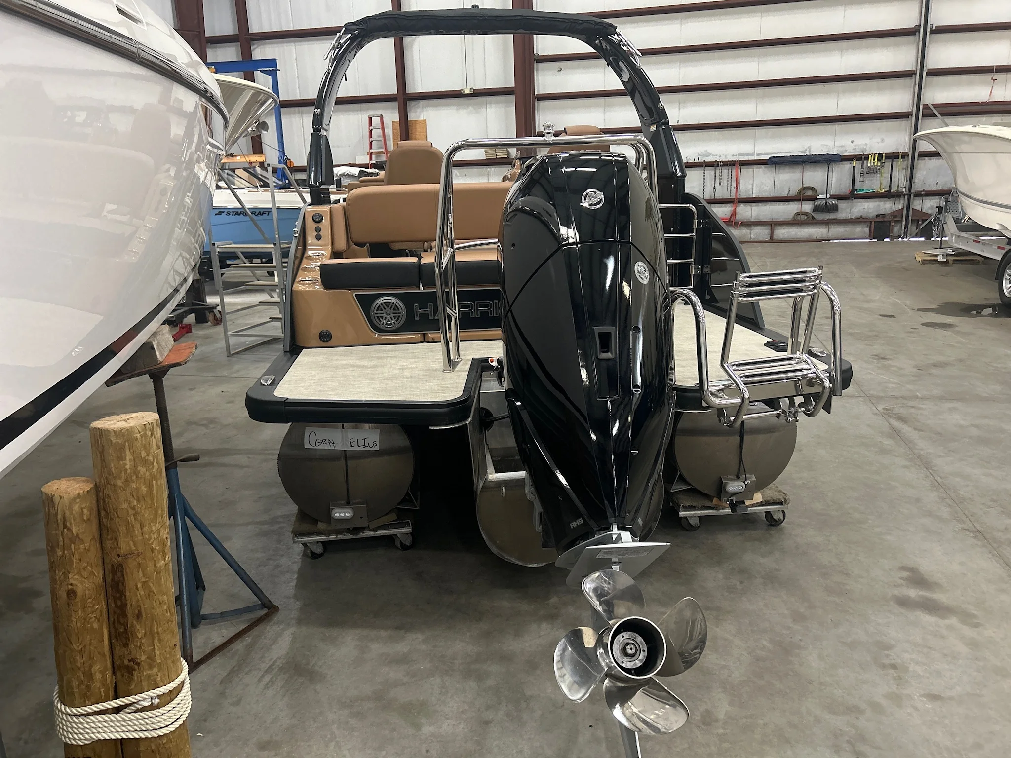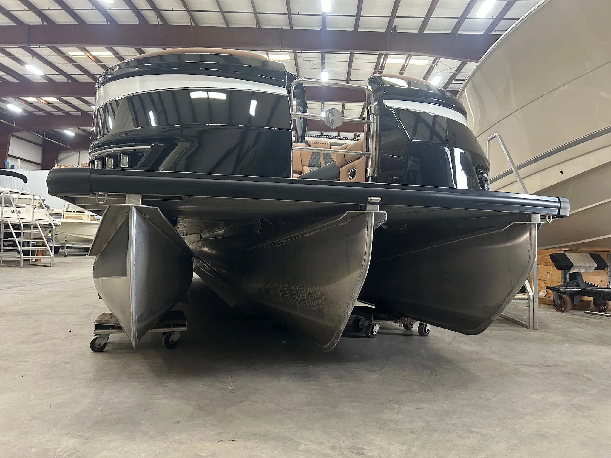 2025 Harris Grand Mariner 250 – Triple Tube | Mercury 400 Verado | 40 Hours More than $10,000 invested after delivery, including extended engine warranty coverage through year eight, premium ceramic coating applied to the interior and exterior with warranty protection, and custom protective wraps installed to enhance both durability and appearance. This 2025 Harris Grand Mariner 250 SLDH delivers flagship pontoon luxury paired with serious performance. Powered by a Mercury 400L Verado V10 and built on Harris’ triple-tube performance chassis, it offers exceptional speed, handling, and stability on the water. Finished in Black Sapphire with White Diamond accents and Black Edition powder-coated fencing, this boat features premium Cool Touch pillow-top upholstery in Chestnut Brown with Onyx accents and a spacious luxury layout designed for entertaining. Factory Options & Features