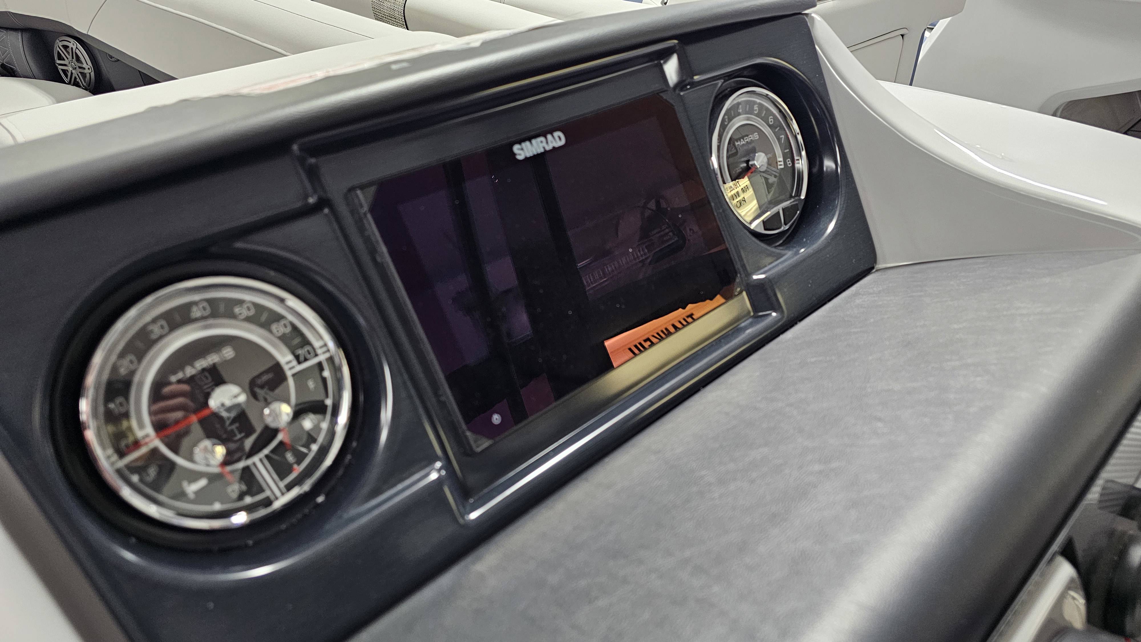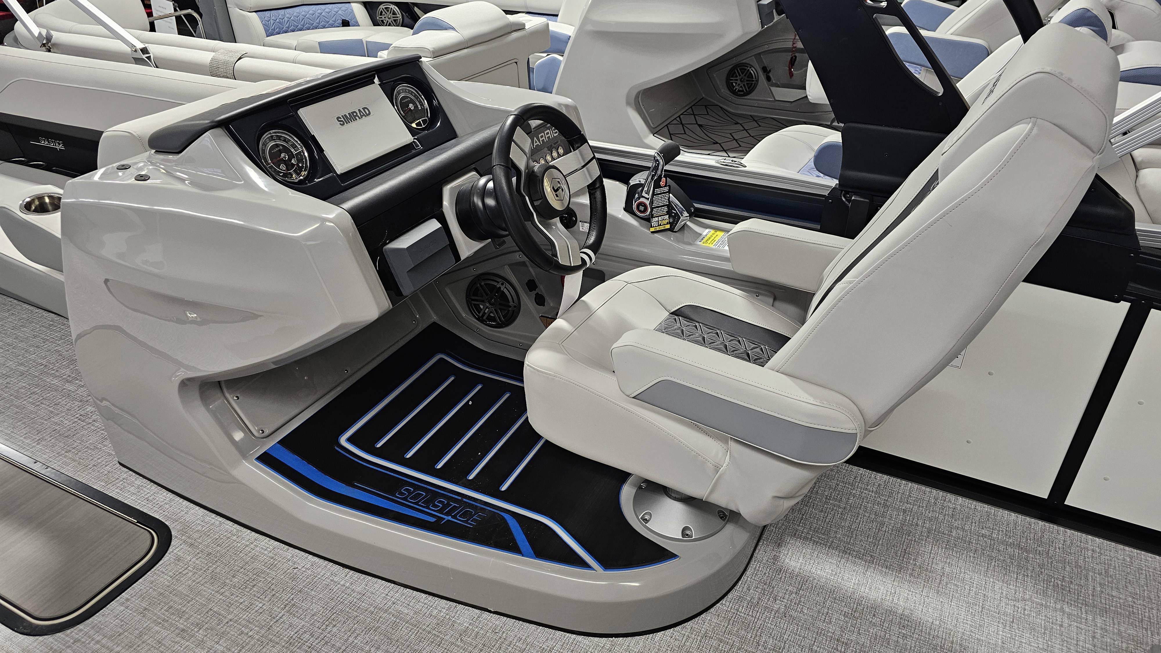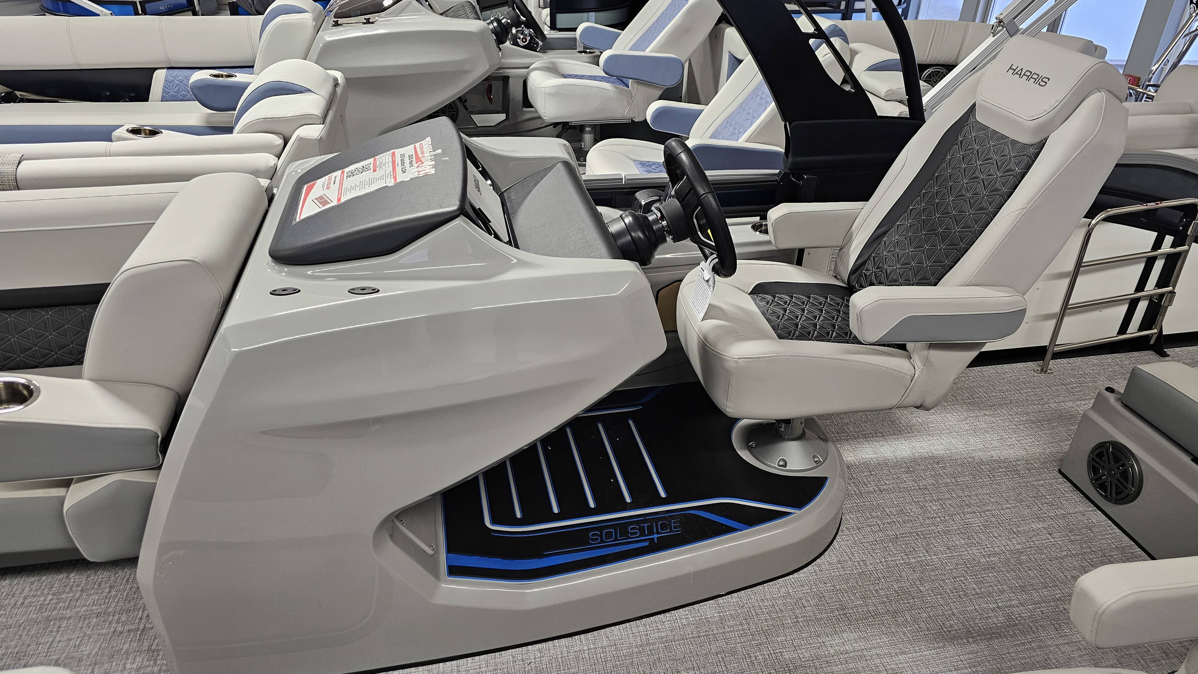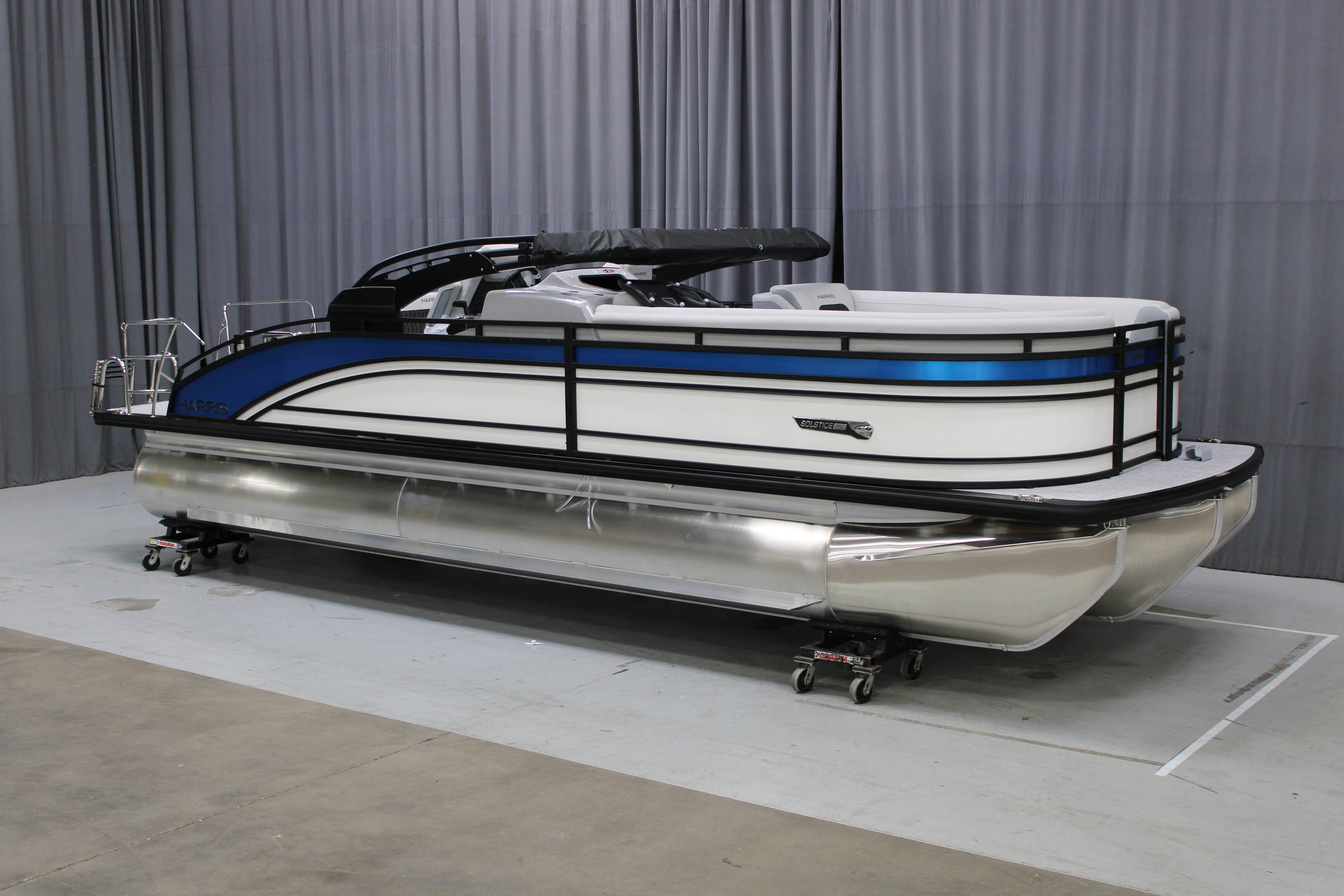 2025 Harris 250 Solstice!Mercury 250 DTS Cold Fusion WhiteFactory Installed Options:SLDH floorplanExterior- ceramic white with vivid blue metallicInterior- tungstenBlack edition325 chassisHalo power topDeluxe tech package 1Total lighting package4 step telescoping stainless steelSki tow pylonUltra lux high back helm seatsChanging room with curtainFlooring-stone gray woven vinylNSX9Removable windscreenRaised helmJL Diamond sound systemSafety railStainless steel aft swim seatLuxury sport woodgrain table