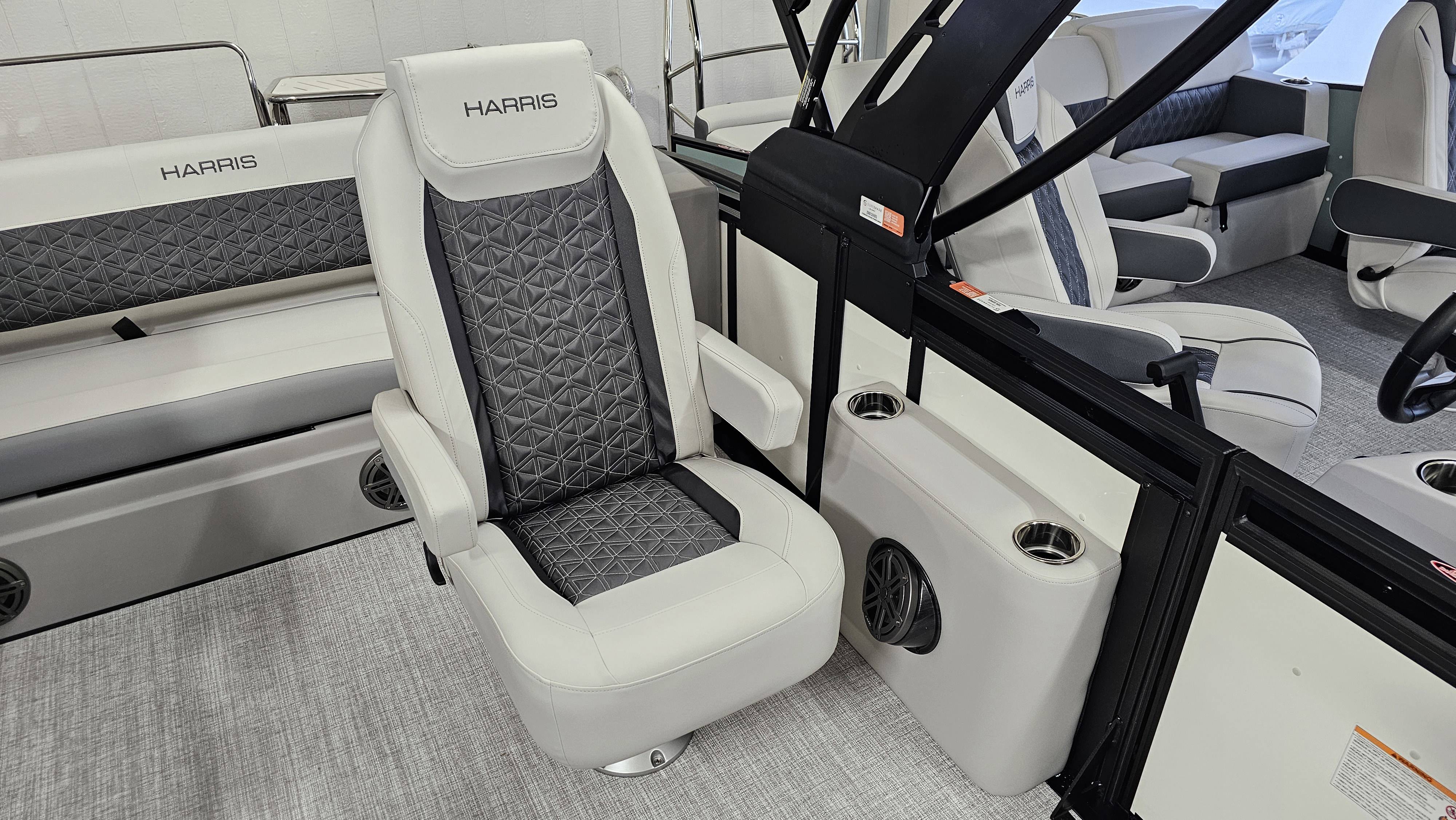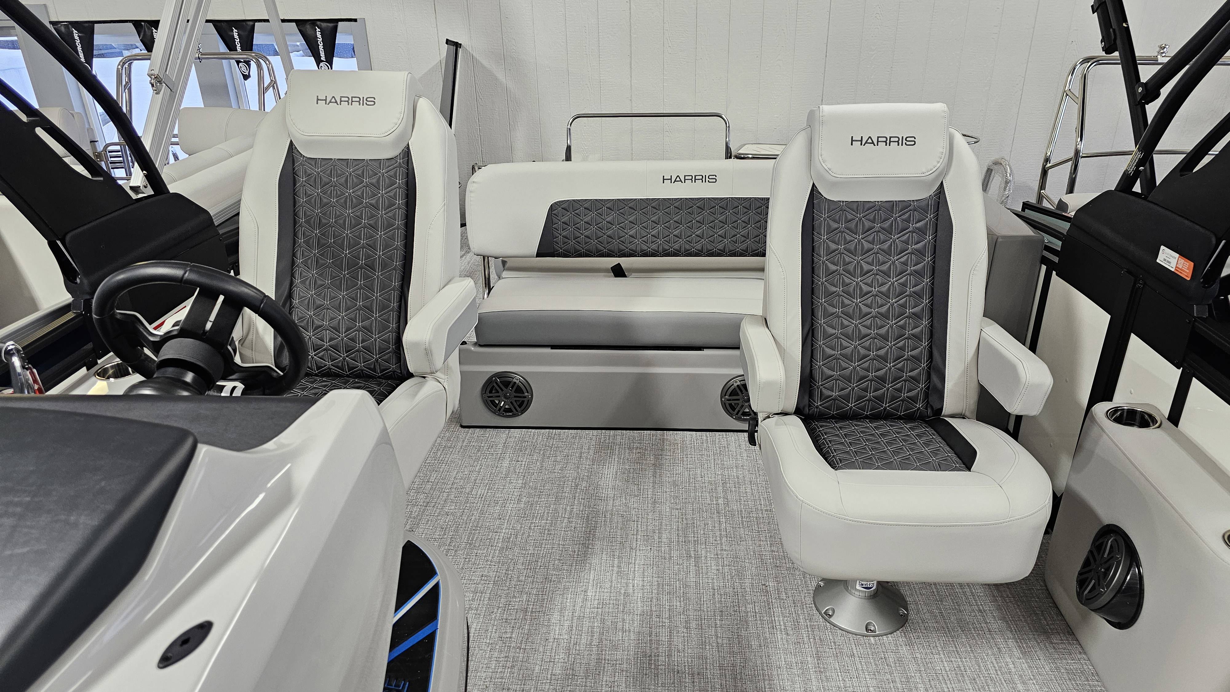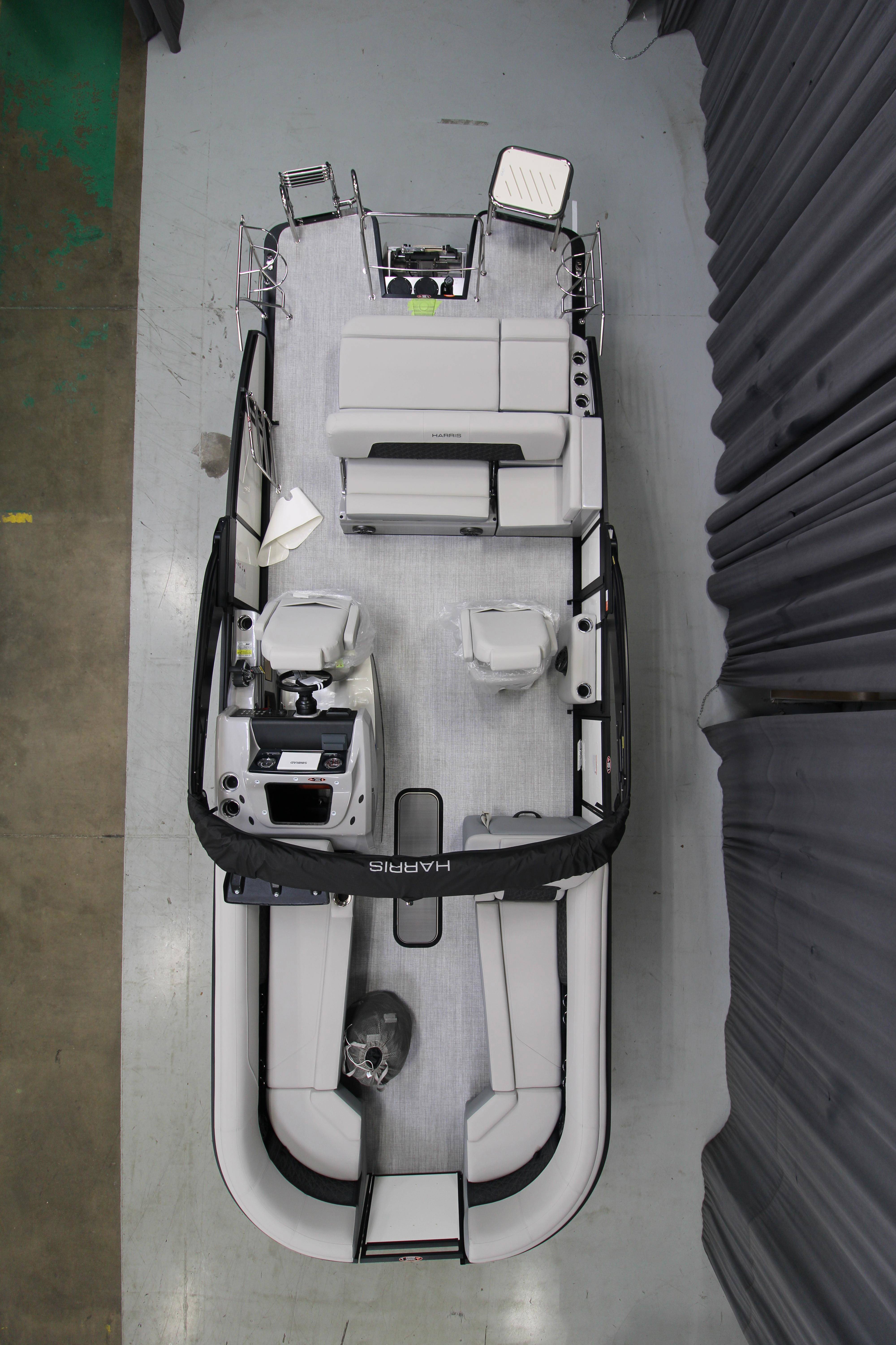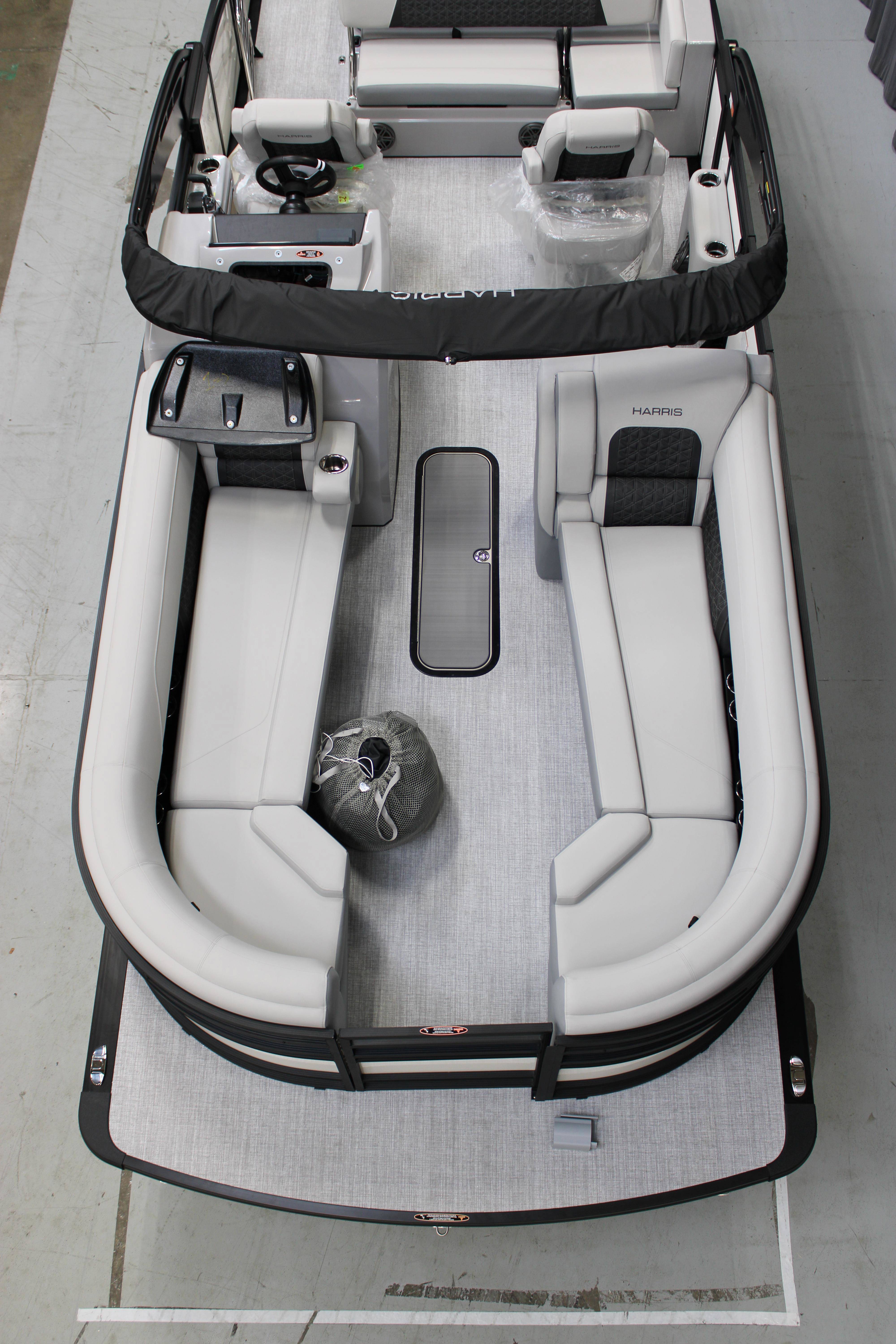 2025 Harris 250 Solstice!Mercury 250 DTS Cold Fusion WhiteFactory Installed Options:SLDH floorplanExterior- ceramic white with vivid blue metallicInterior- tungstenBlack edition325 chassisHalo power topDeluxe tech package 1Total lighting package4 step telescoping stainless steelSki tow pylonUltra lux high back helm seatsChanging room with curtainFlooring-stone gray woven vinylNSX9Removable windscreenRaised helmJL Diamond sound systemSafety railStainless steel aft swim seatLuxury sport woodgrain table