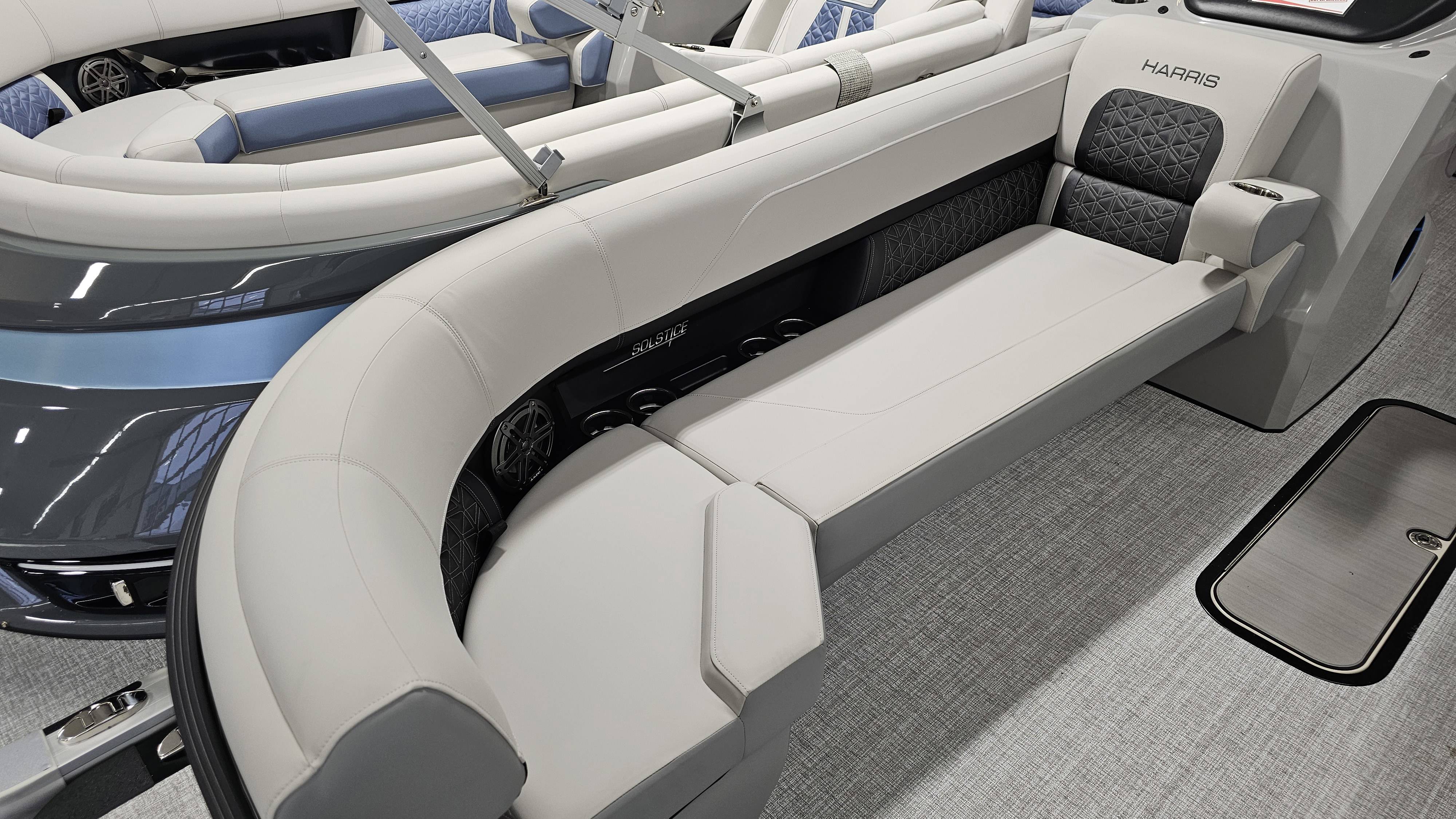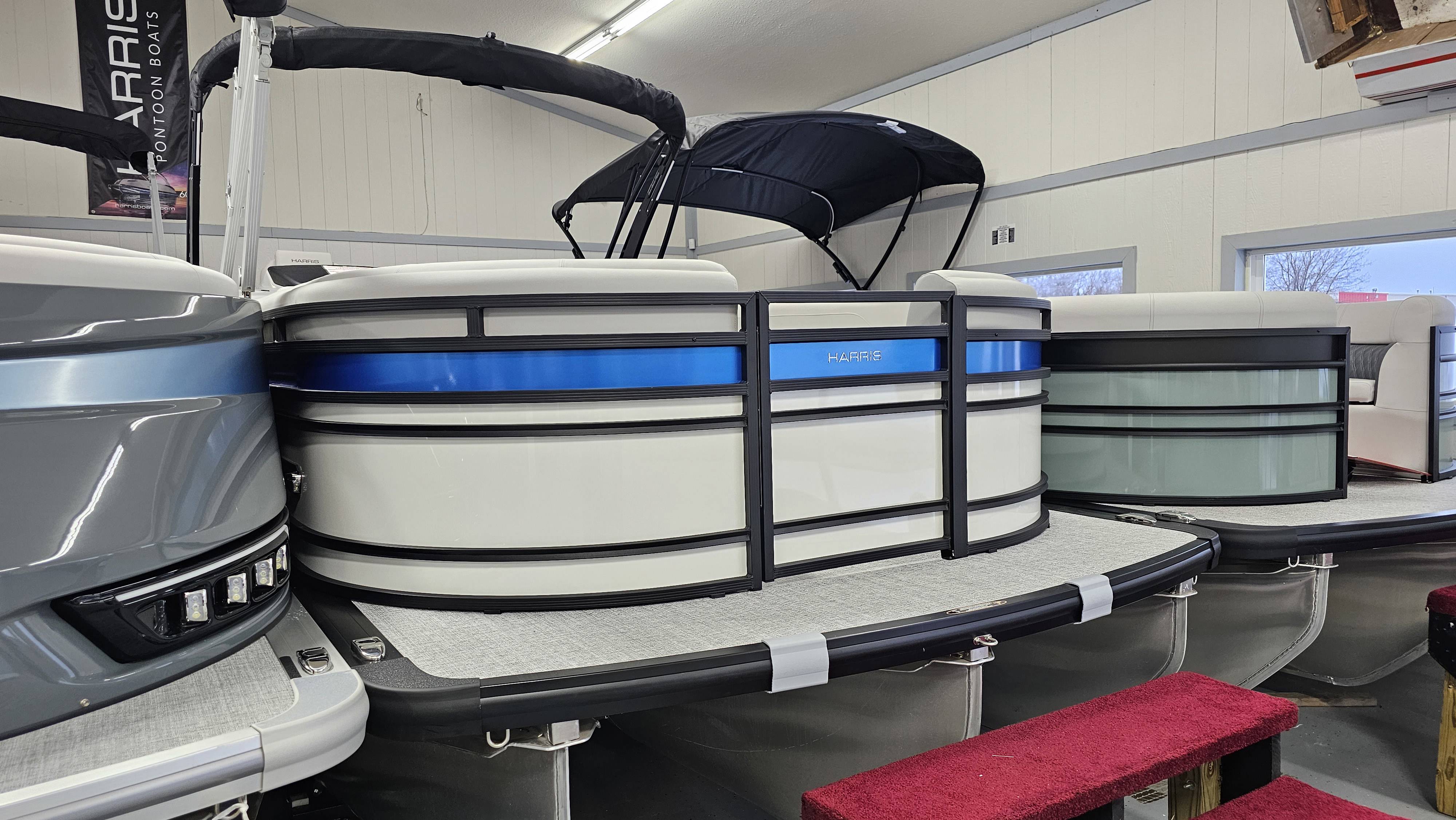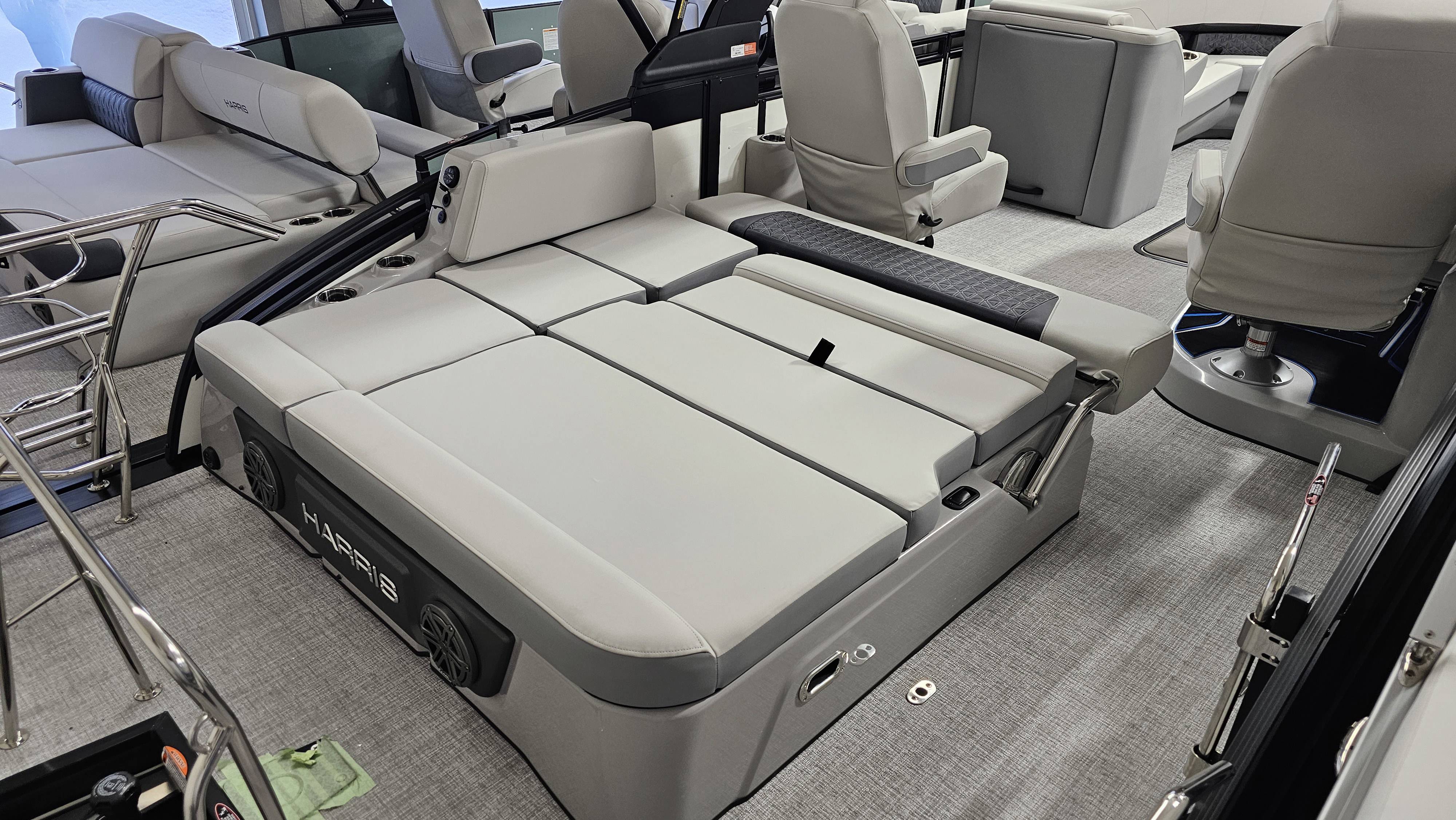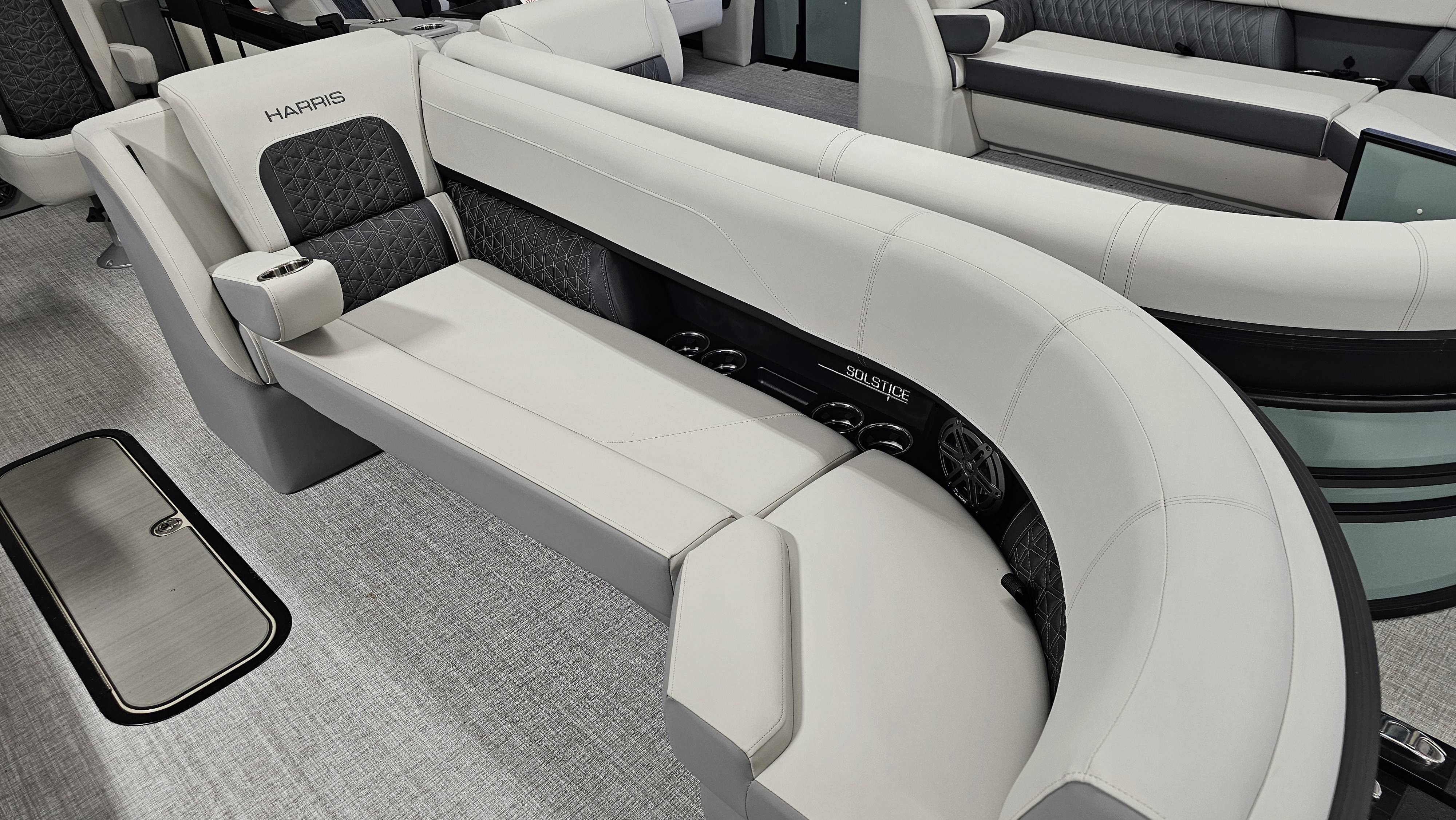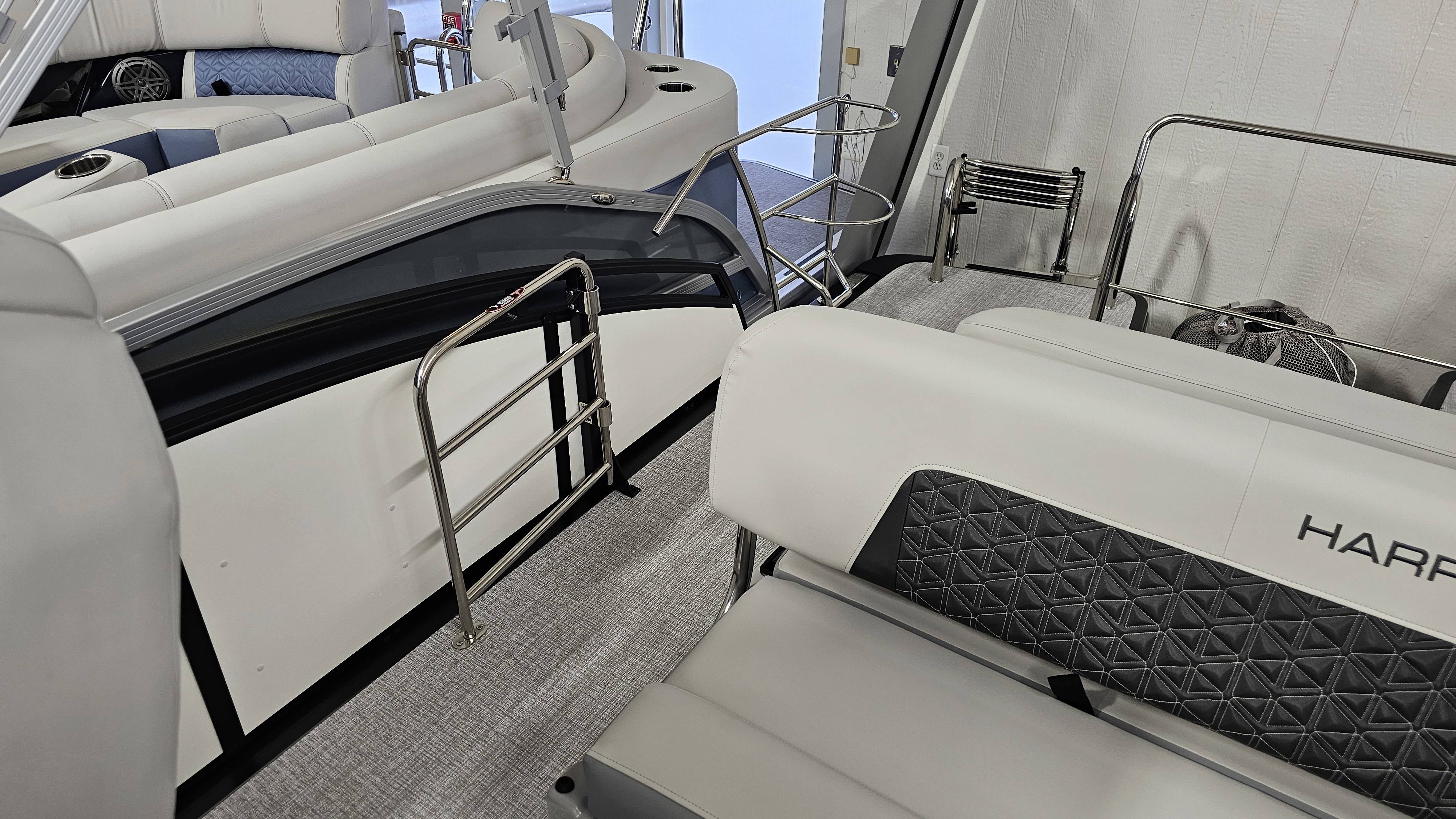 2025 Harris 250 Solstice!Mercury 250 DTS Cold Fusion WhiteFactory Installed Options:SLDH floorplanExterior- ceramic white with vivid blue metallicInterior- tungstenBlack edition325 chassisHalo power topDeluxe tech package 1Total lighting package4 step telescoping stainless steelSki tow pylonUltra lux high back helm seatsChanging room with curtainFlooring-stone gray woven vinylNSX9Removable windscreenRaised helmJL Diamond sound systemSafety railStainless steel aft swim seatLuxury sport woodgrain table