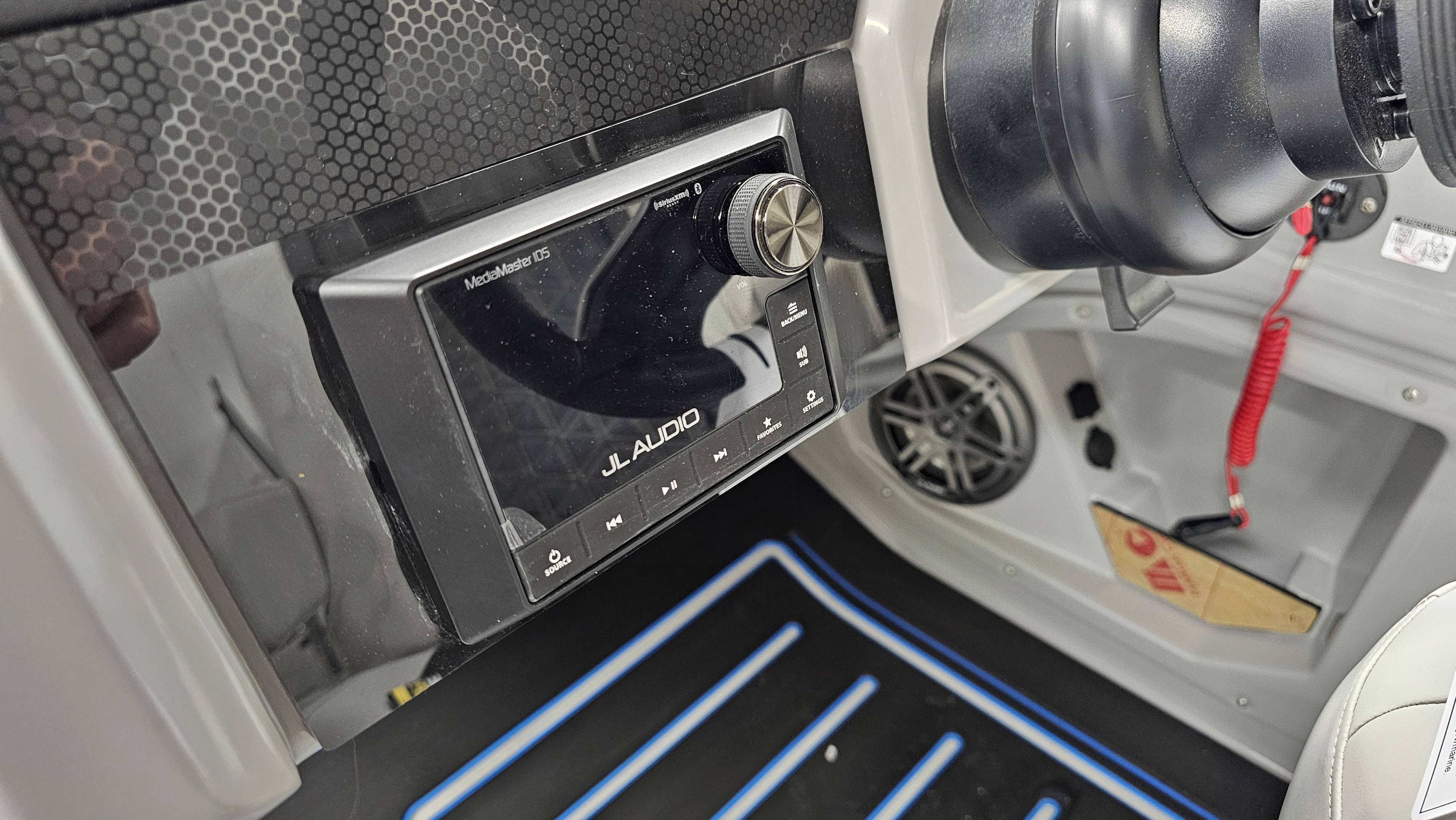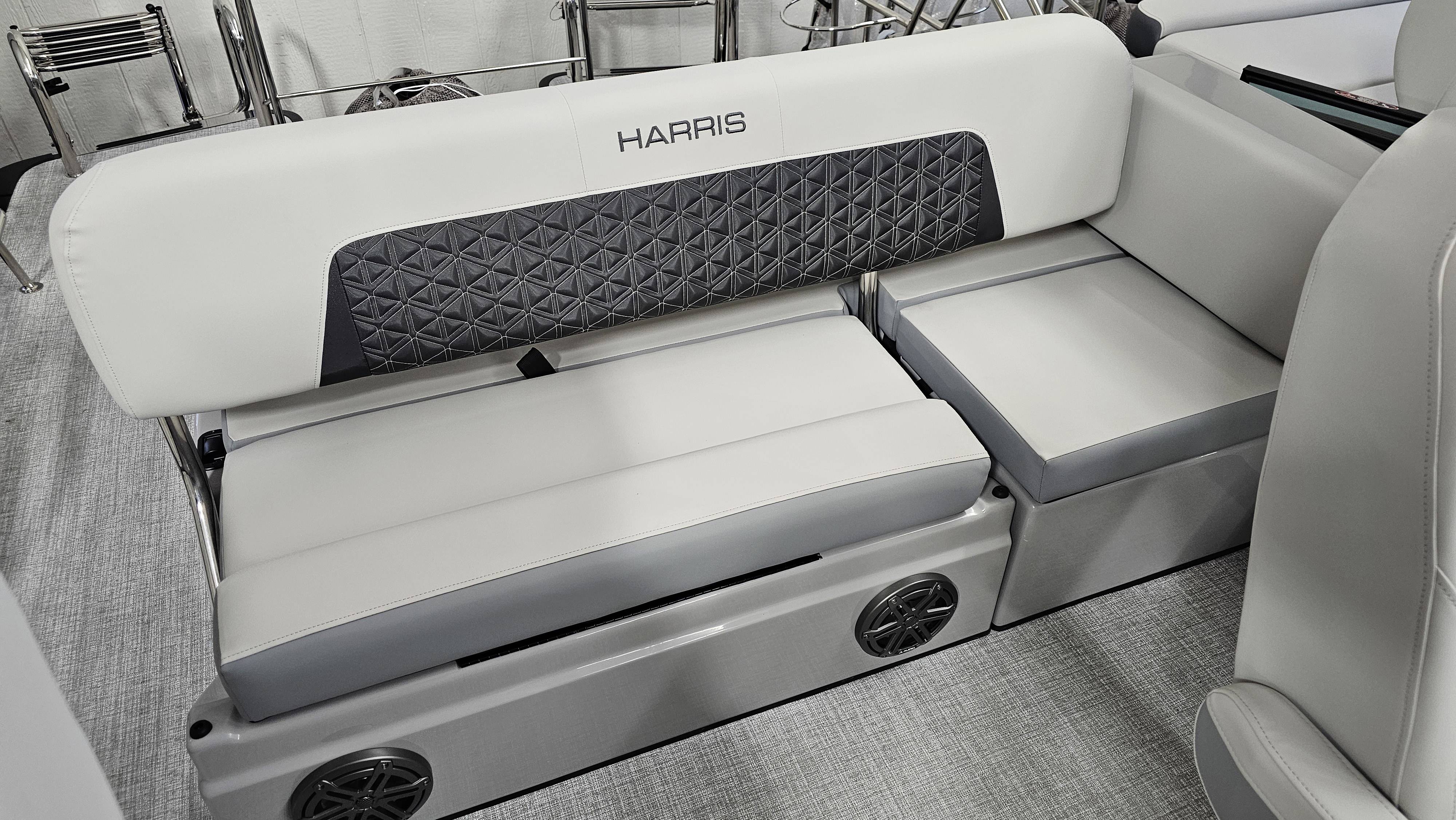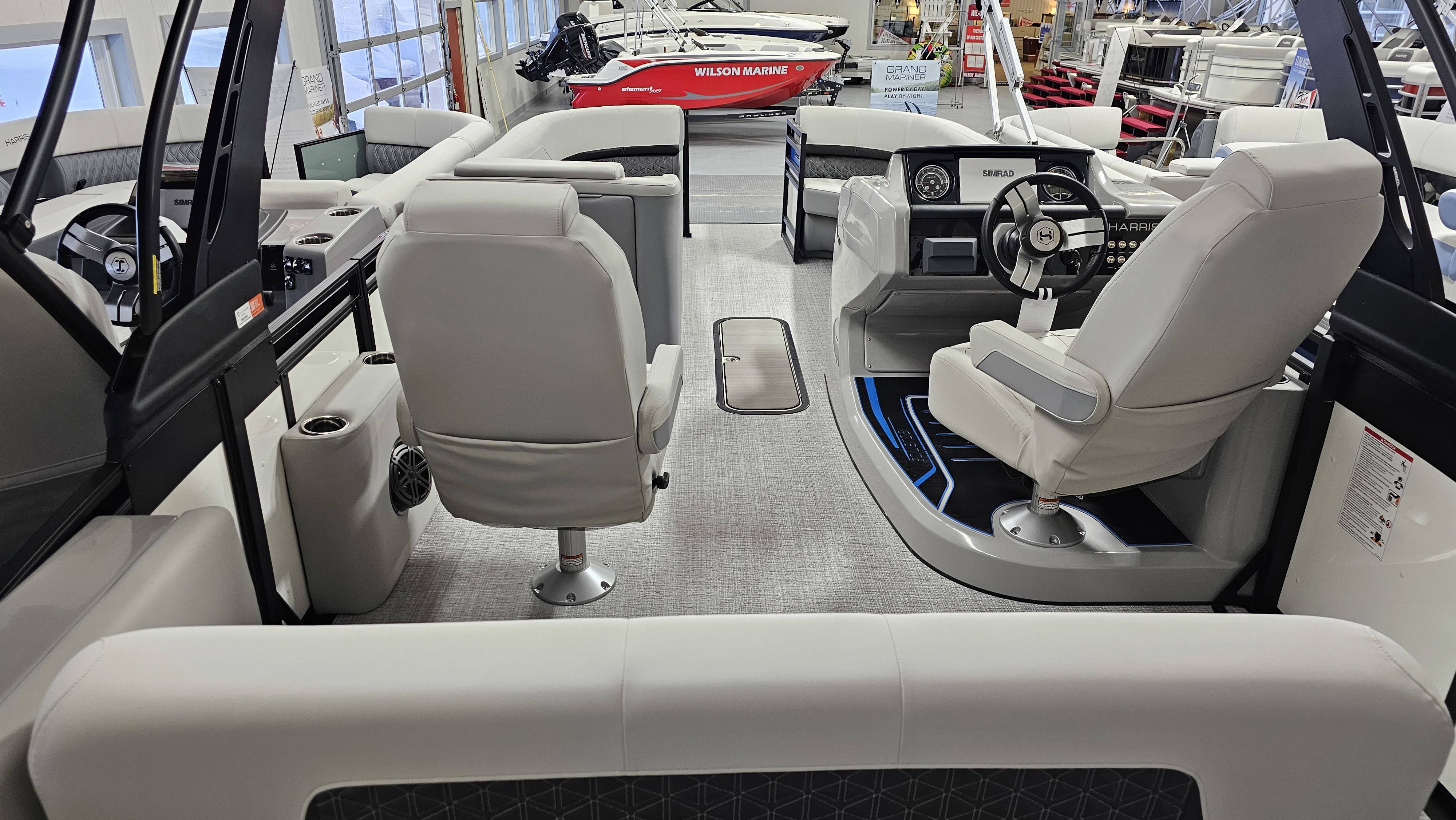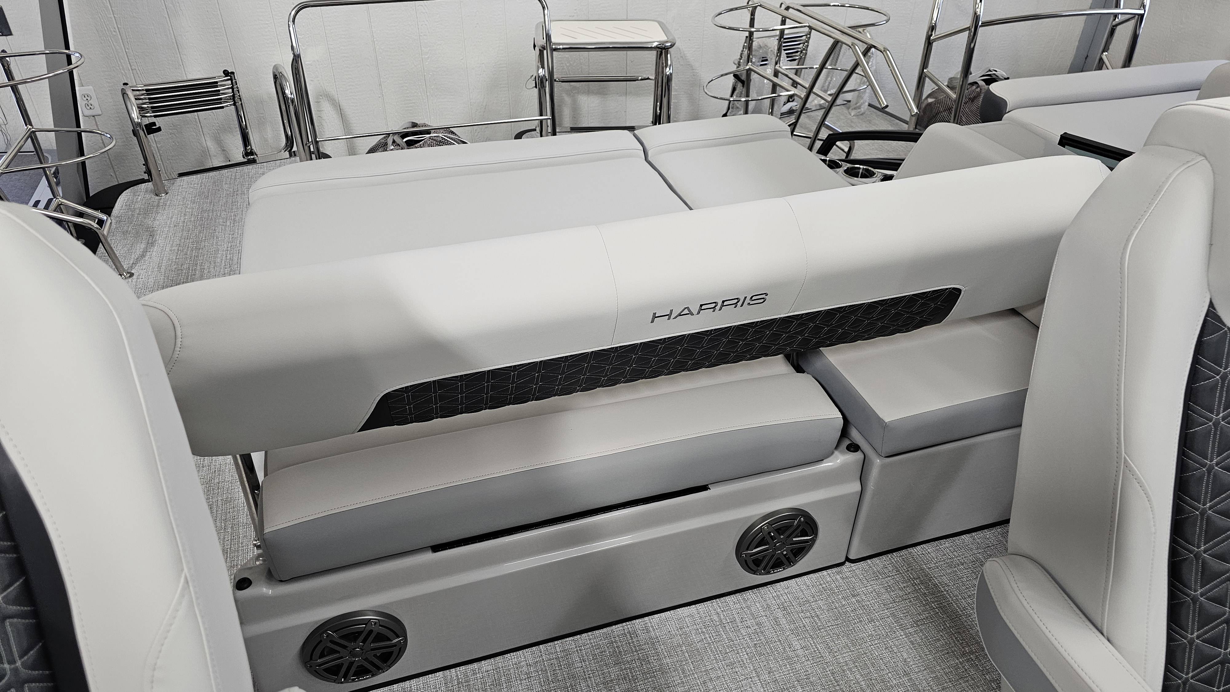2025 Harris 250 Solstice!Mercury 250 DTS Cold Fusion WhiteFactory Installed Options:SLDH floorplanExterior- ceramic white with vivid blue metallicInterior- tungstenBlack edition325 chassisHalo power topDeluxe tech package 1Total lighting package4 step telescoping stainless steelSki tow pylonUltra lux high back helm seatsChanging room with curtainFlooring-stone gray woven vinylNSX9Removable windscreenRaised helmJL Diamond sound systemSafety railStainless steel aft swim seatLuxury sport woodgrain table