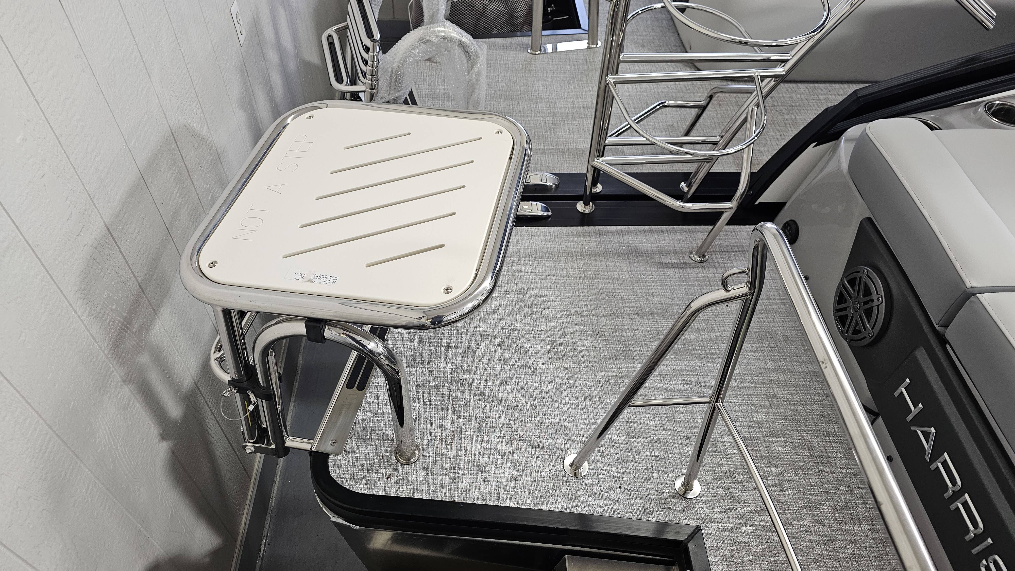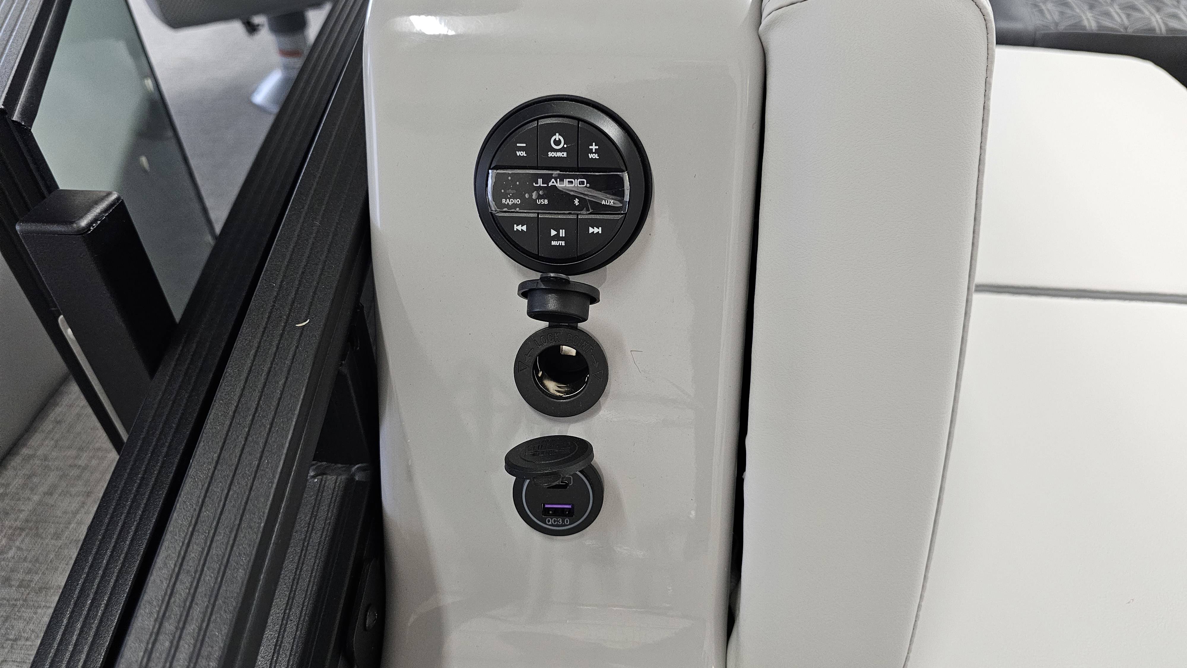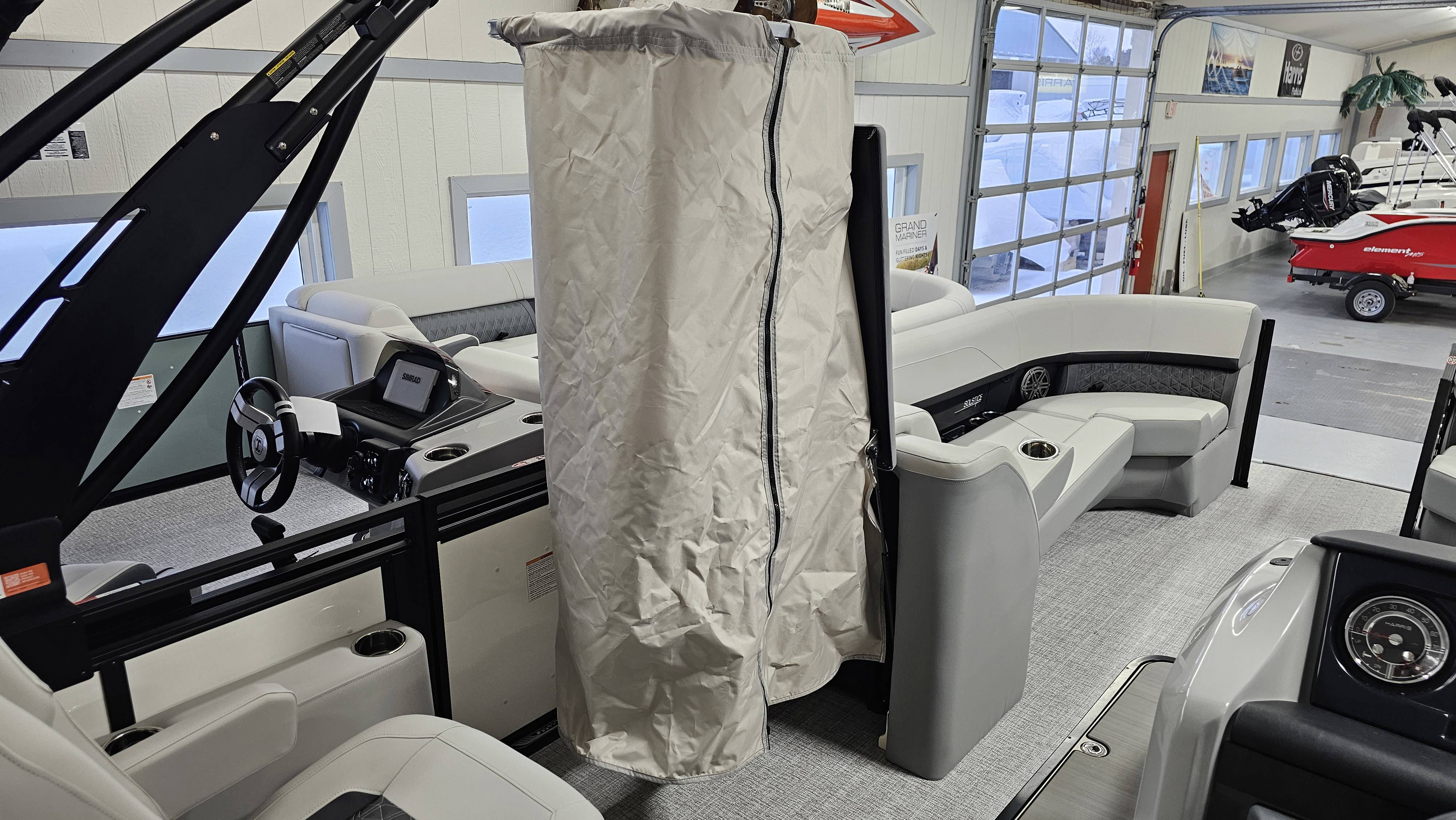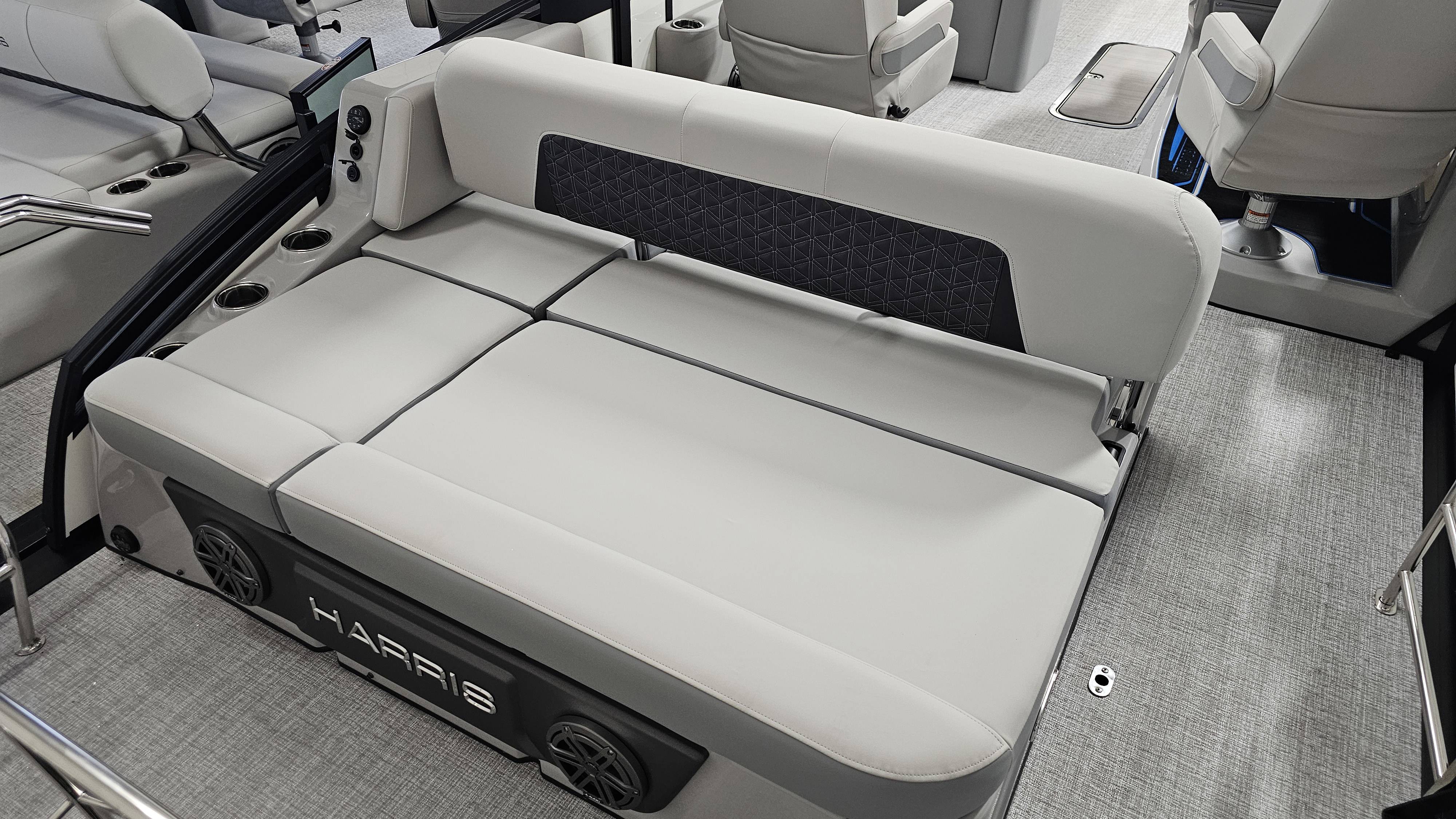 2025 Harris 250 Solstice!Mercury 250 DTS Cold Fusion WhiteFactory Installed Options:SLDH floorplanExterior- ceramic white with vivid blue metallicInterior- tungstenBlack edition325 chassisHalo power topDeluxe tech package 1Total lighting package4 step telescoping stainless steelSki tow pylonUltra lux high back helm seatsChanging room with curtainFlooring-stone gray woven vinylNSX9Removable windscreenRaised helmJL Diamond sound systemSafety railStainless steel aft swim seatLuxury sport woodgrain table
